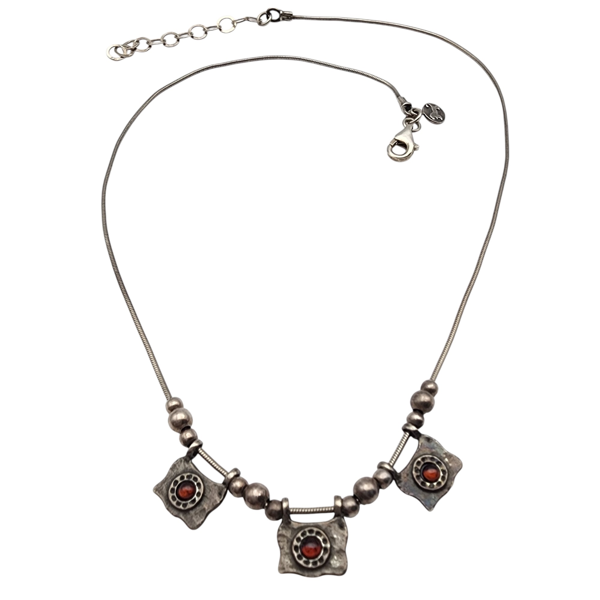 Megido Sterling Garnet Necklace, 7.9g, 16in, 2in extension, 18in total