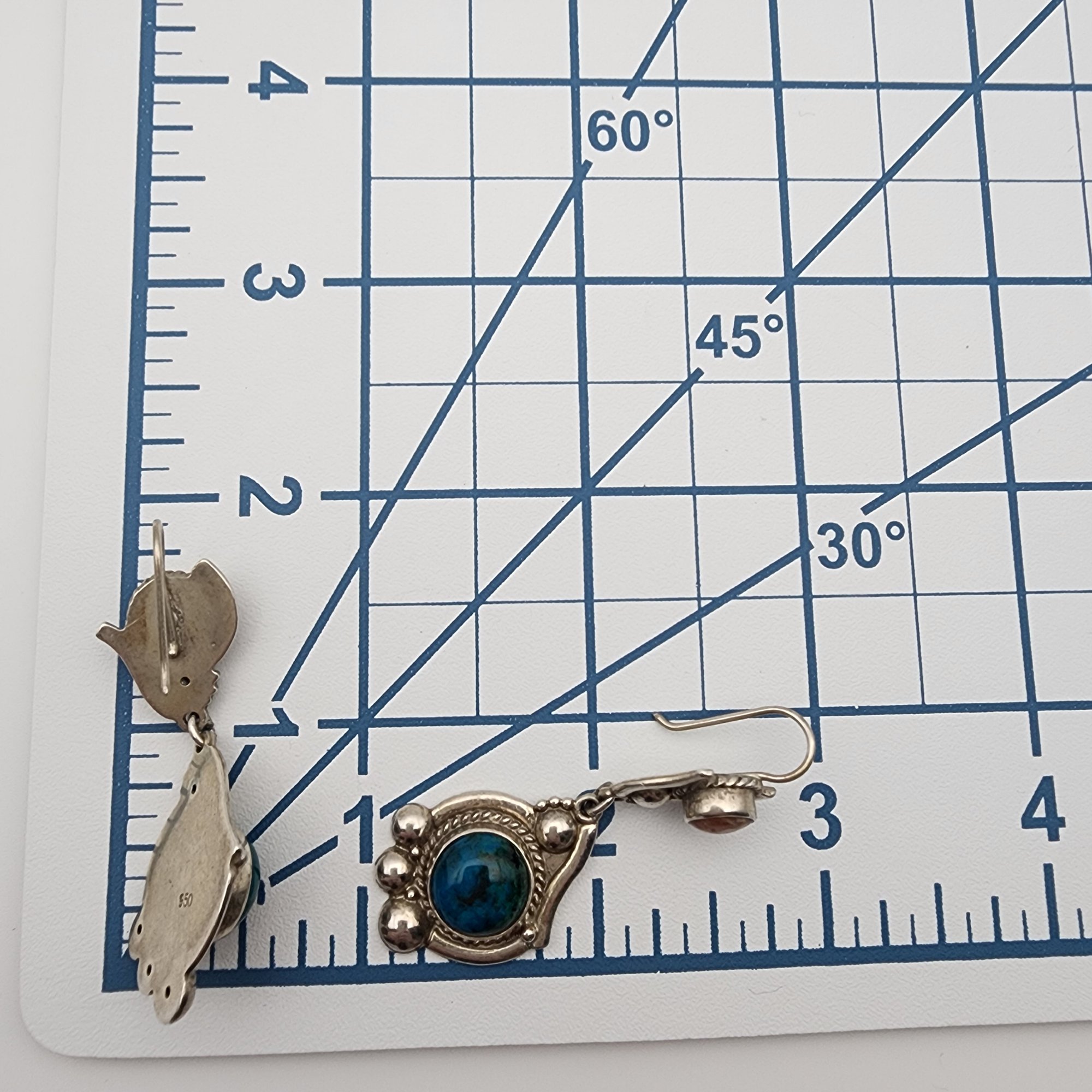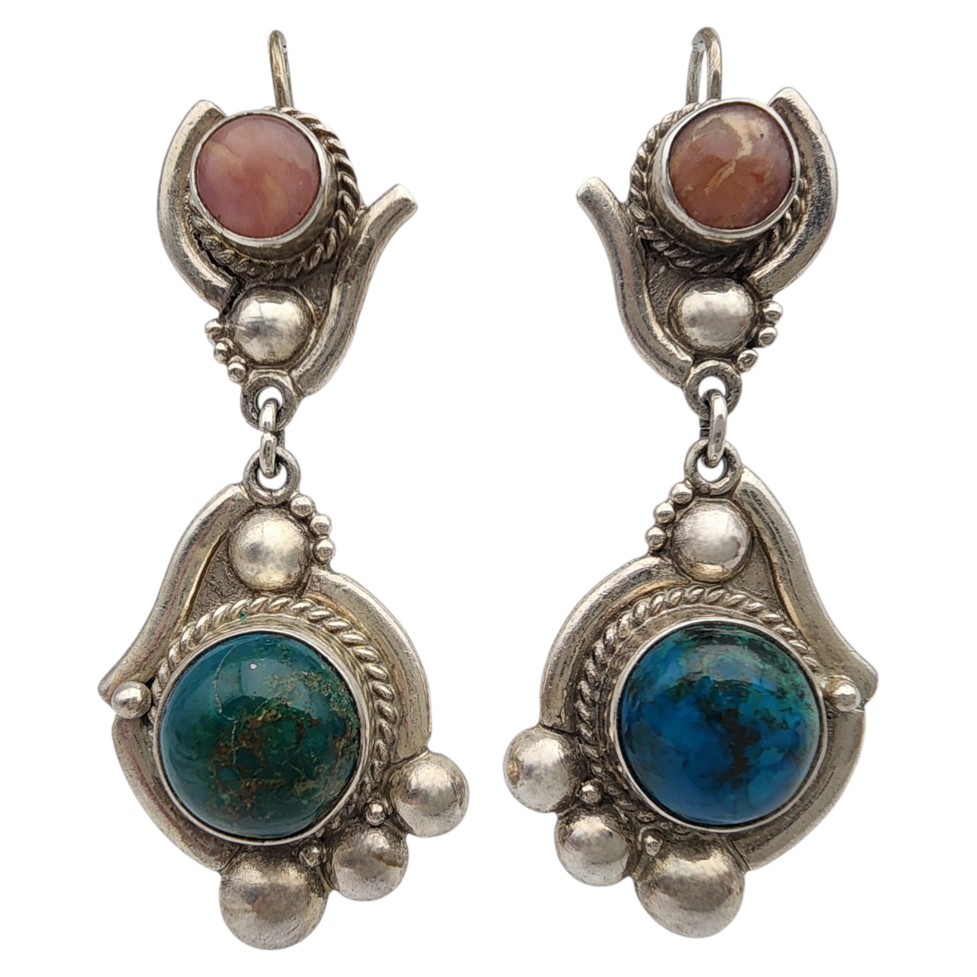 (950) Sterling Chrysocolla and Rhodochrosite Dangle Earrings, 12.4g