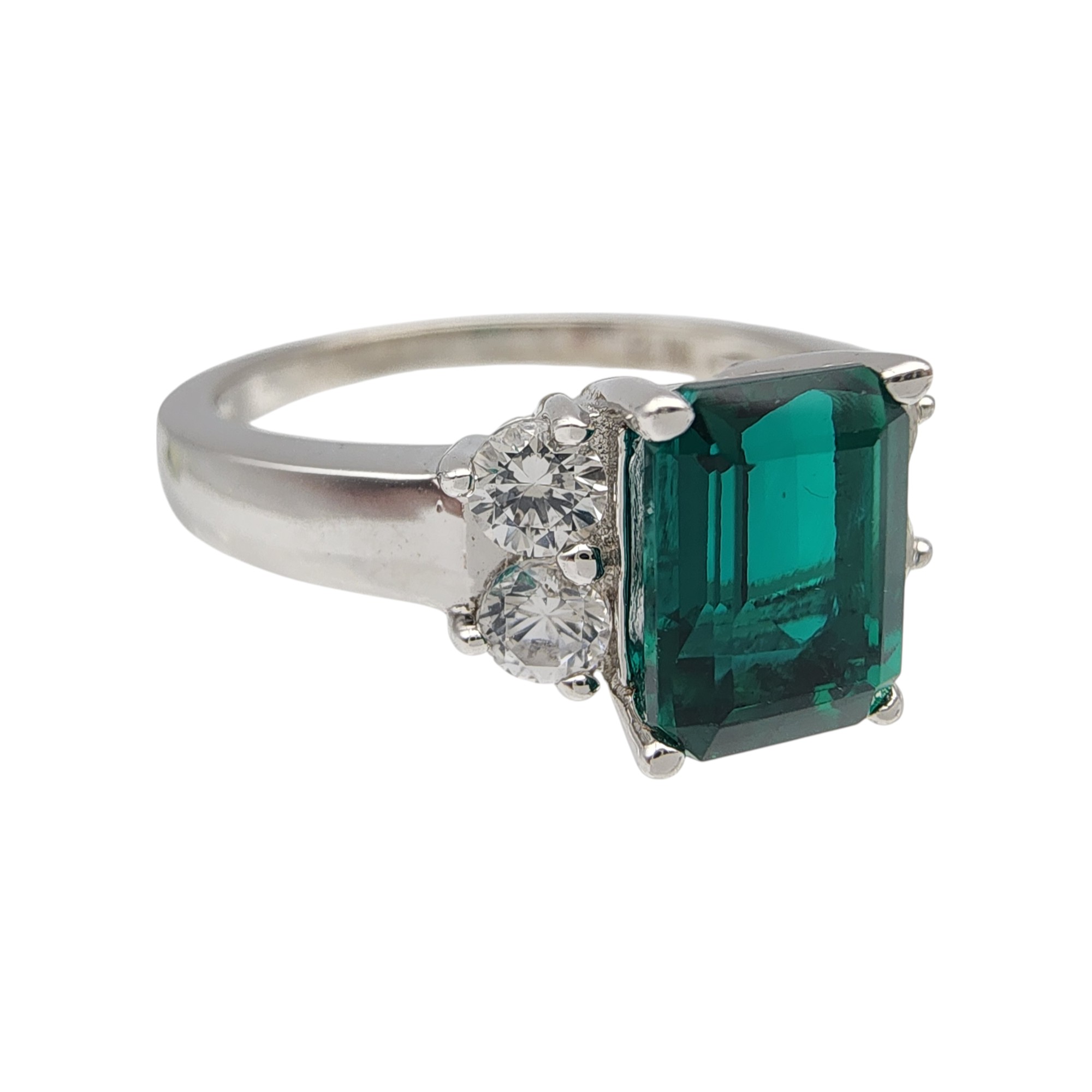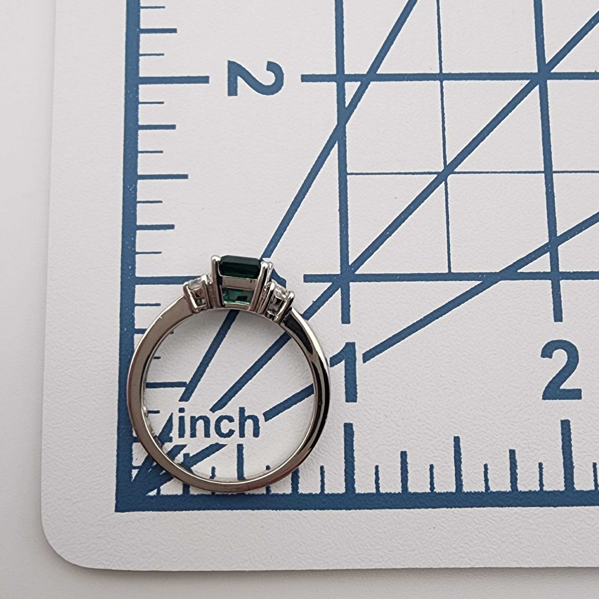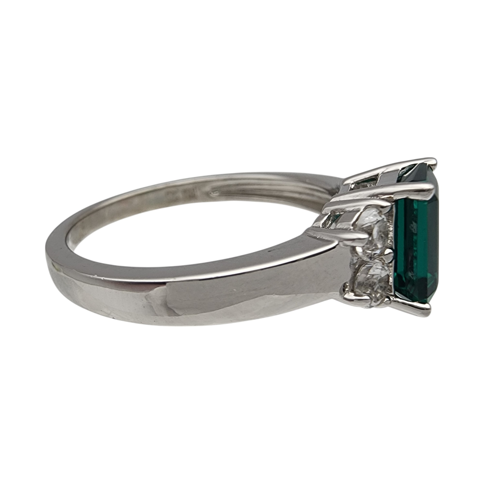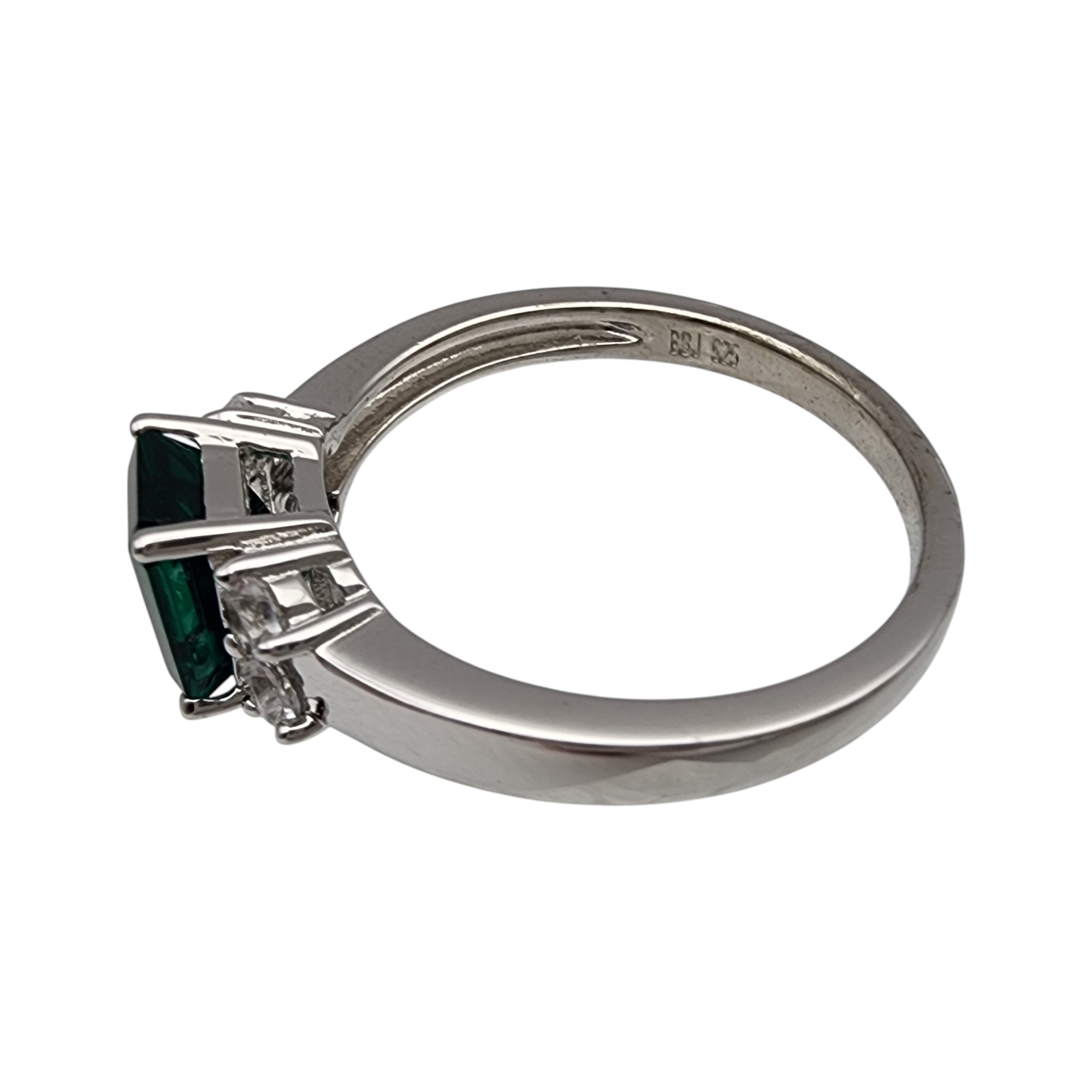 Sterling Silver Emerald and Clear Topaz Ring, Sz 10, 3.9g