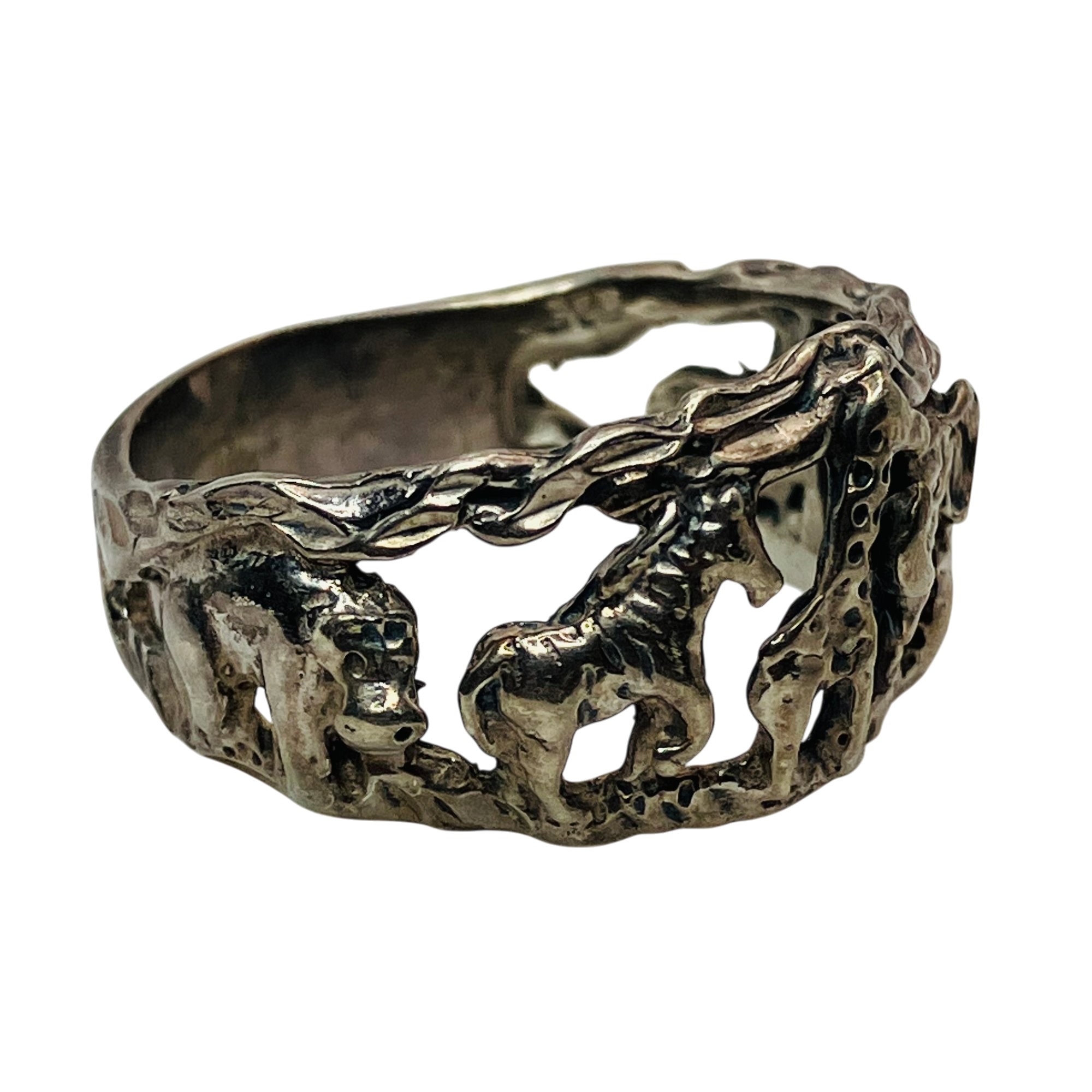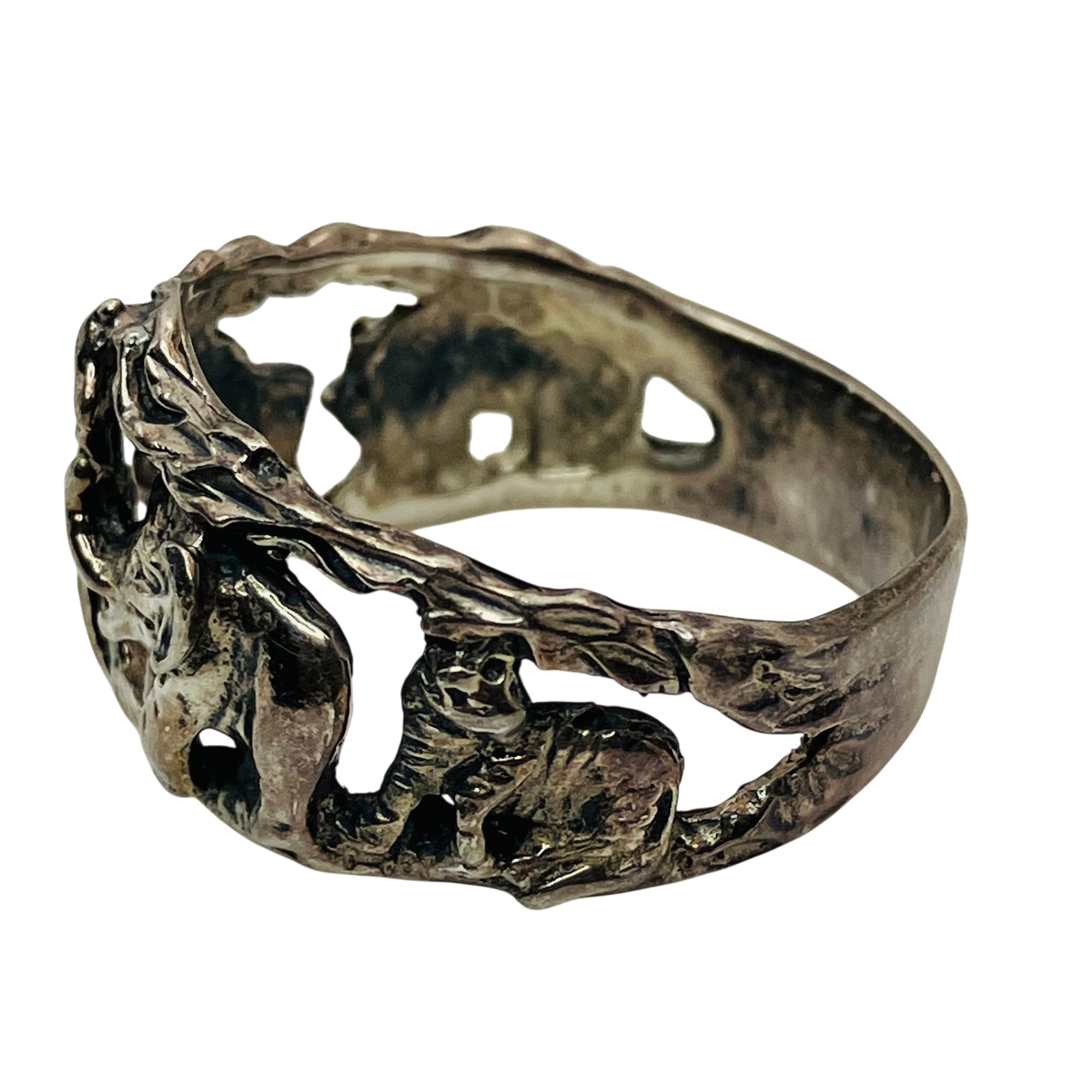 Sterling cut out jungle animals band ring size 7 4.18 g