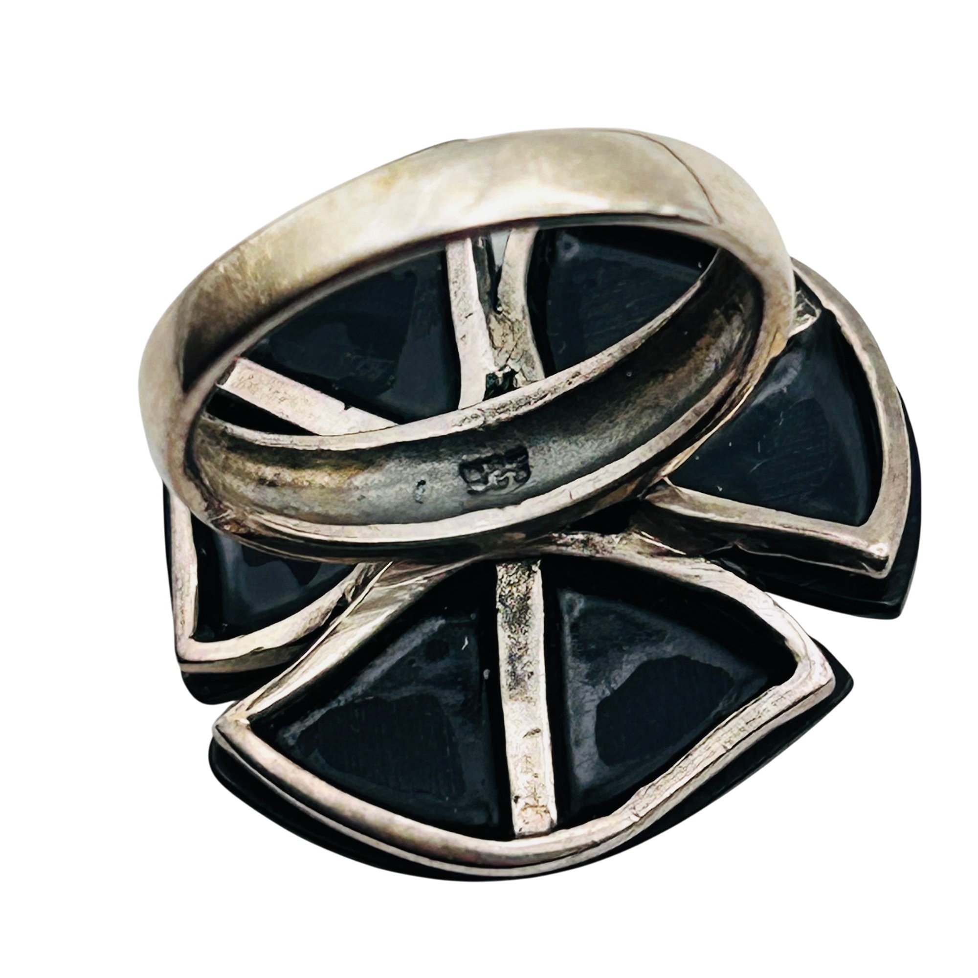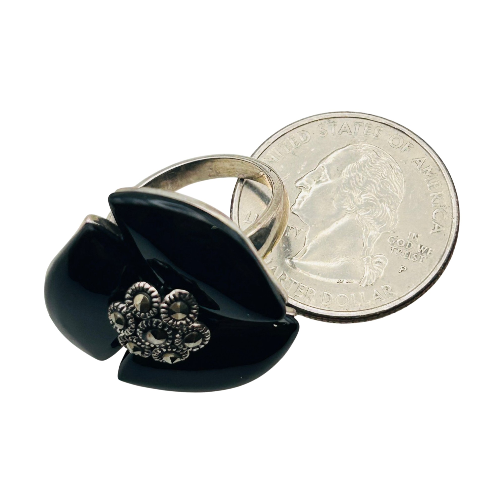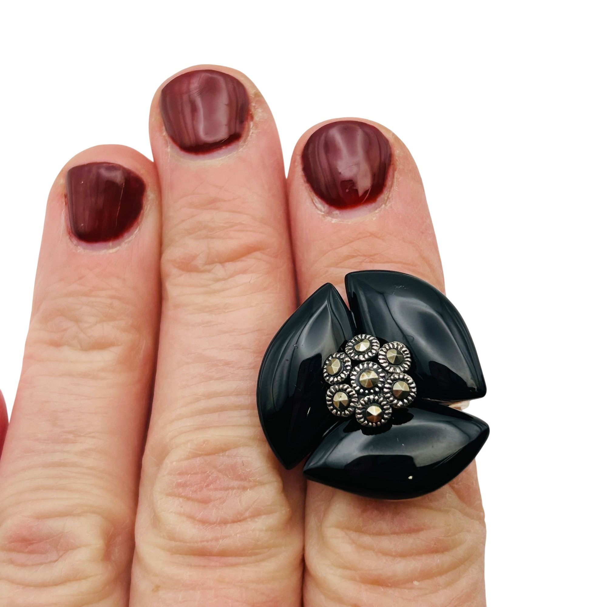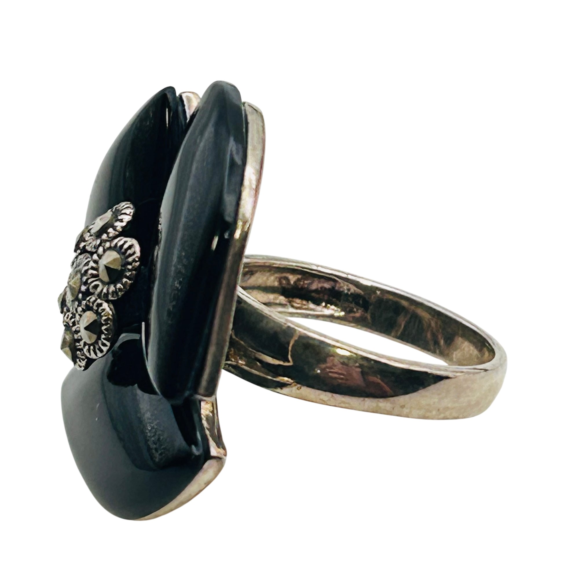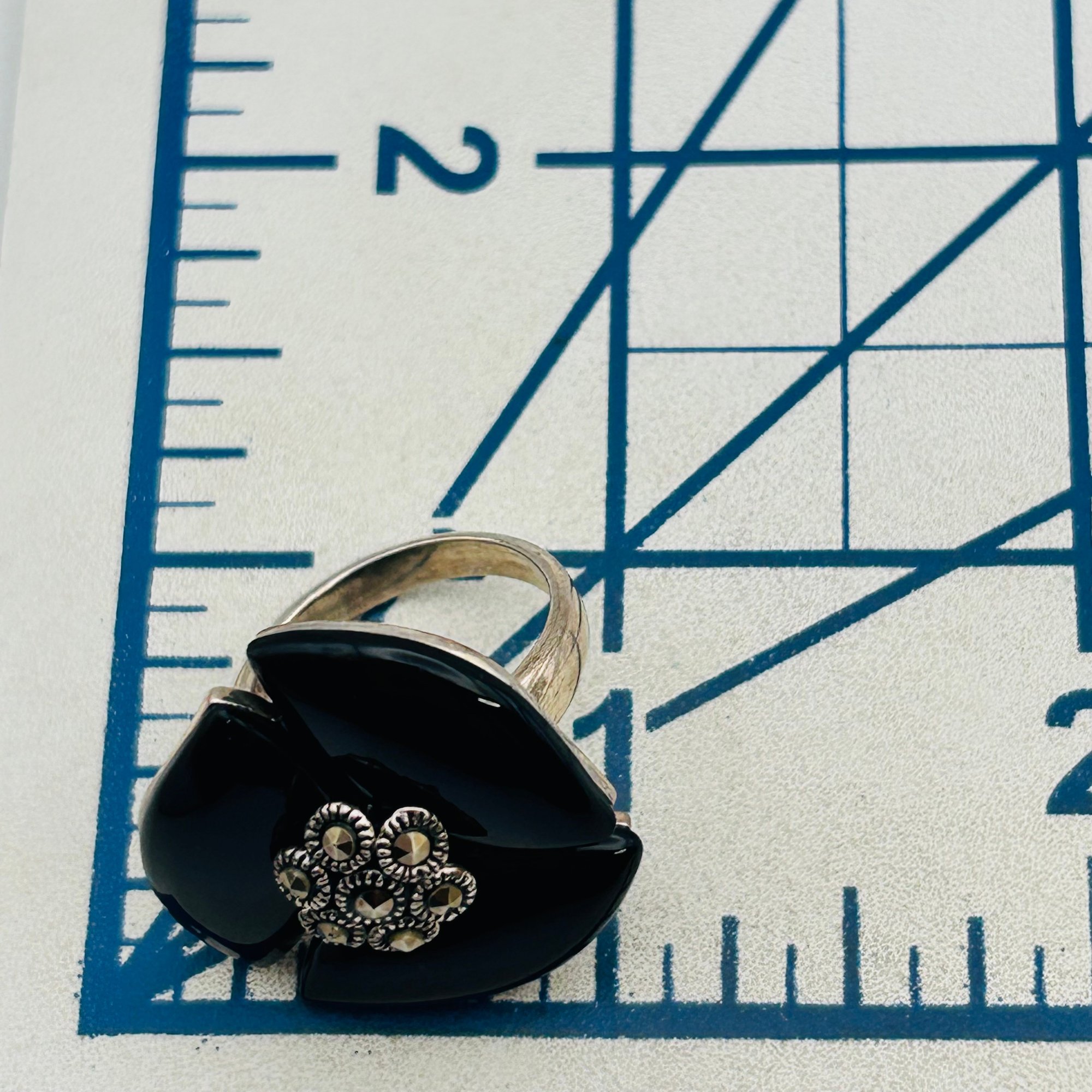 MARCASITE Sterling Black statement ring size 5.5 6.49 g