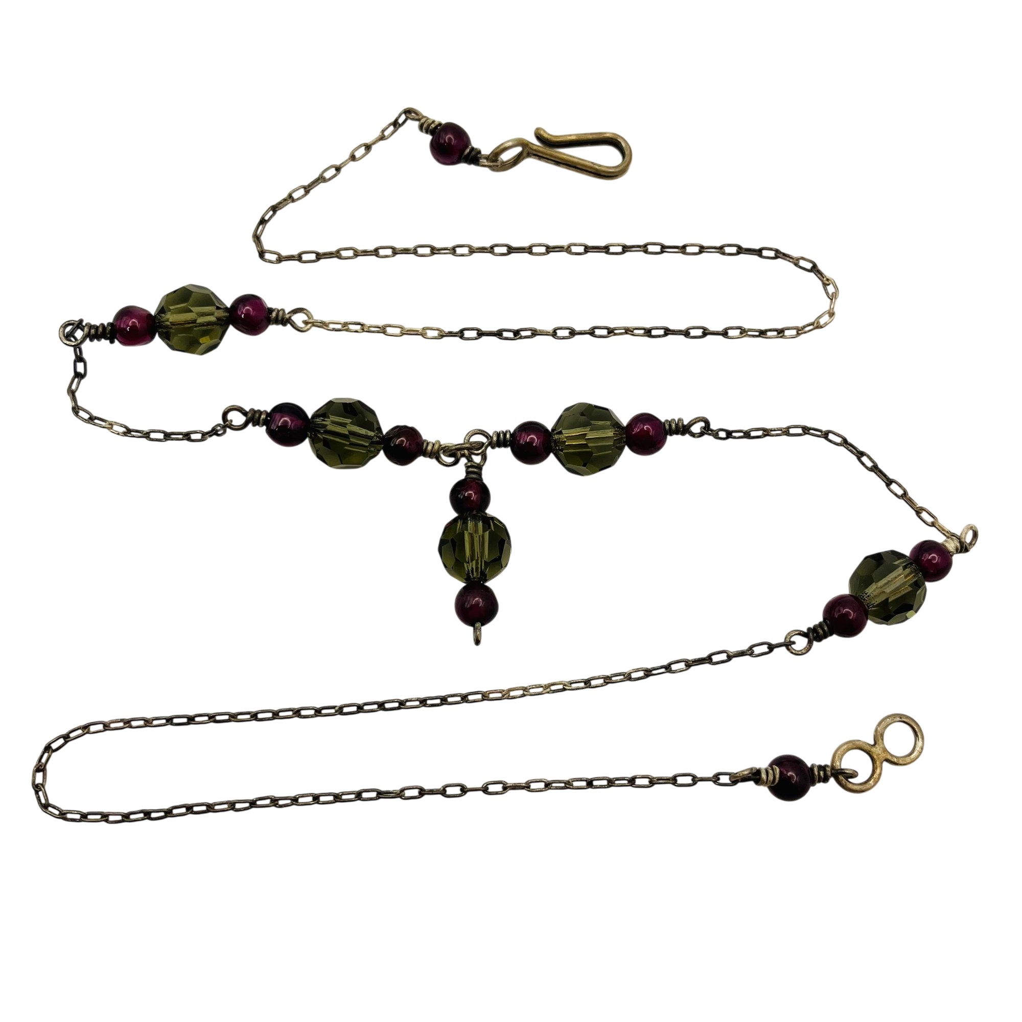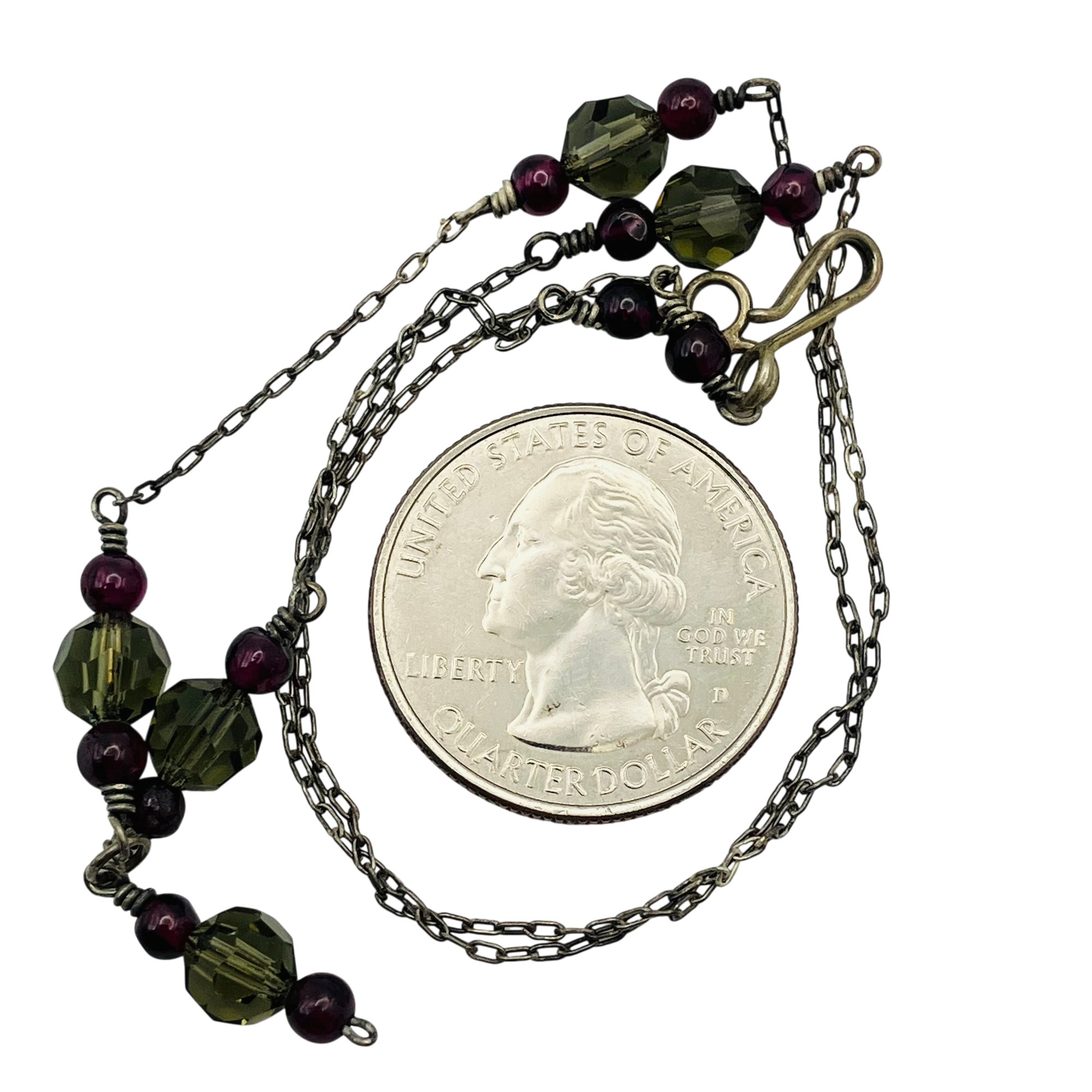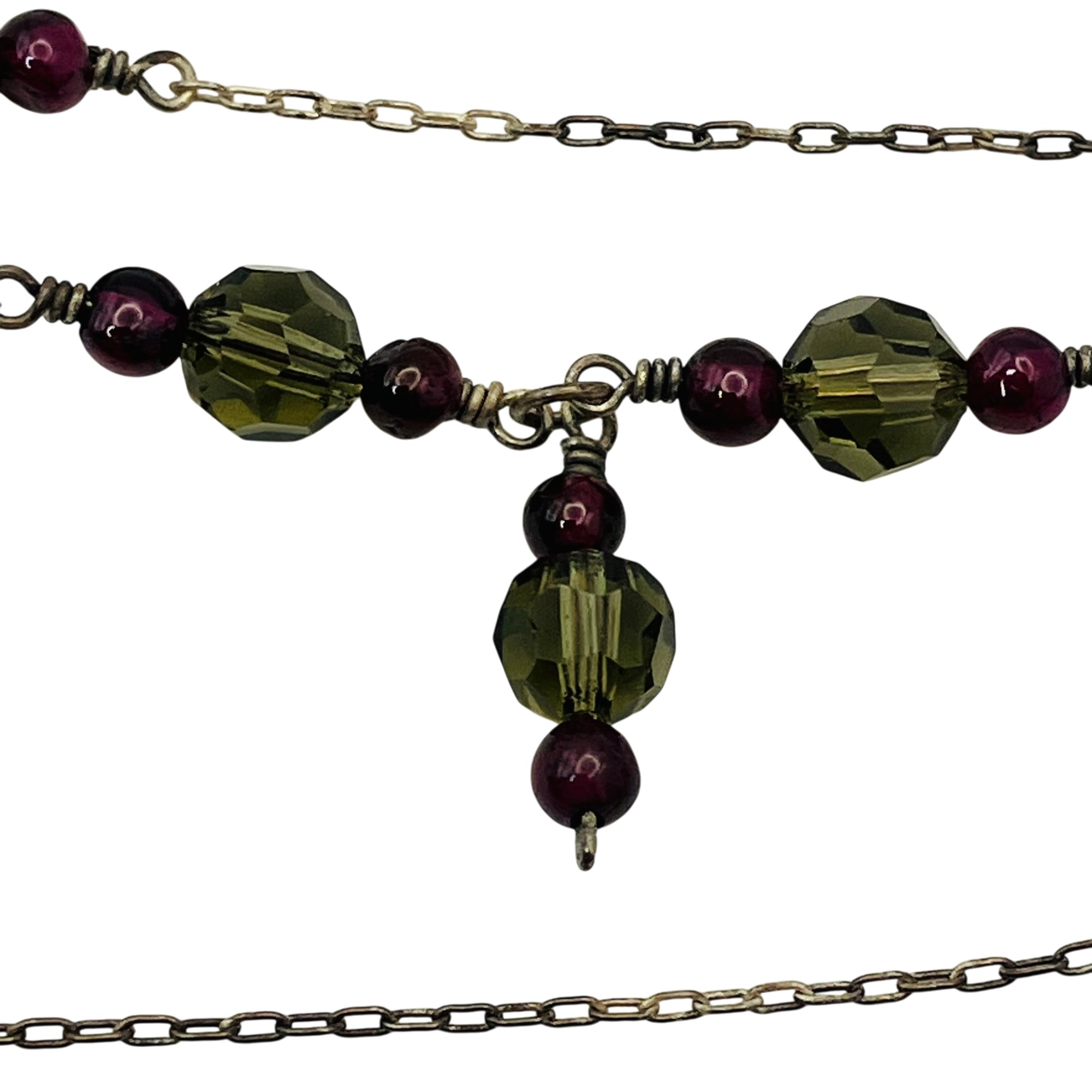 GARNET Sterling Green stone beaded cable chain necklace 4.26 g