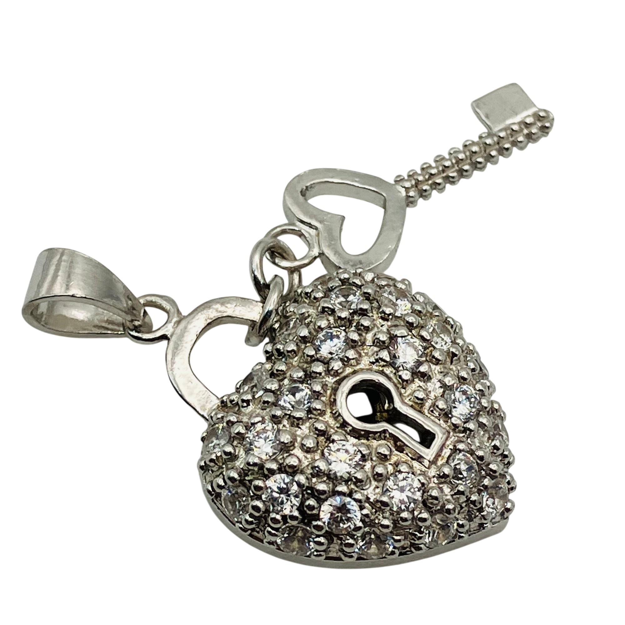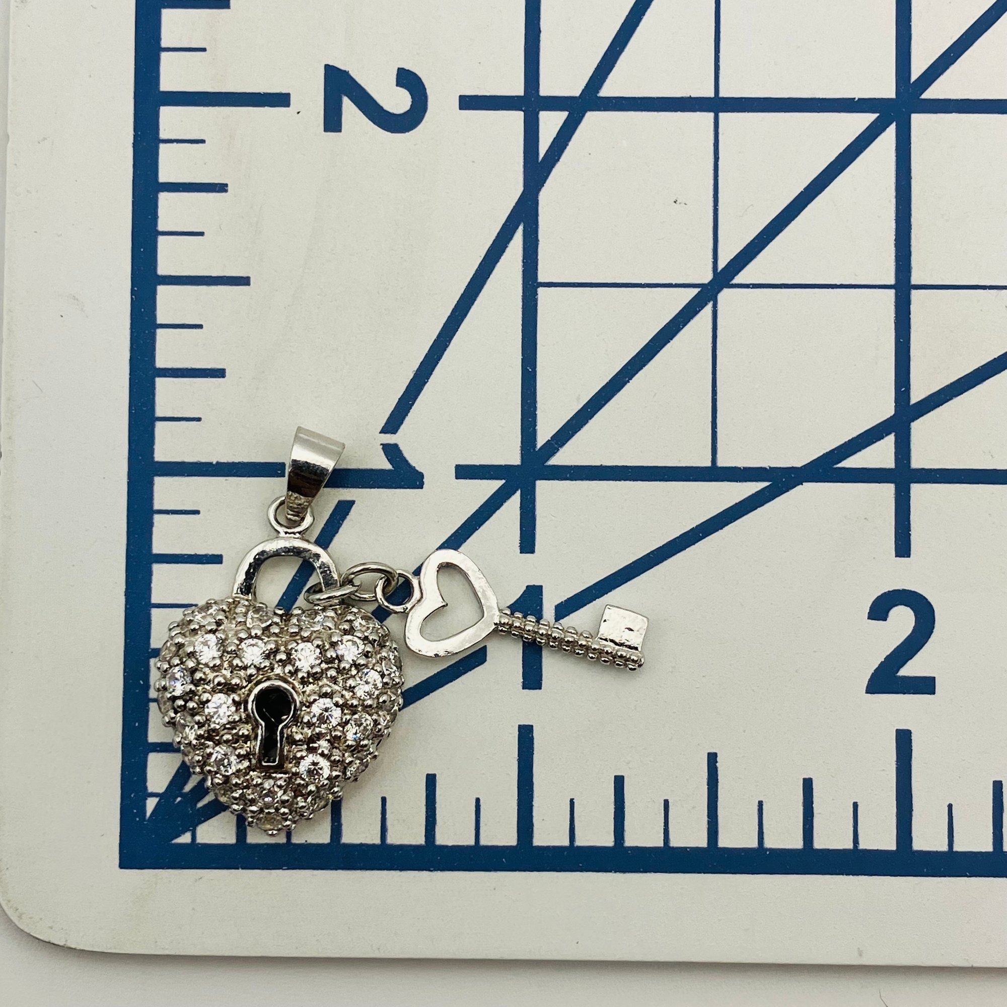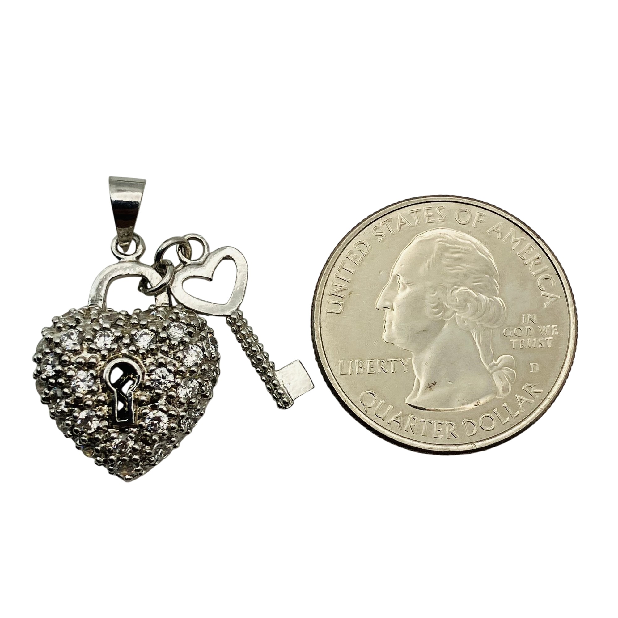 FAS Sterling heart and key clear stone pendant 4.64 g