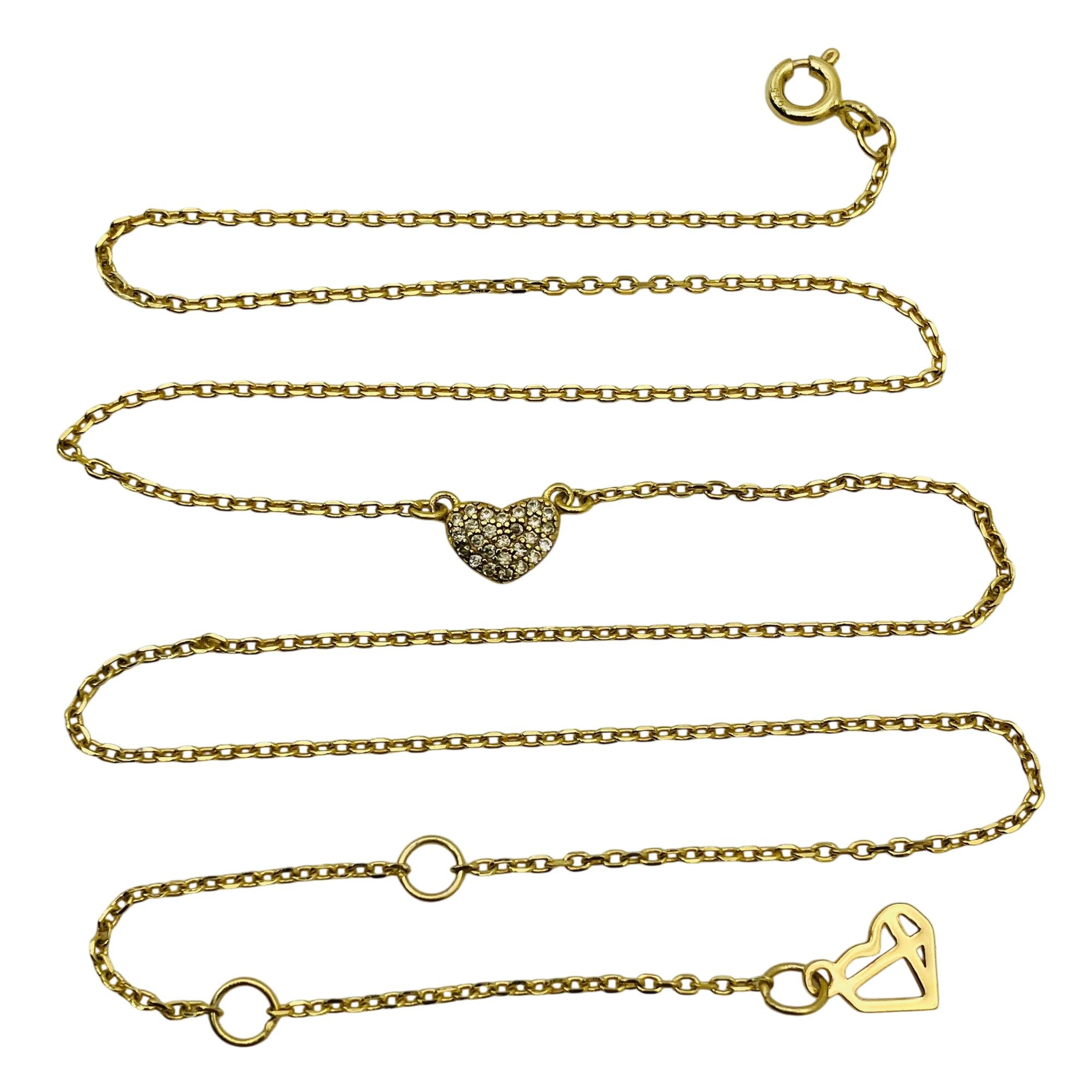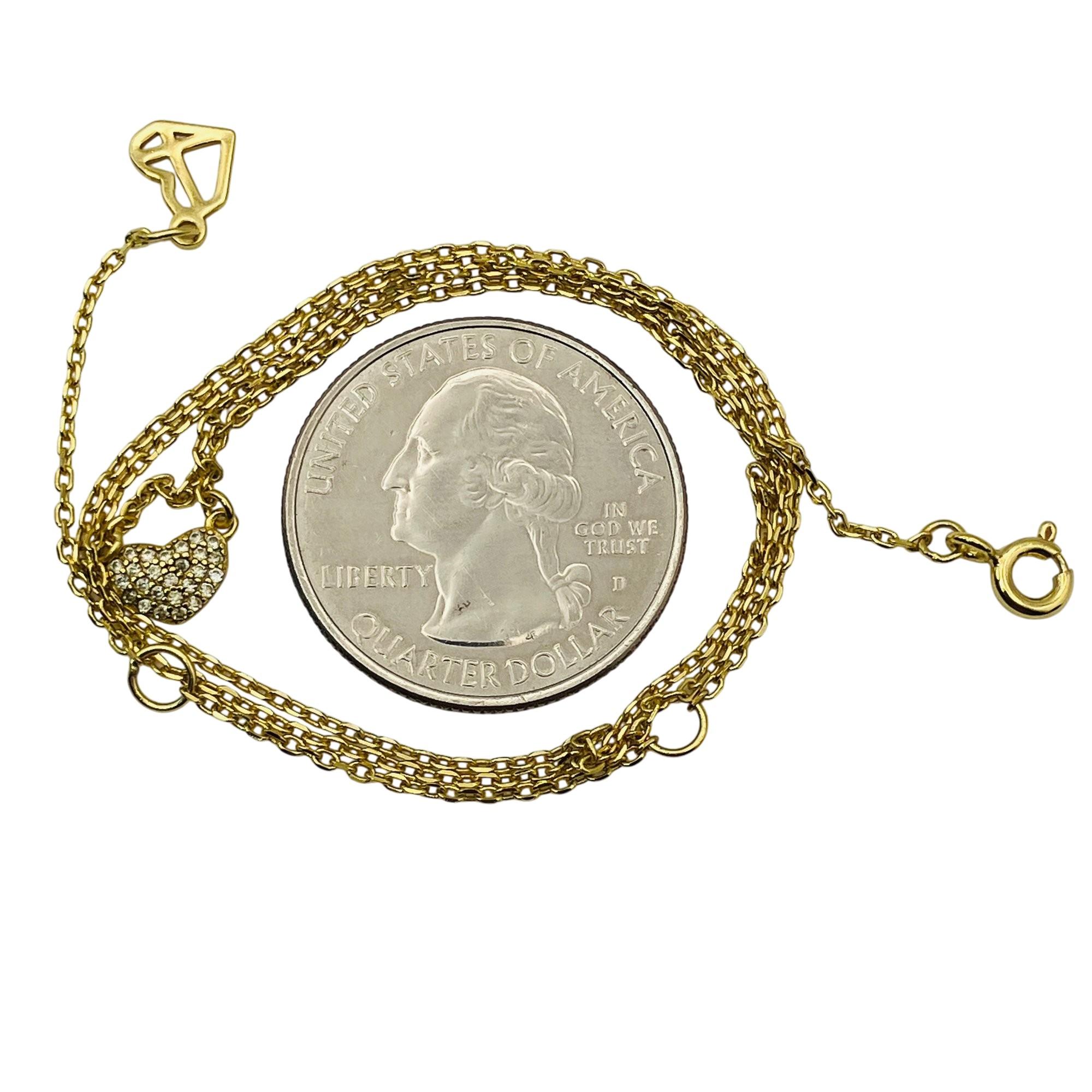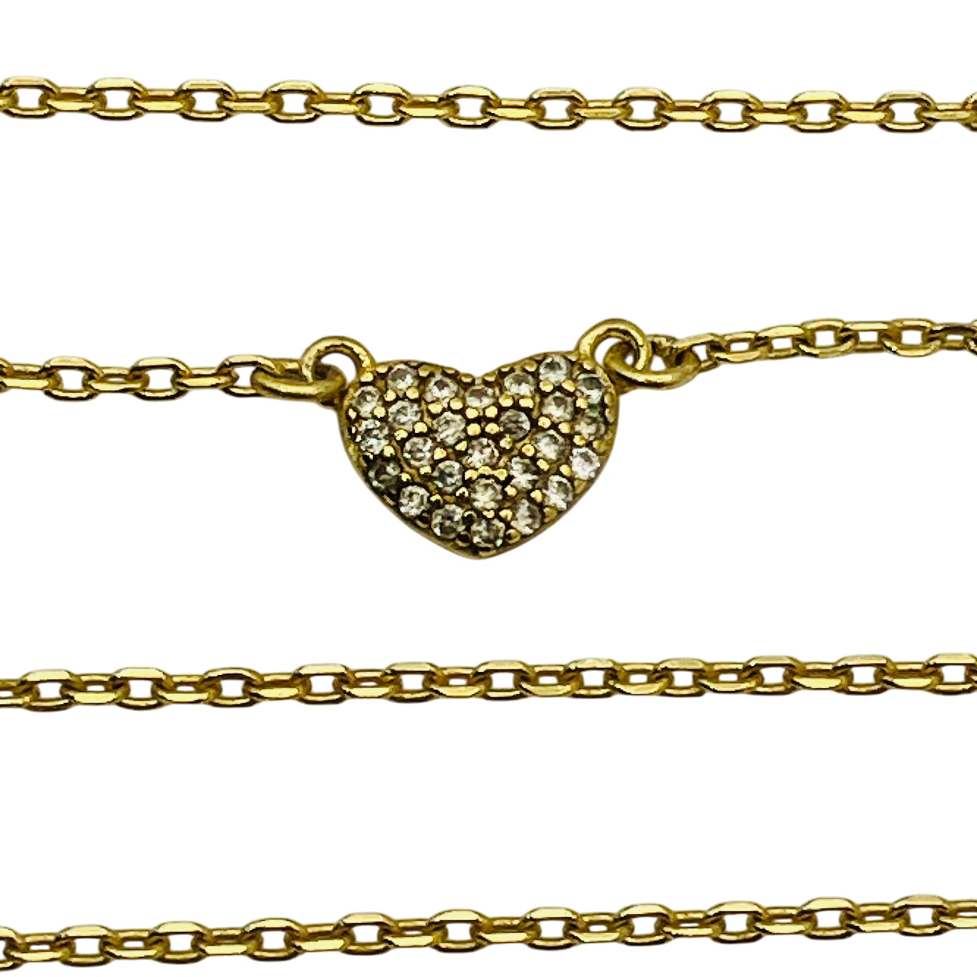 Sterling clear stone pave heart pendant cable chain necklace 1.74 g