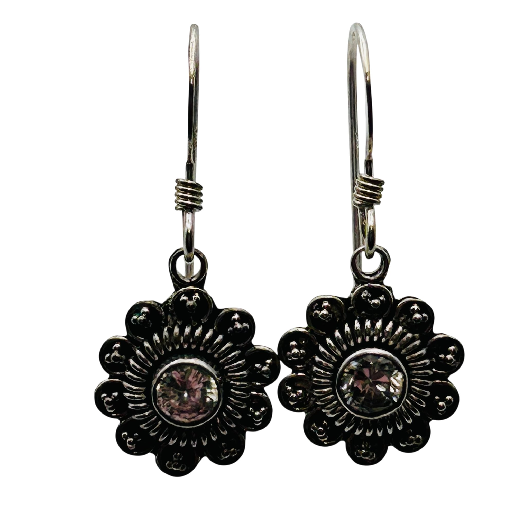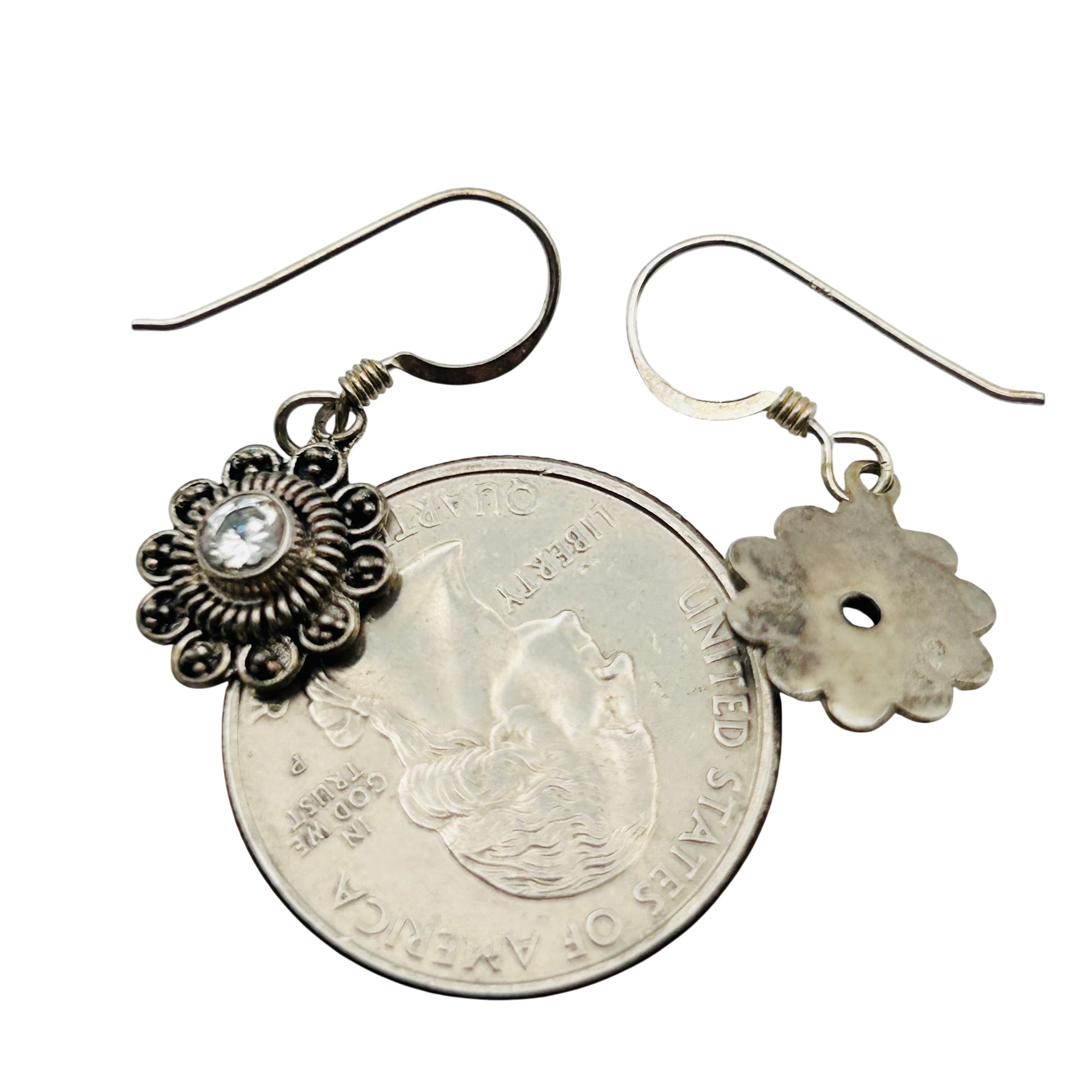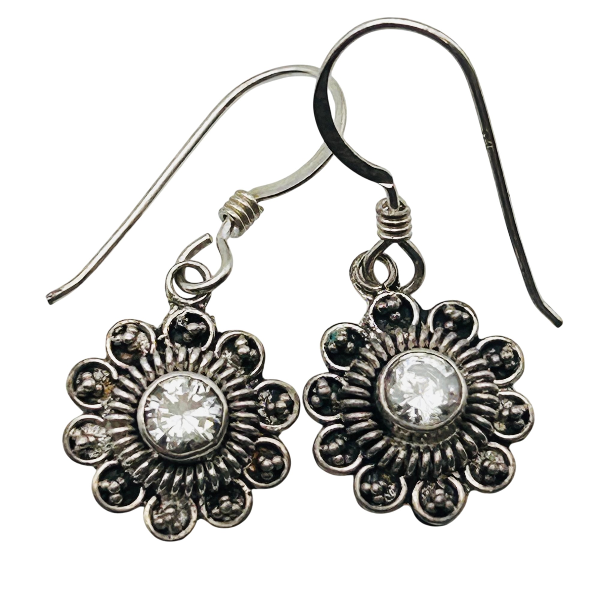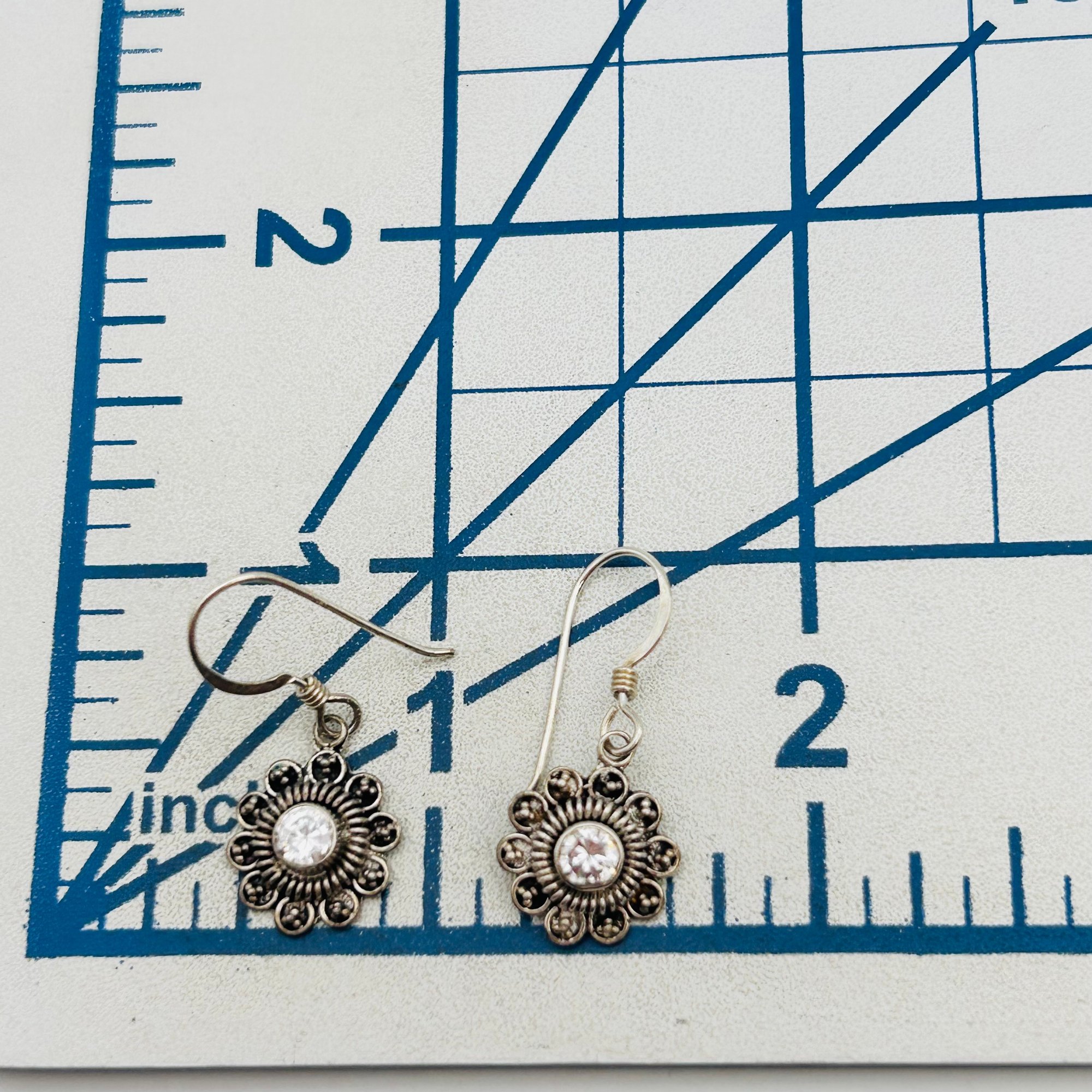 Rhinestone Sterling flower dangle earrings 2.08 g