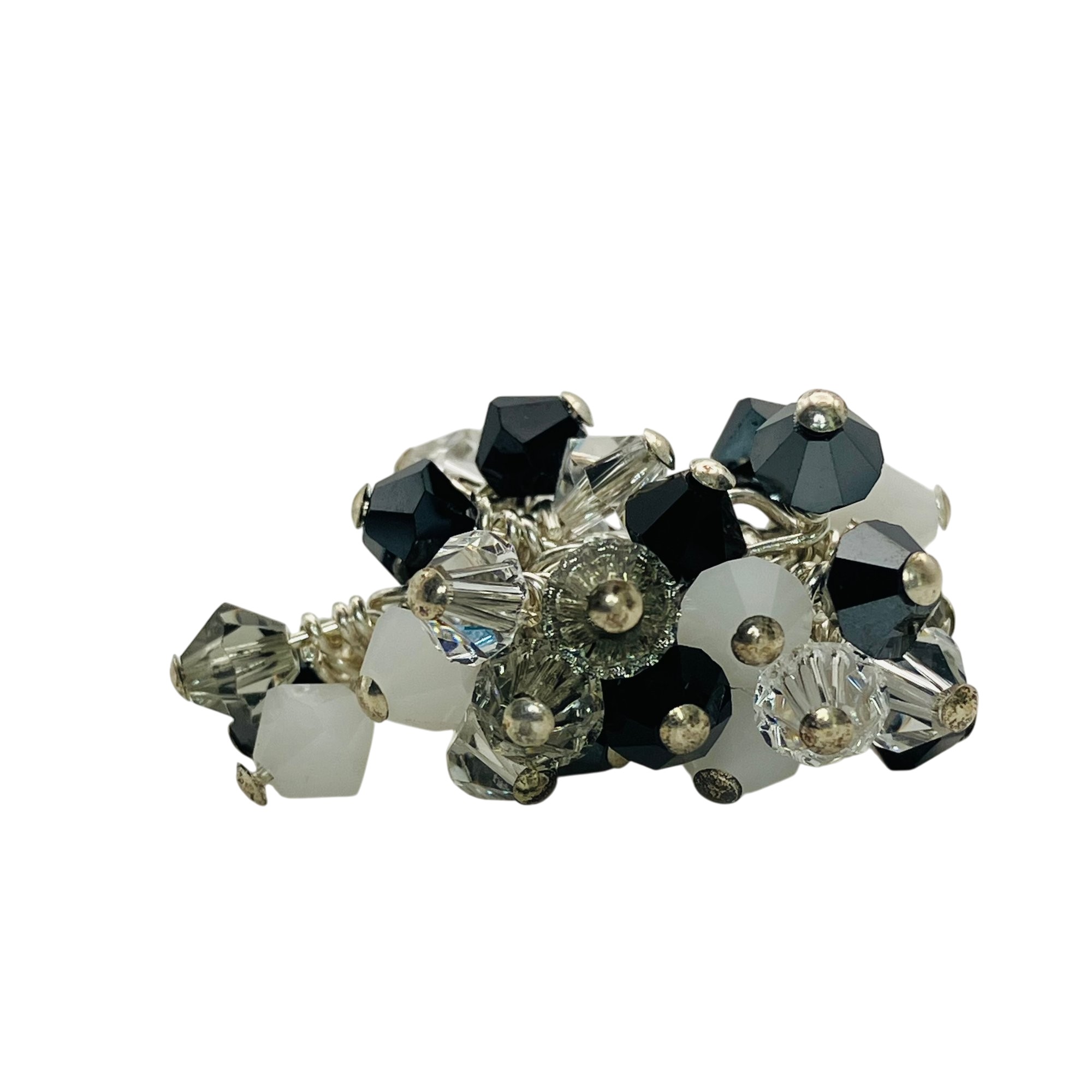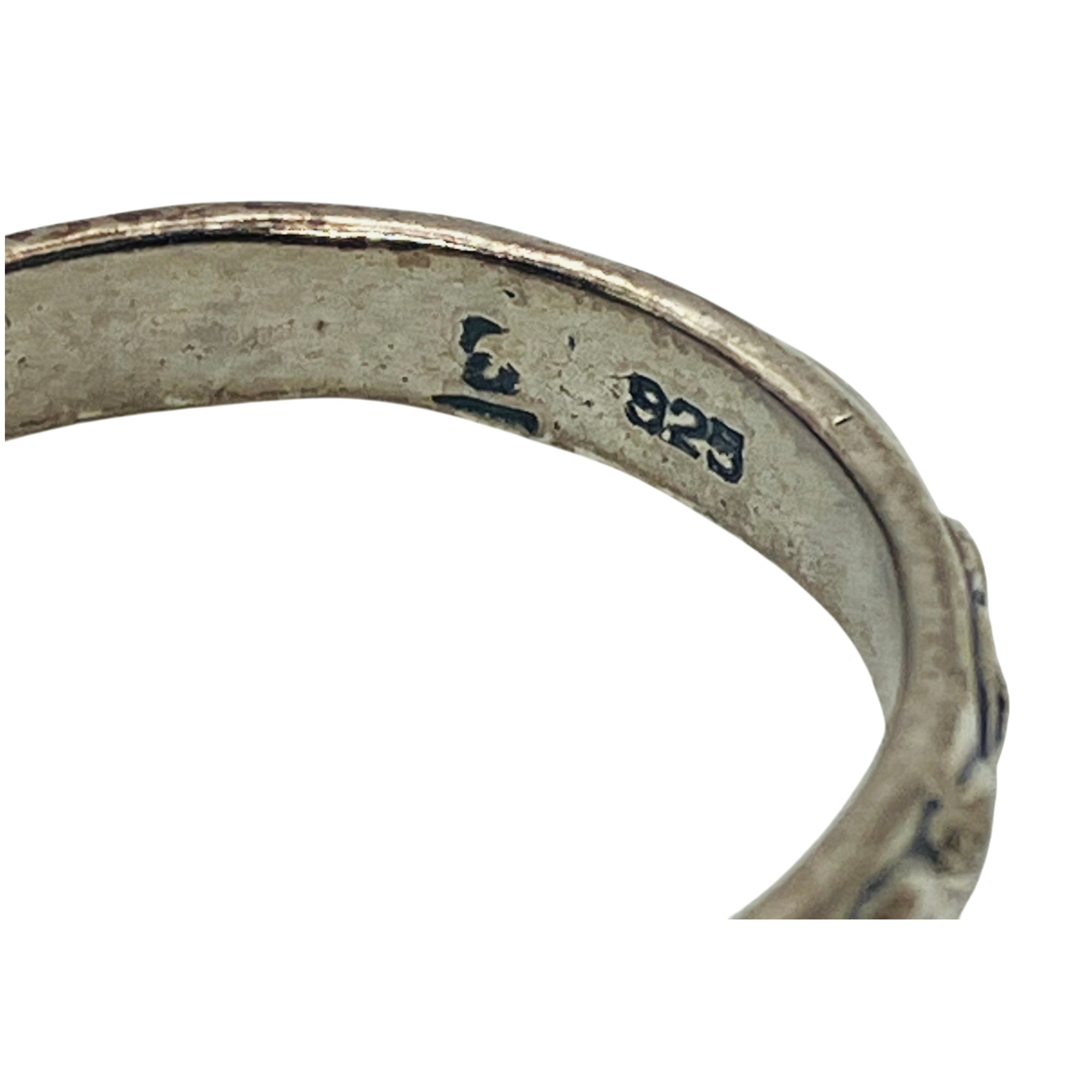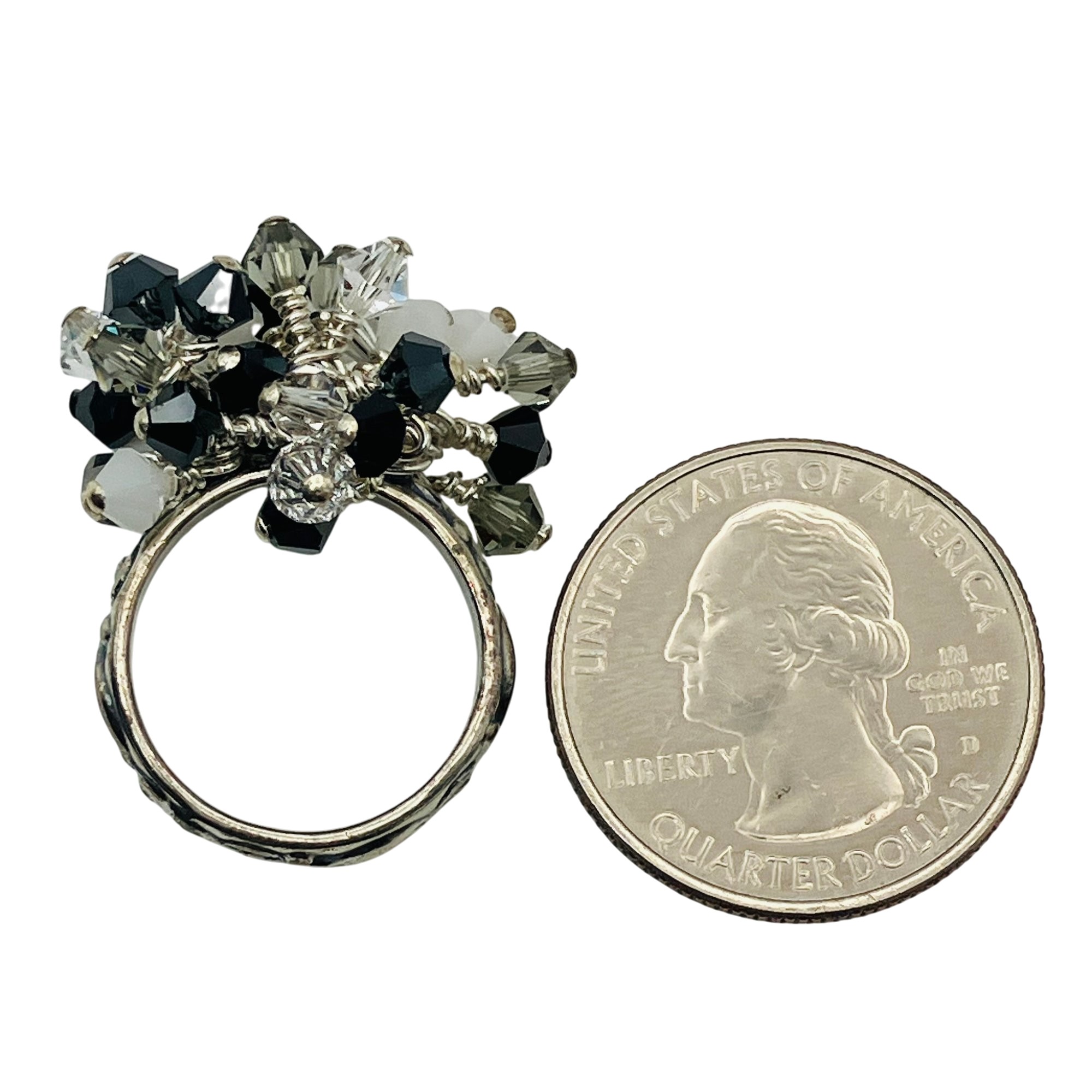 Sterling clear white and black stone dangle decorative band ring unknown marking size 6 6.27 g
