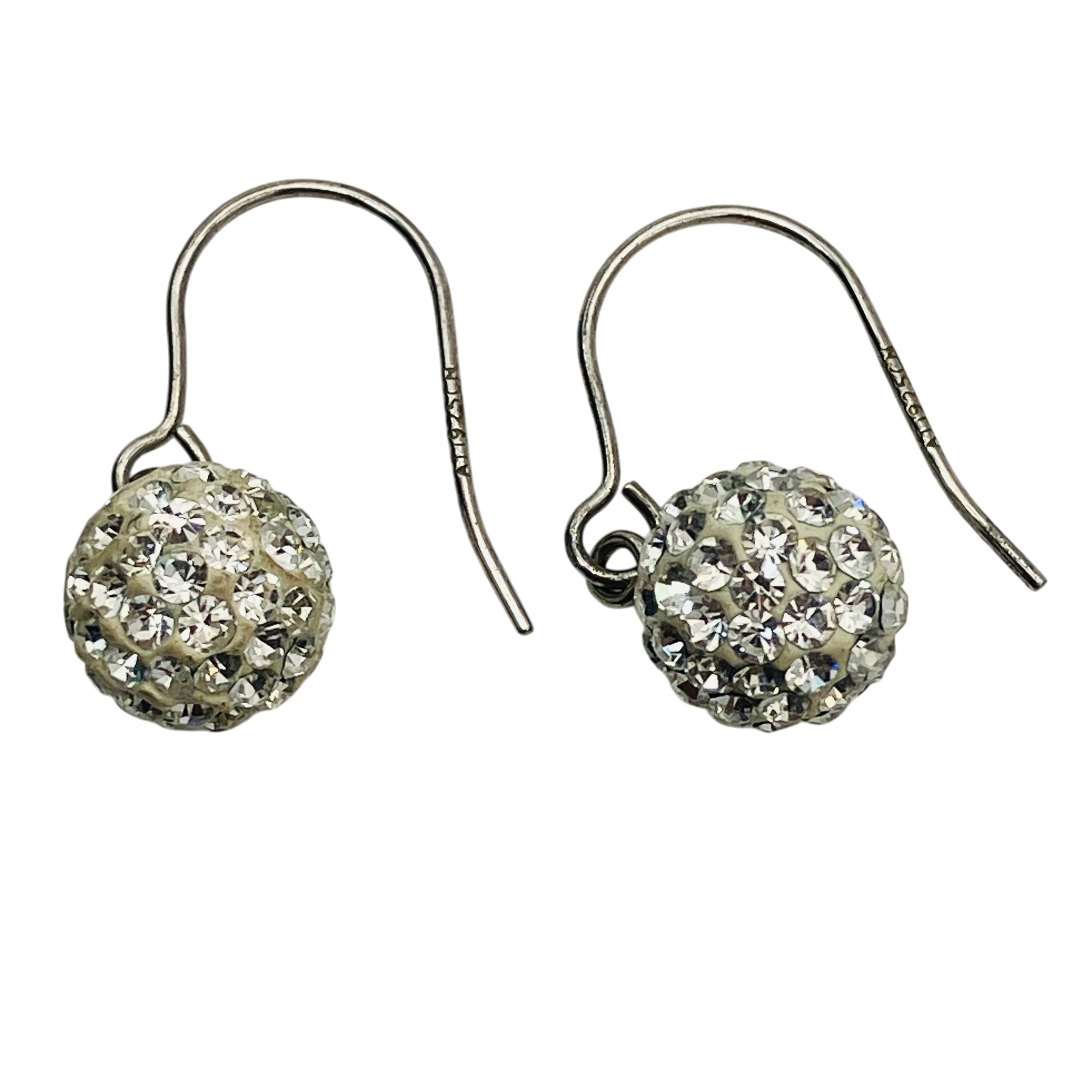 ATI Sterling clear stone pave ball dangle earrings 1.23 g