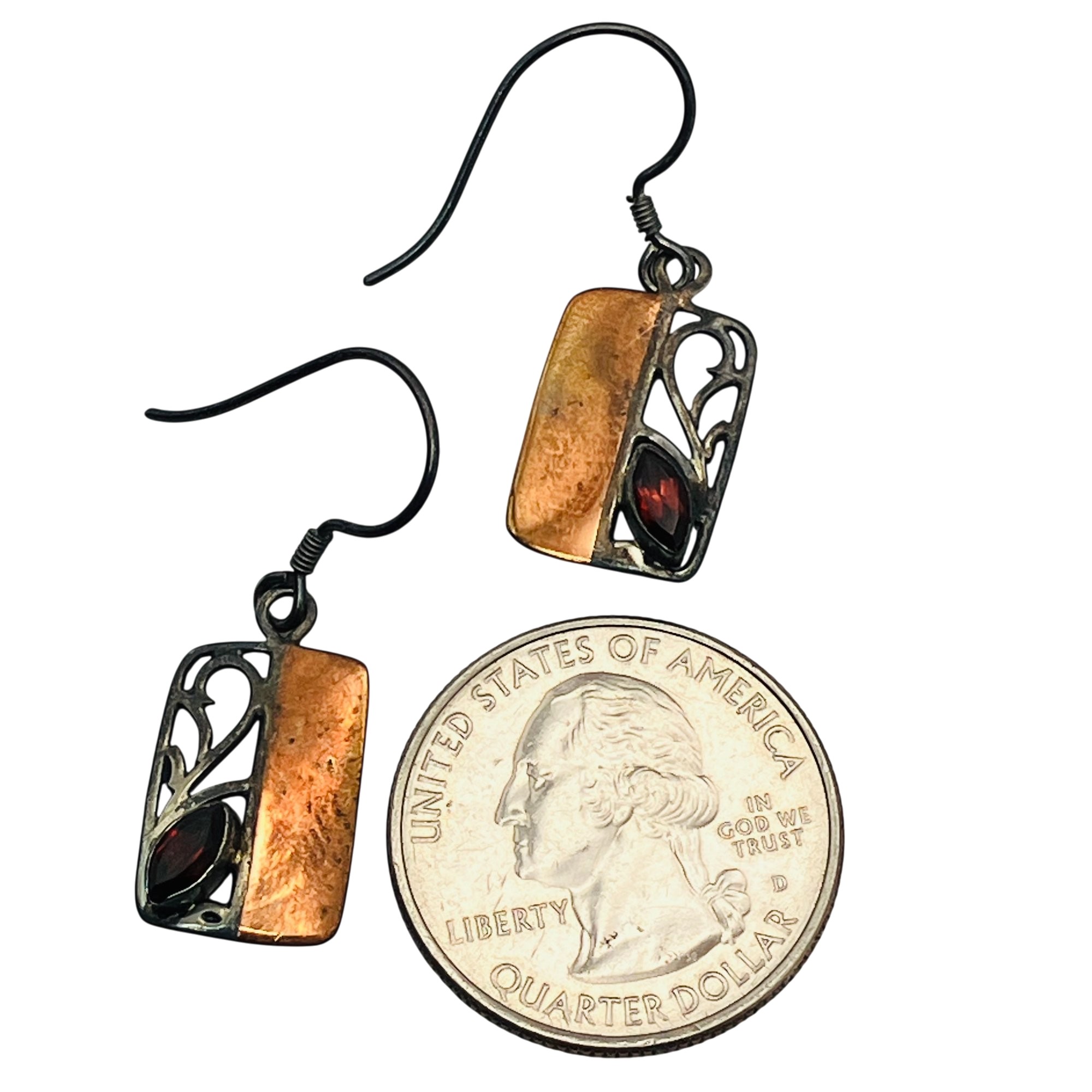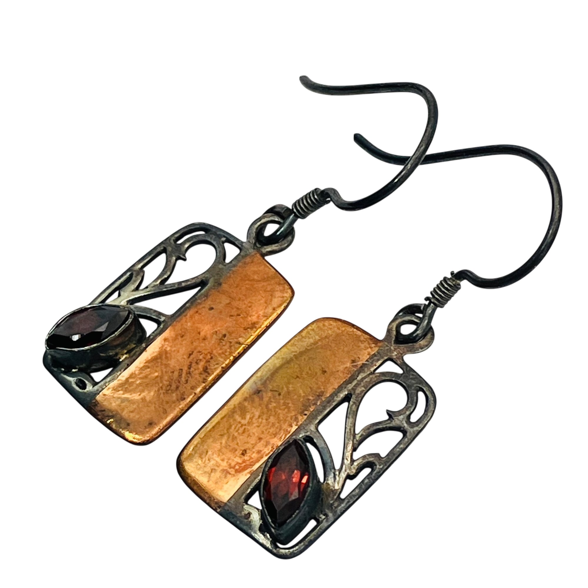 GARNET Sterling copper dangle earrings 2.88 g