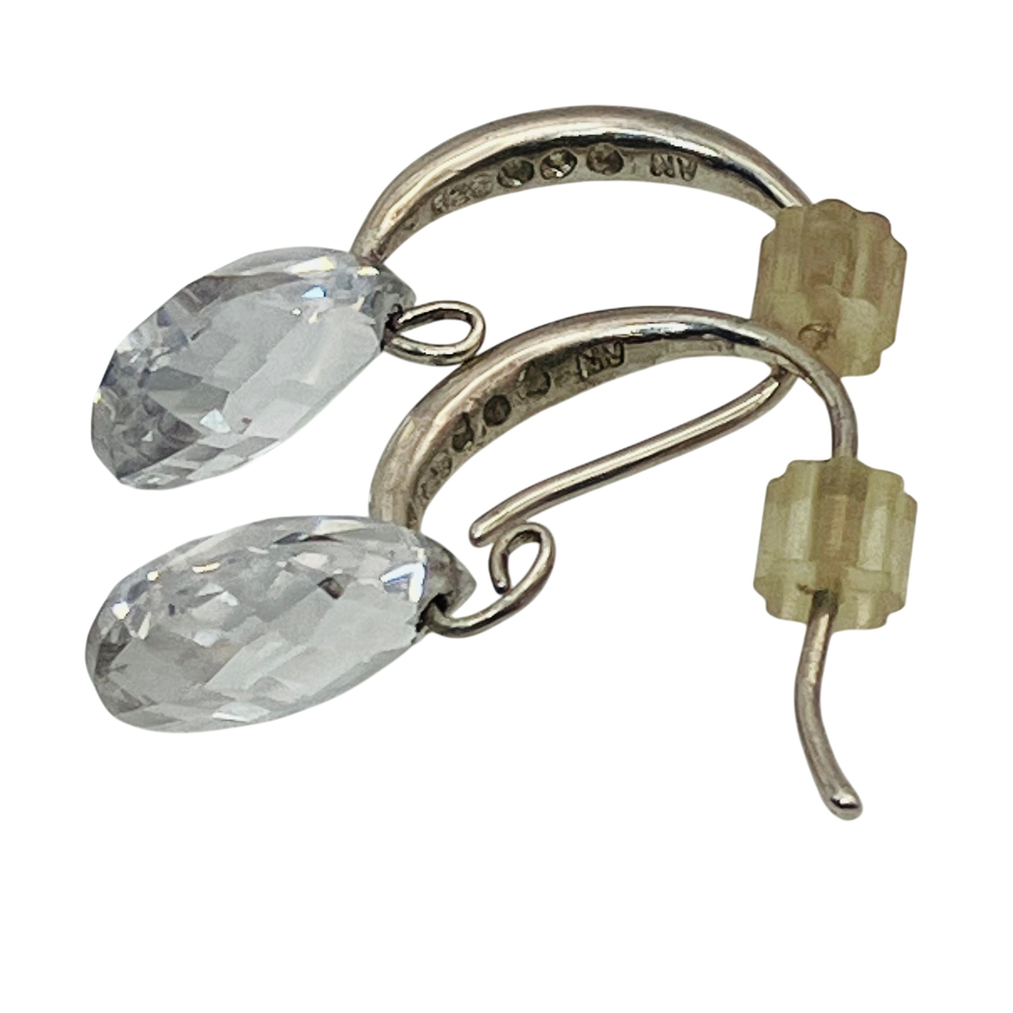 NV RHINESTONE Sterling C hoop teardrop earrings 2.62 g