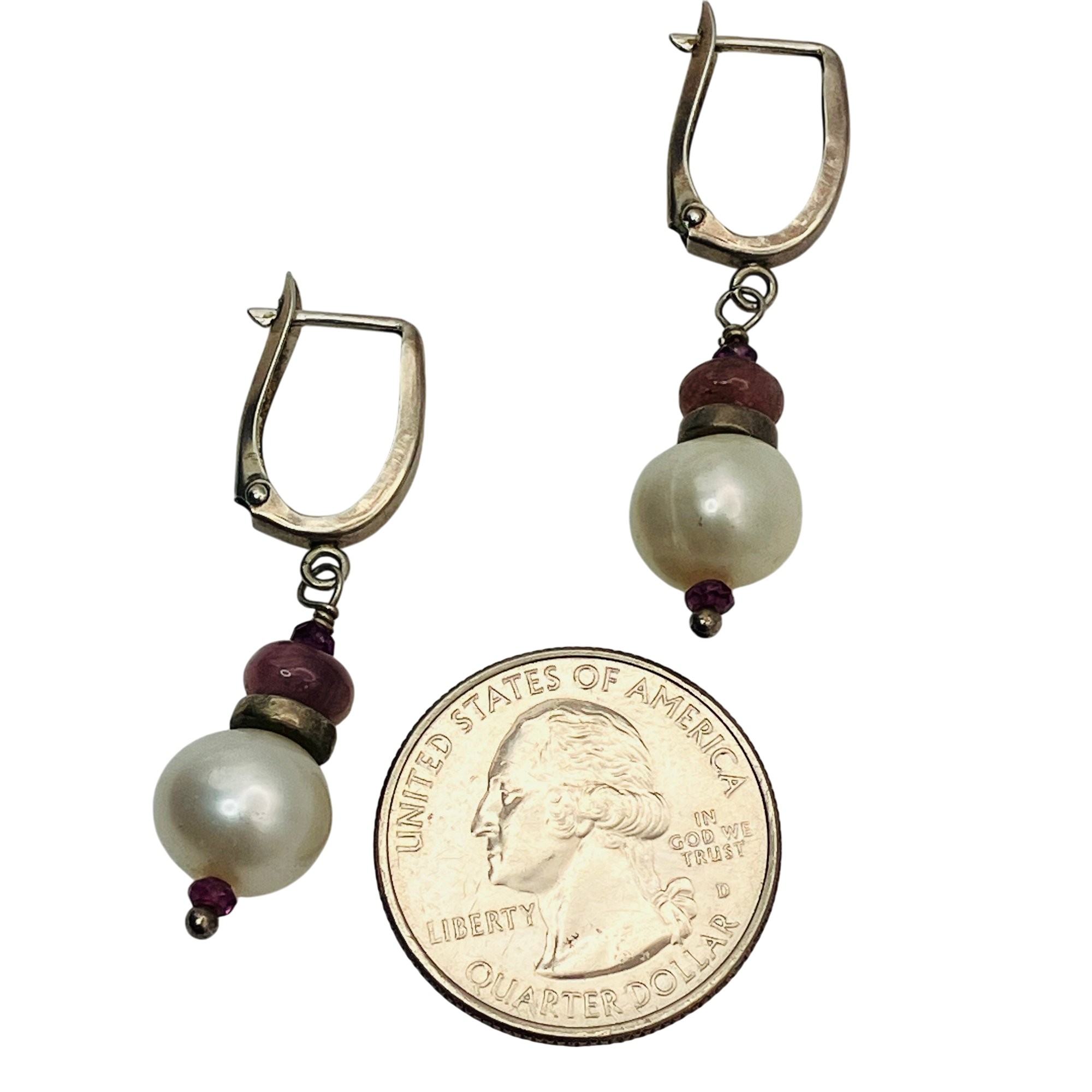 PEARL pink TOURMALINE Sterling dangle earrings 6.04 g
