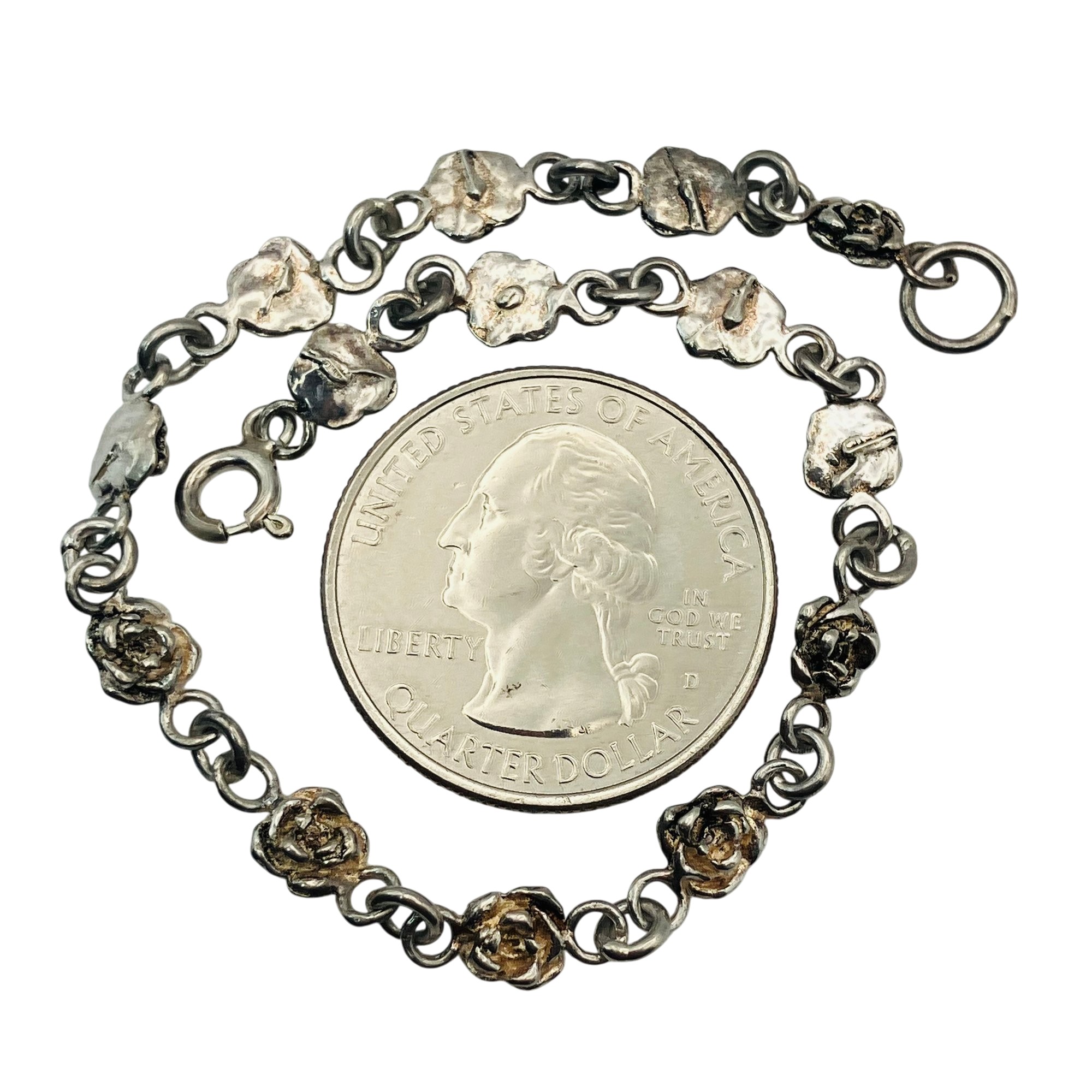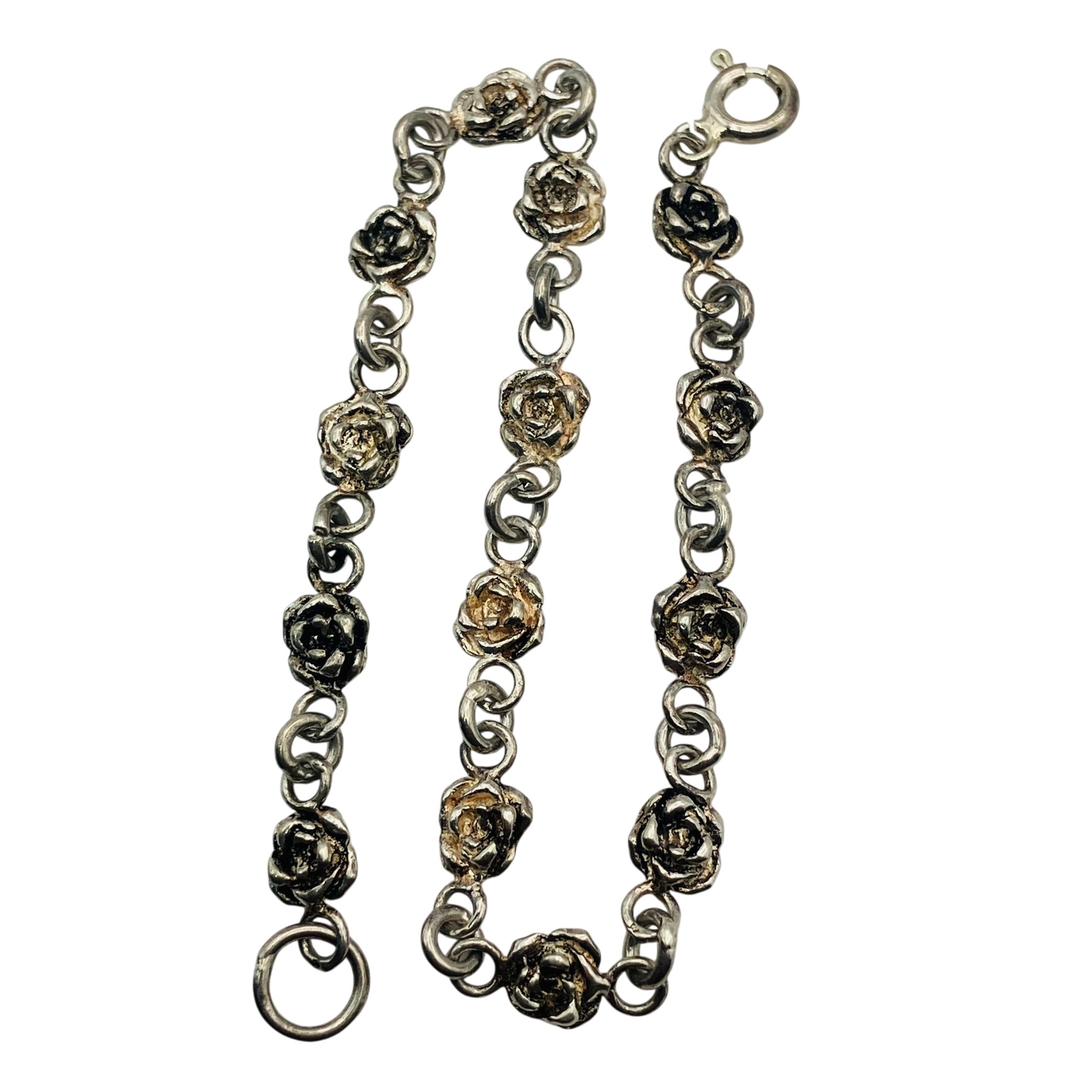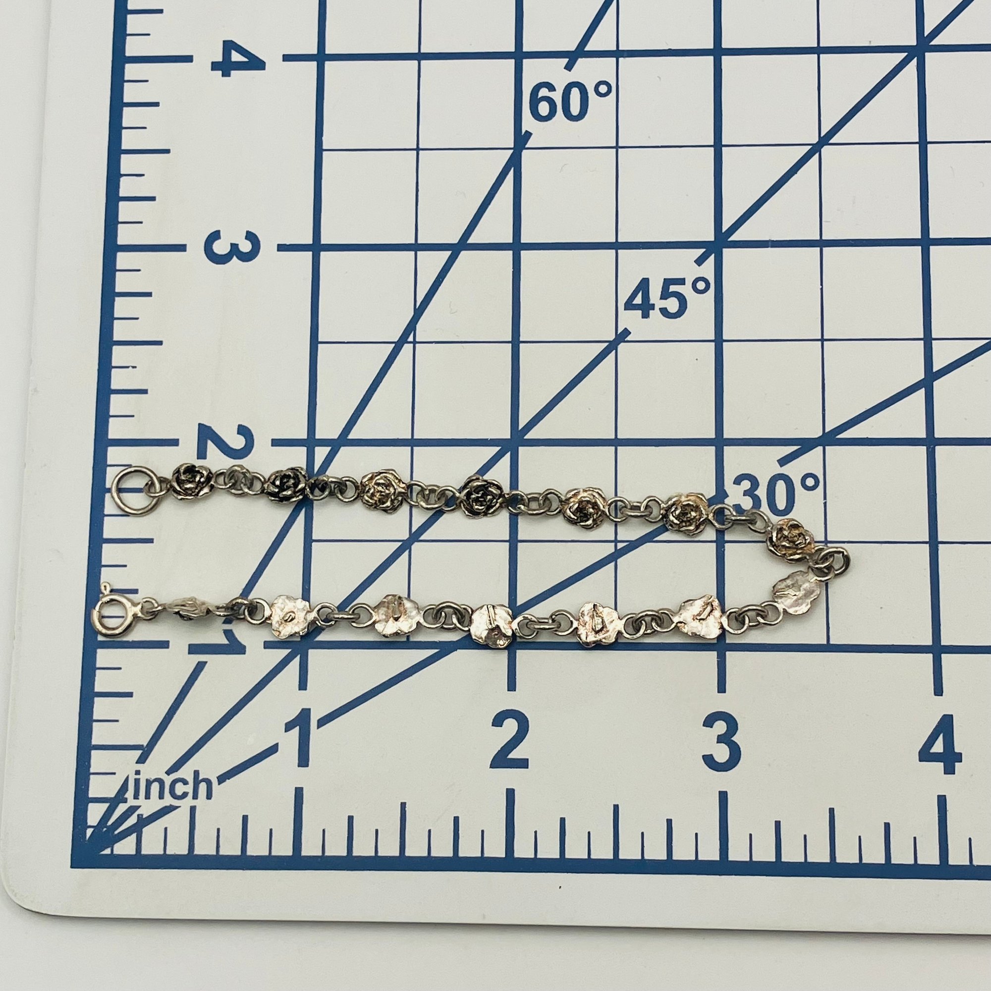 Sterling Rose Link Chain Bracelet, 5.43 G