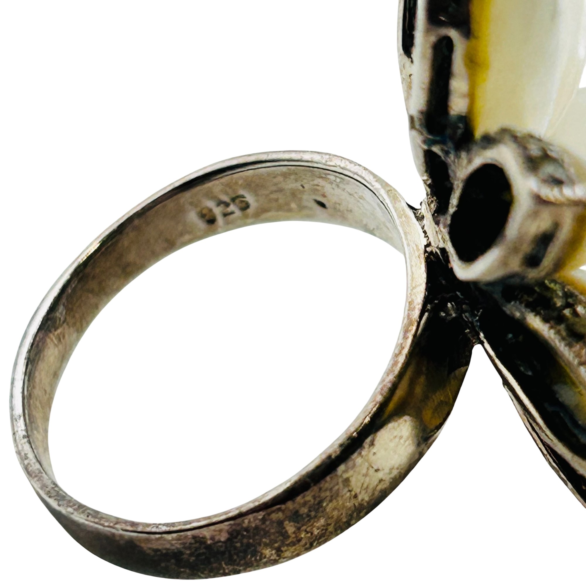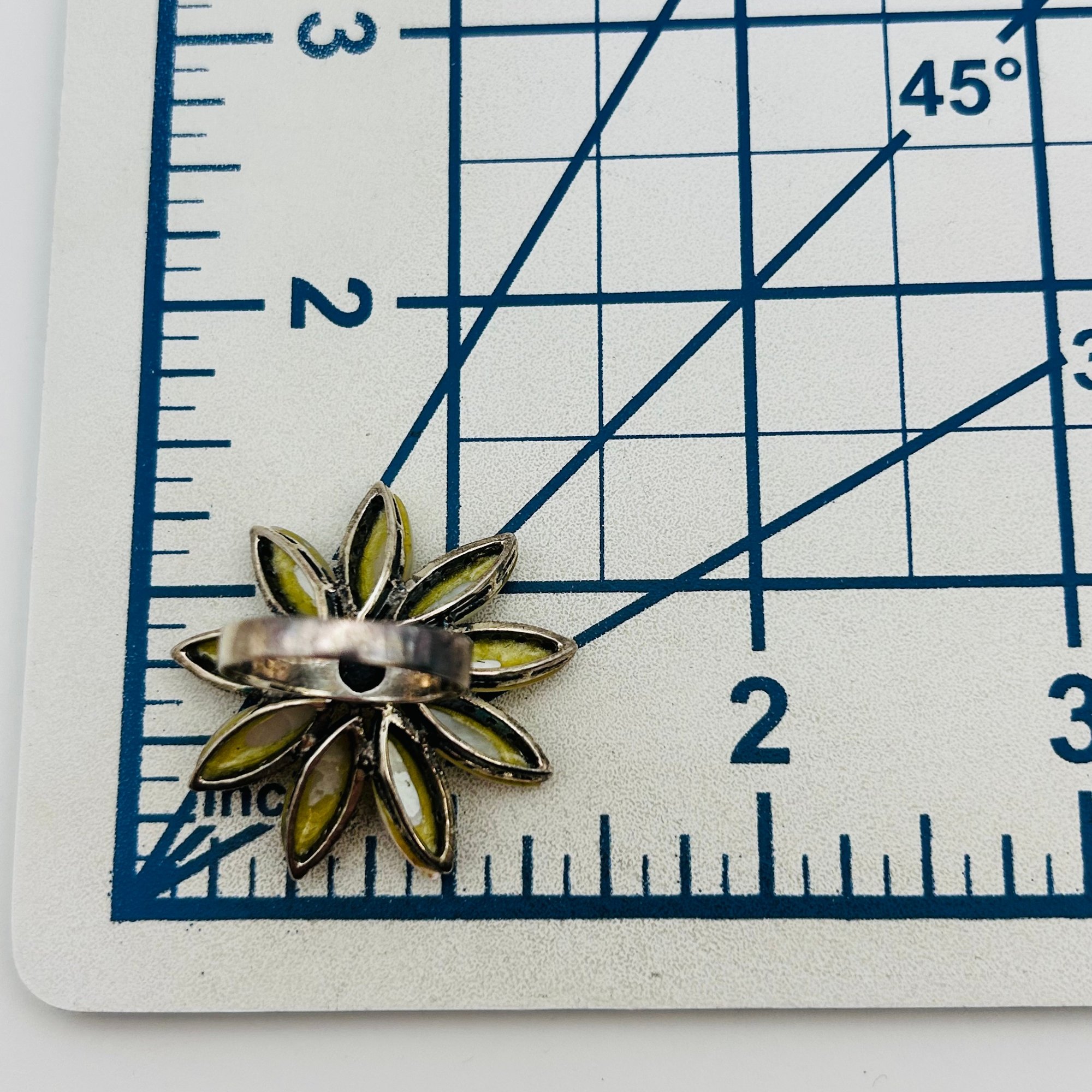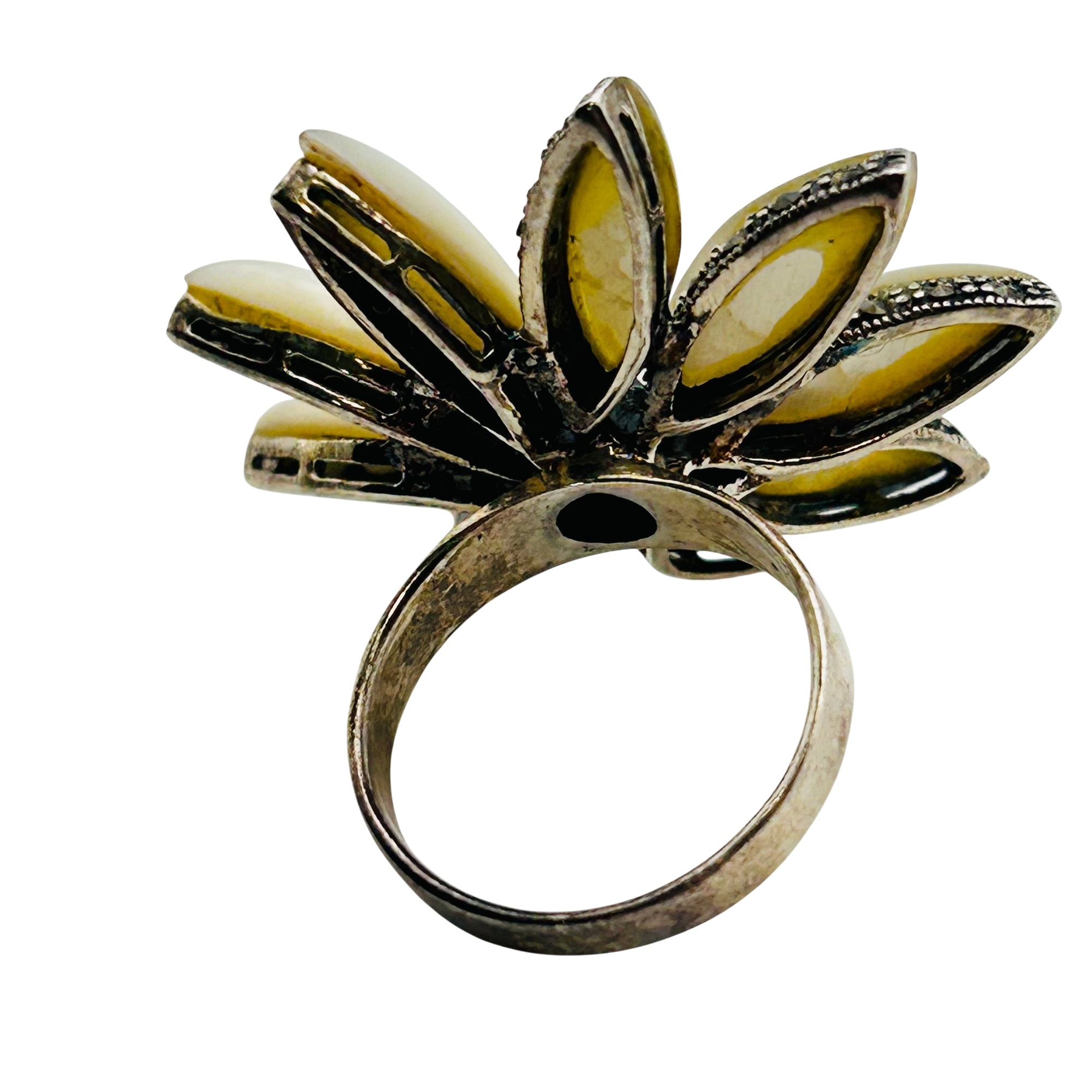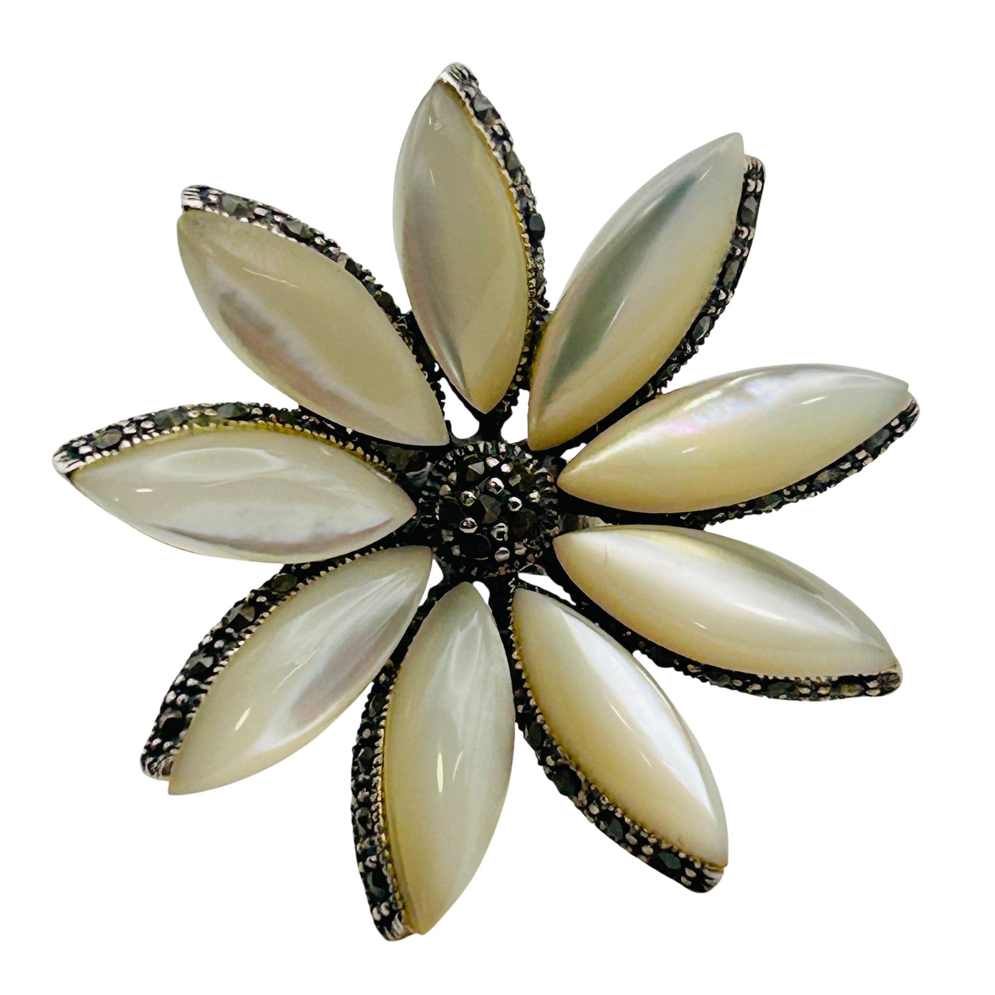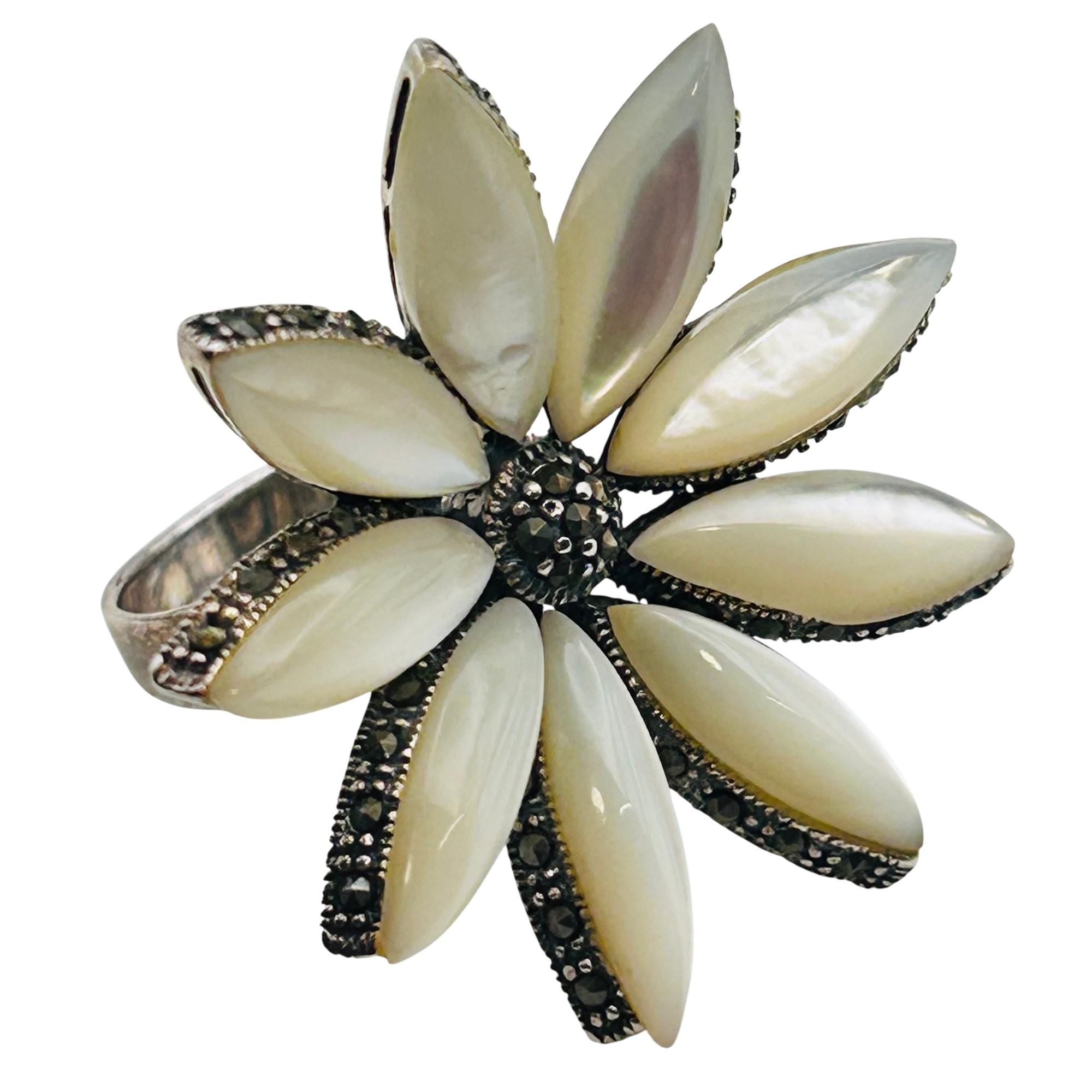 MARCASITE and mother of pearl Sterling flower statement ring size 5.5 8.98 g