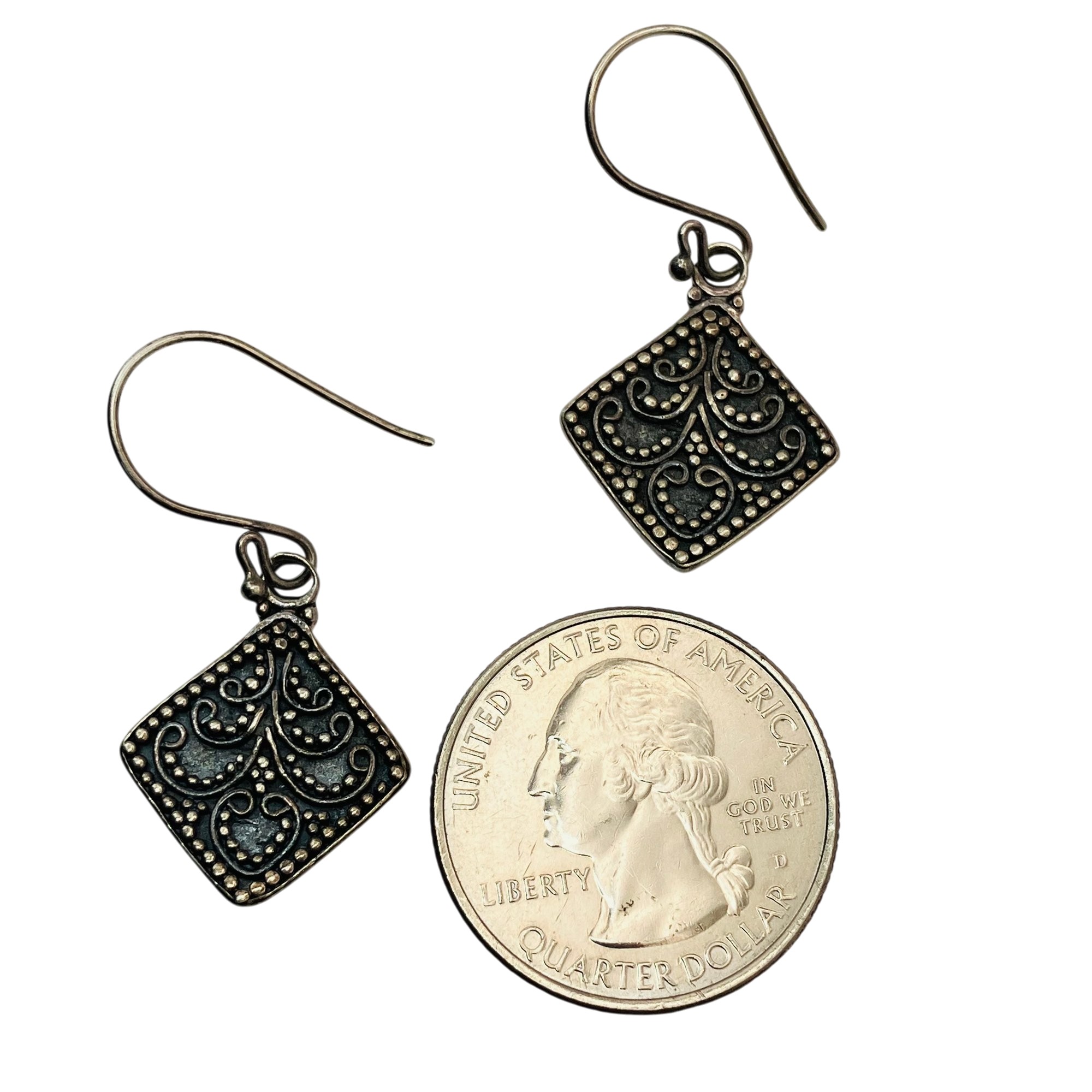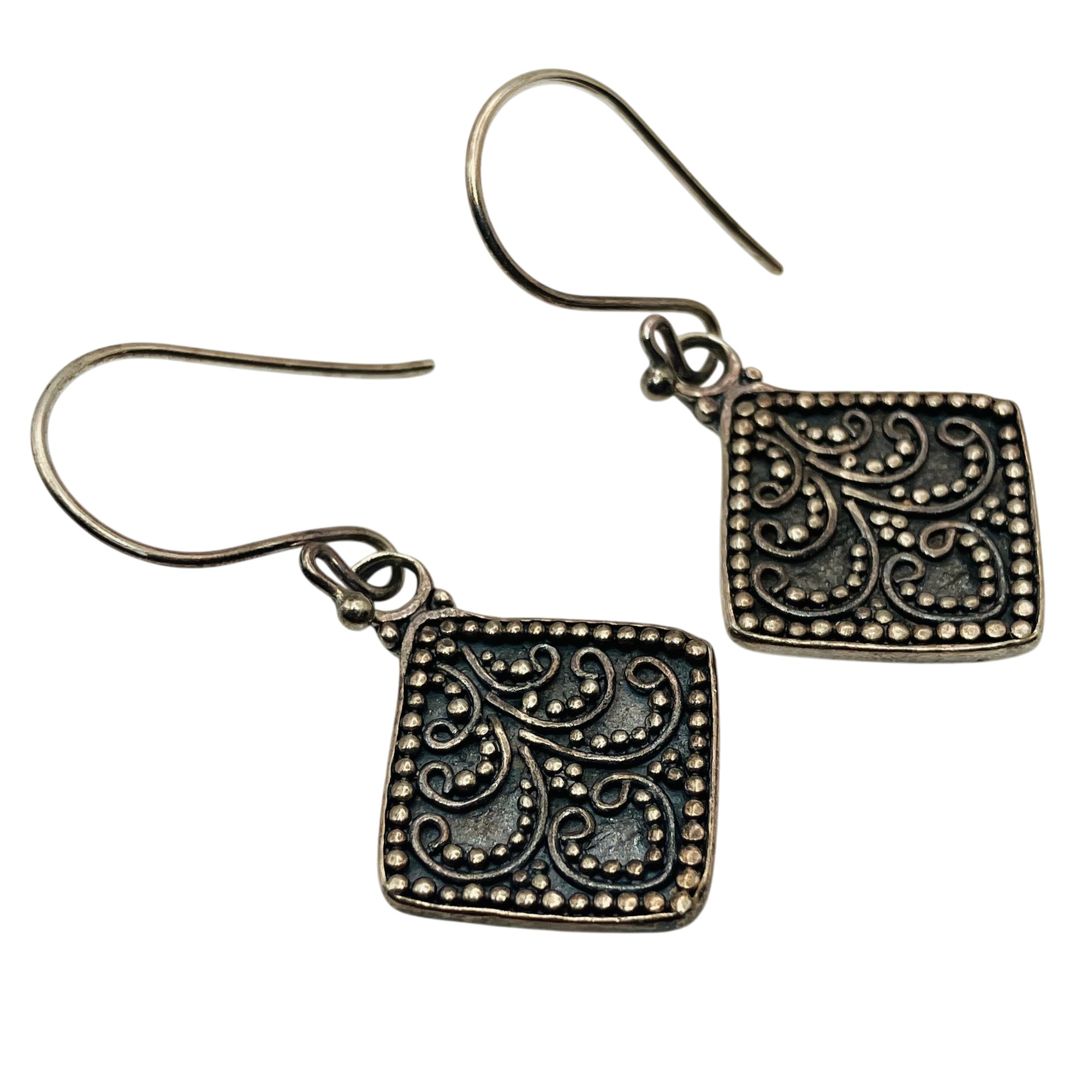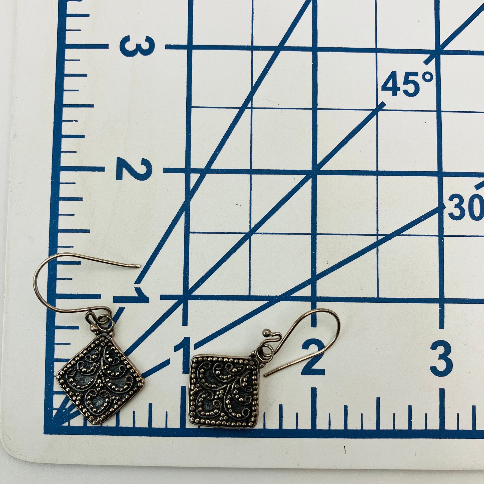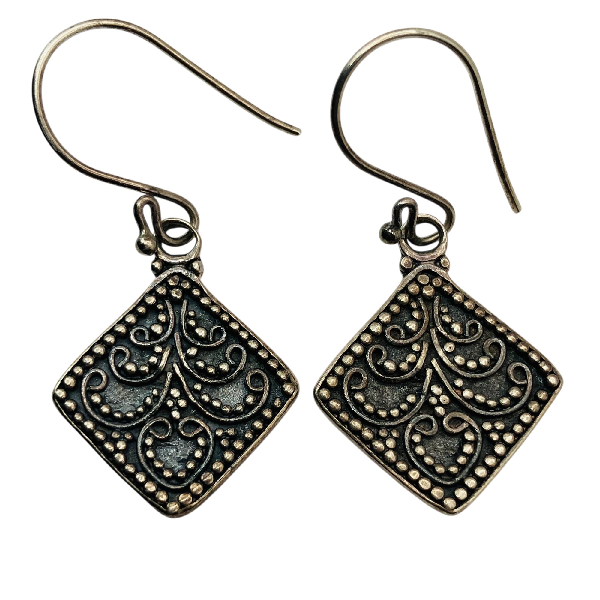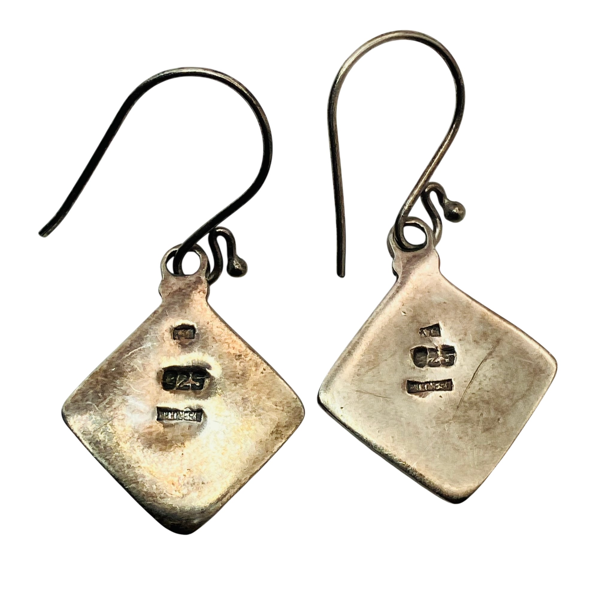 Sterling diamond shaped unique design dangle earrings unknown markings 4.59 g