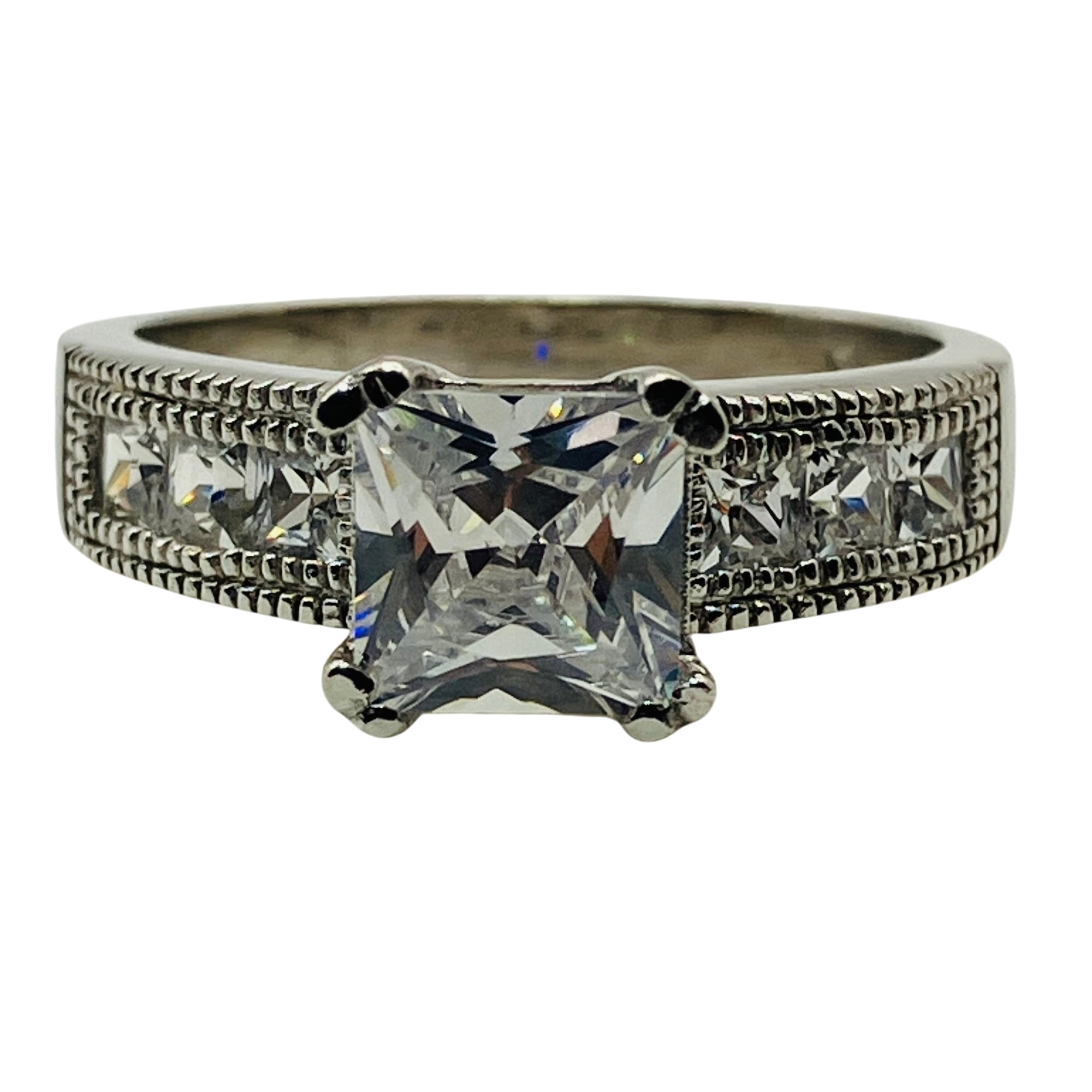 A, Sterling Clear Stone Engagement Ring, Size 8.5, 4.83 G