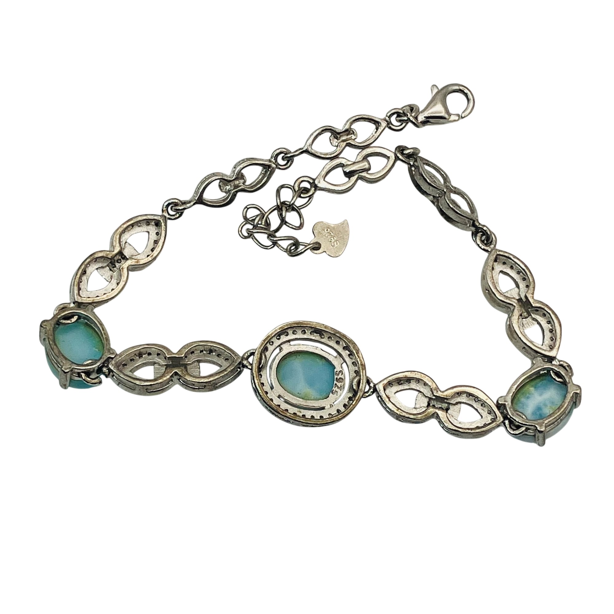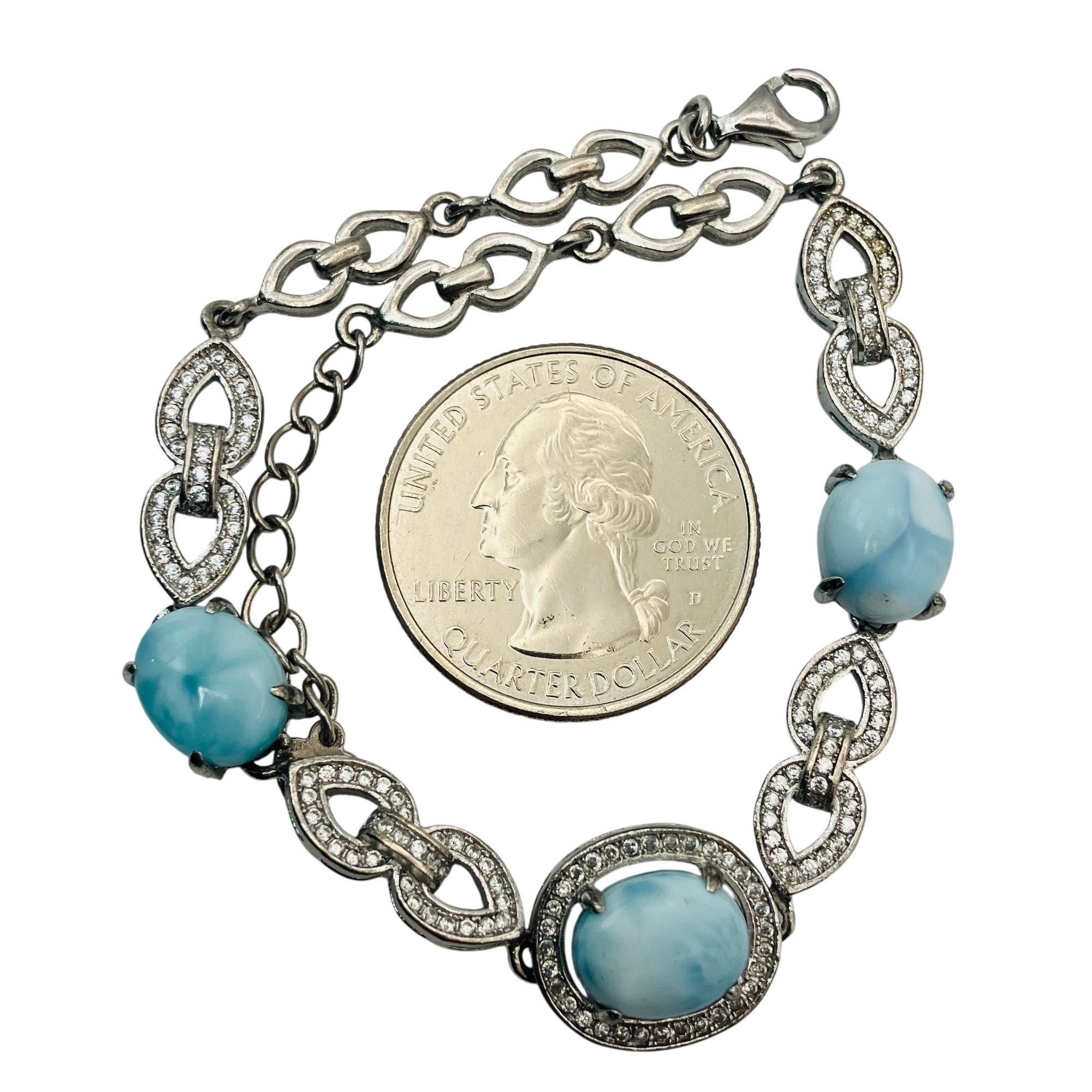 AZIEL LARIMAR Sterling clear stone unique Link bracelet 12.32 g