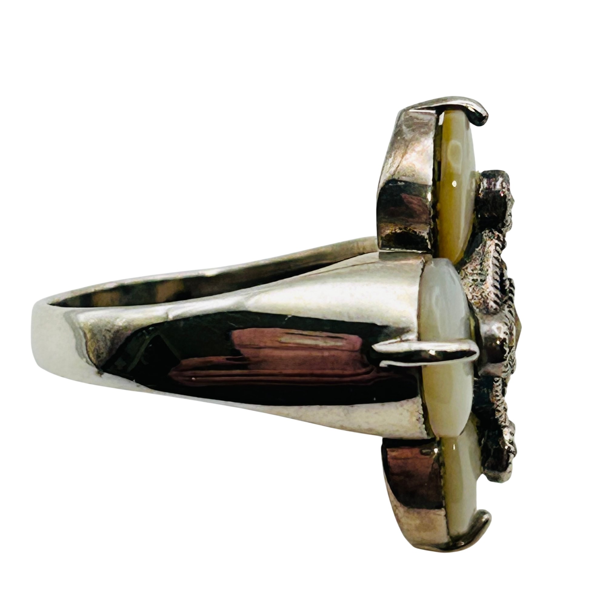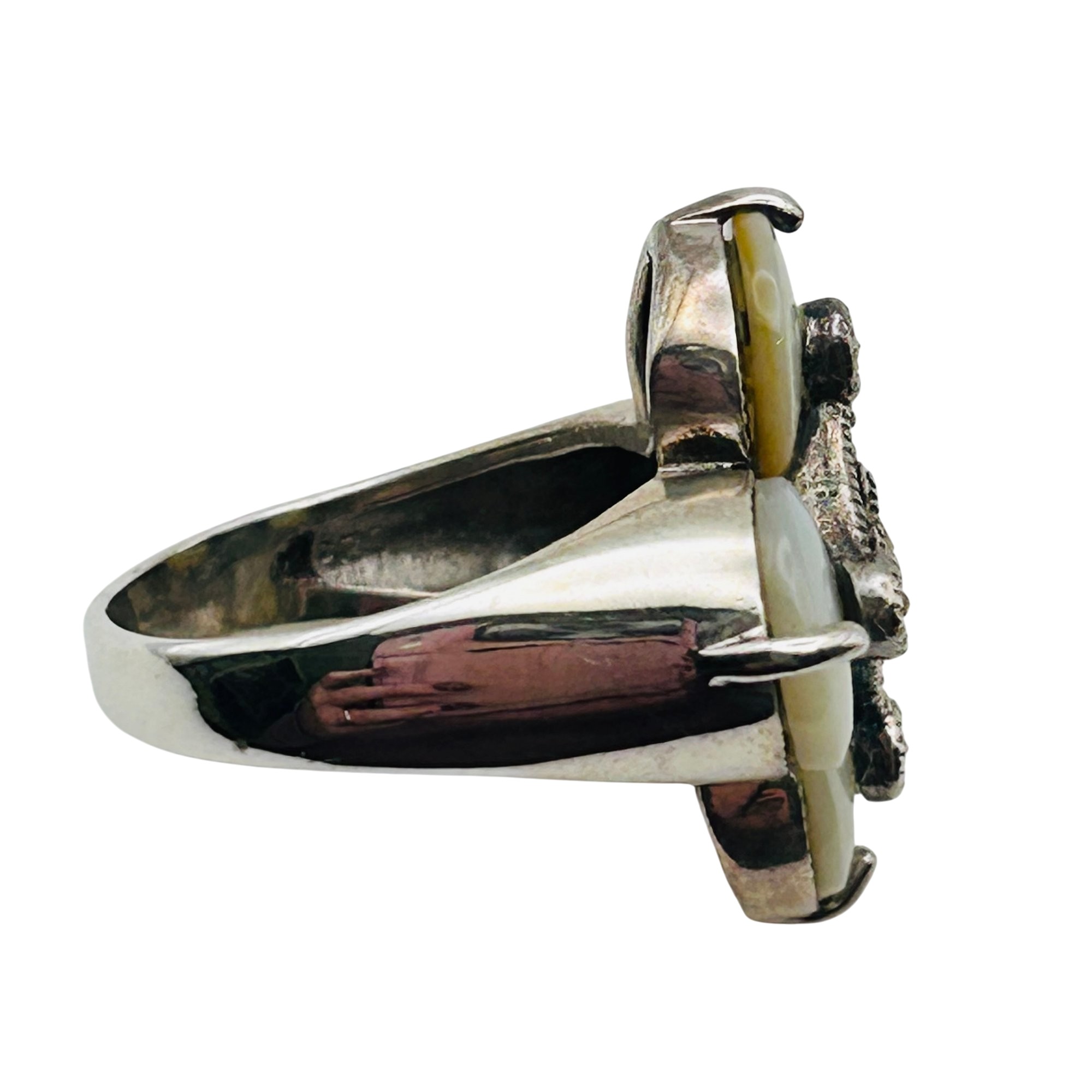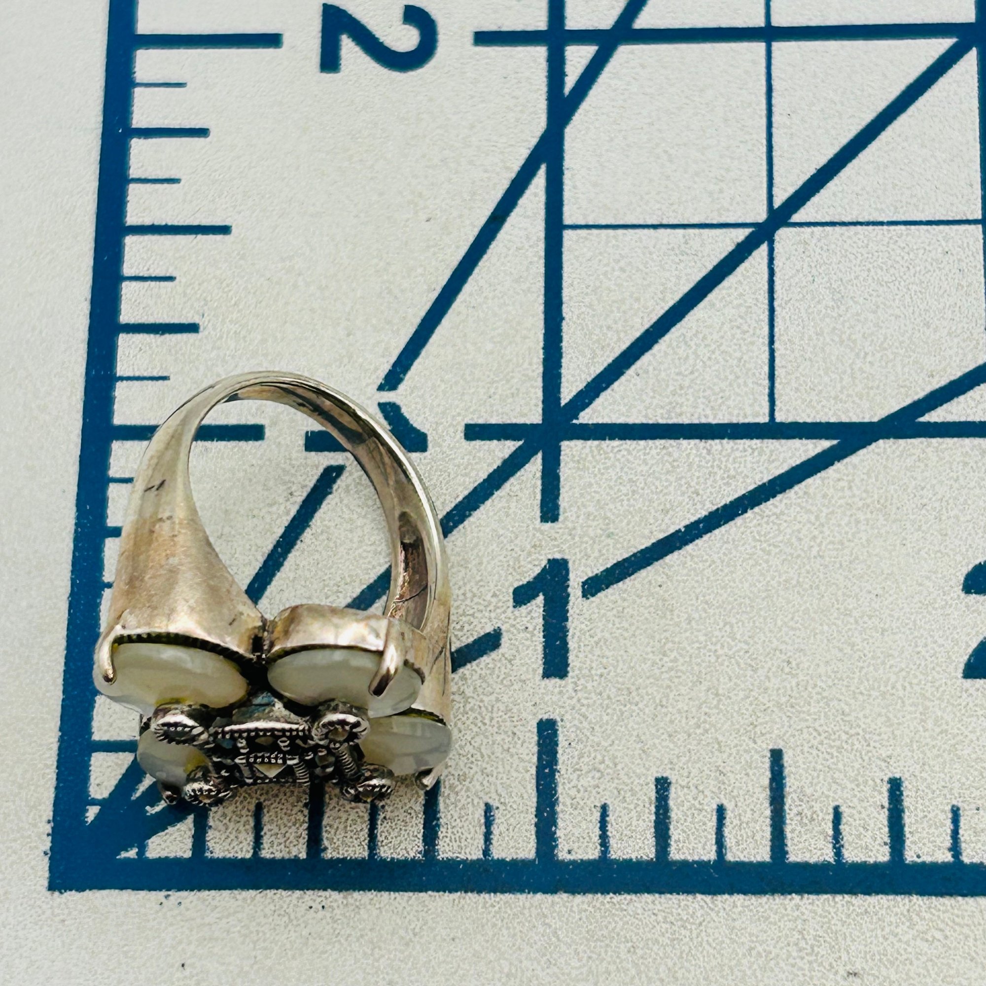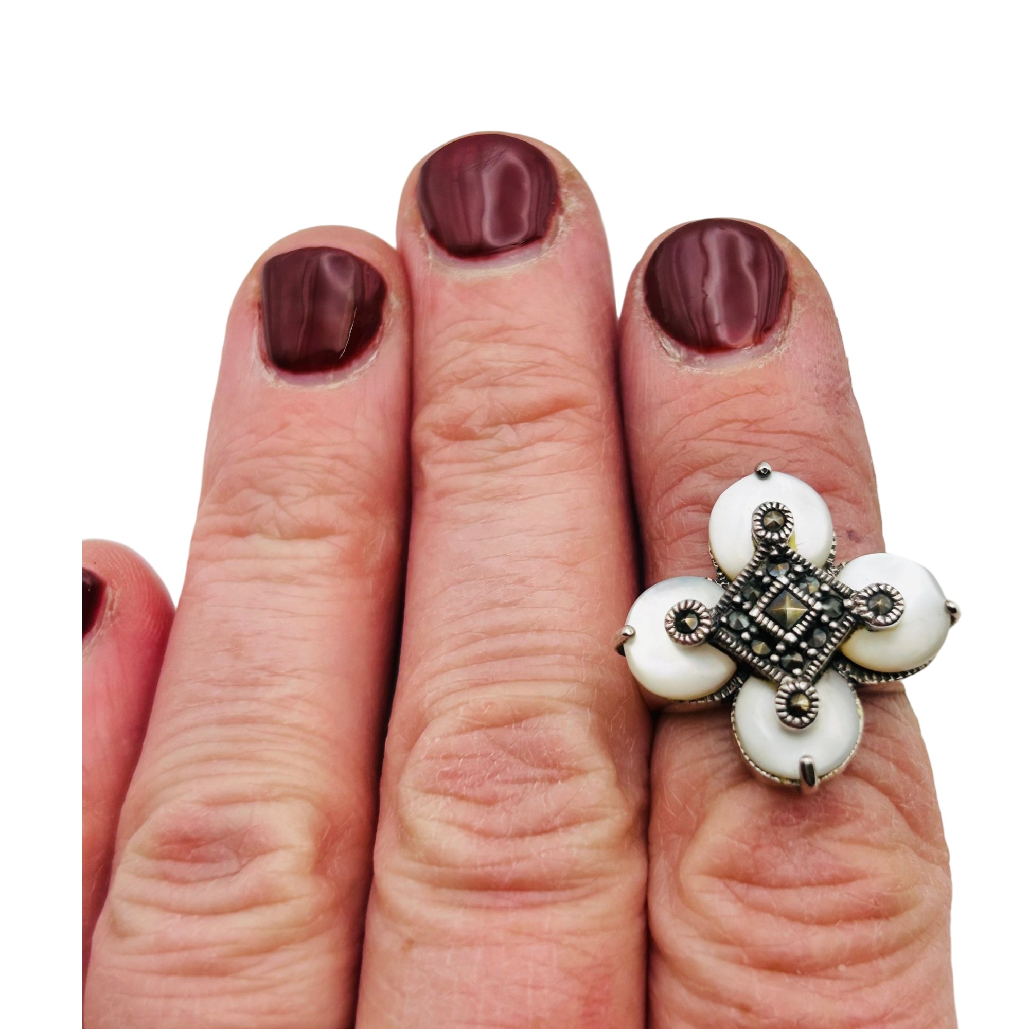 Mother of Pearl and MARCASITE Sterling Cross shaped ring size 6 6.69 g