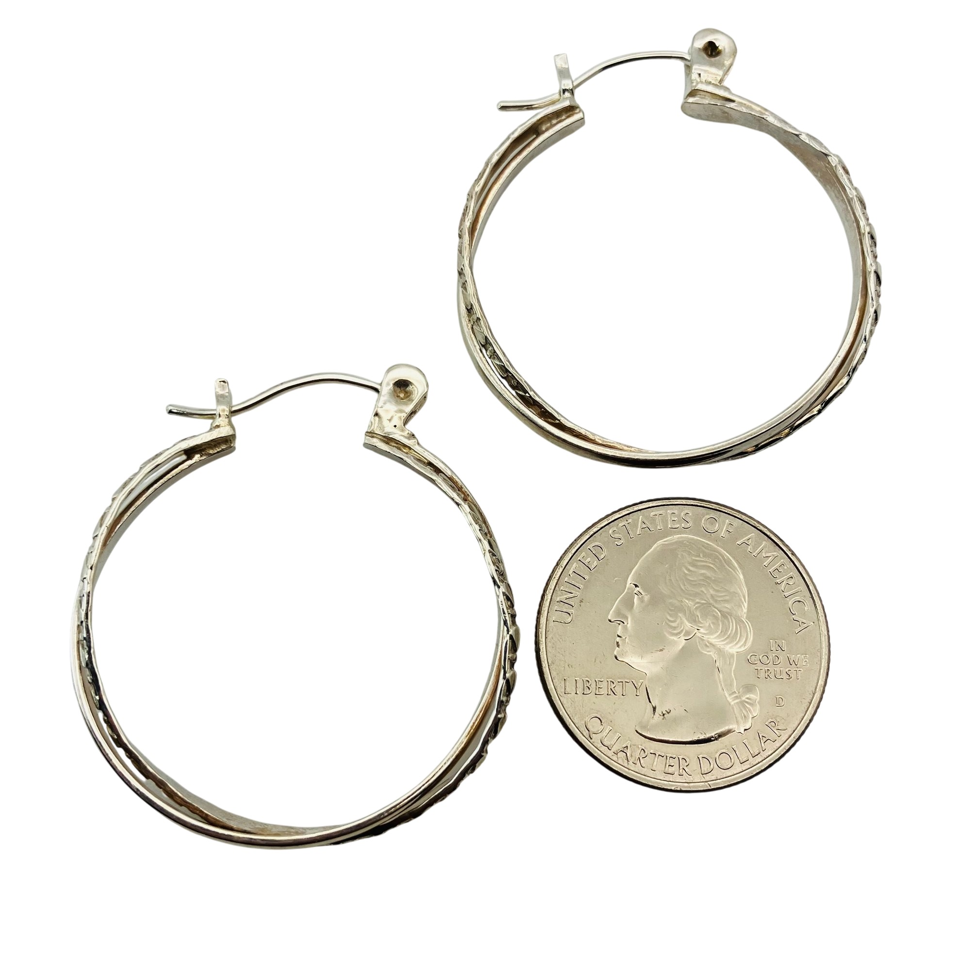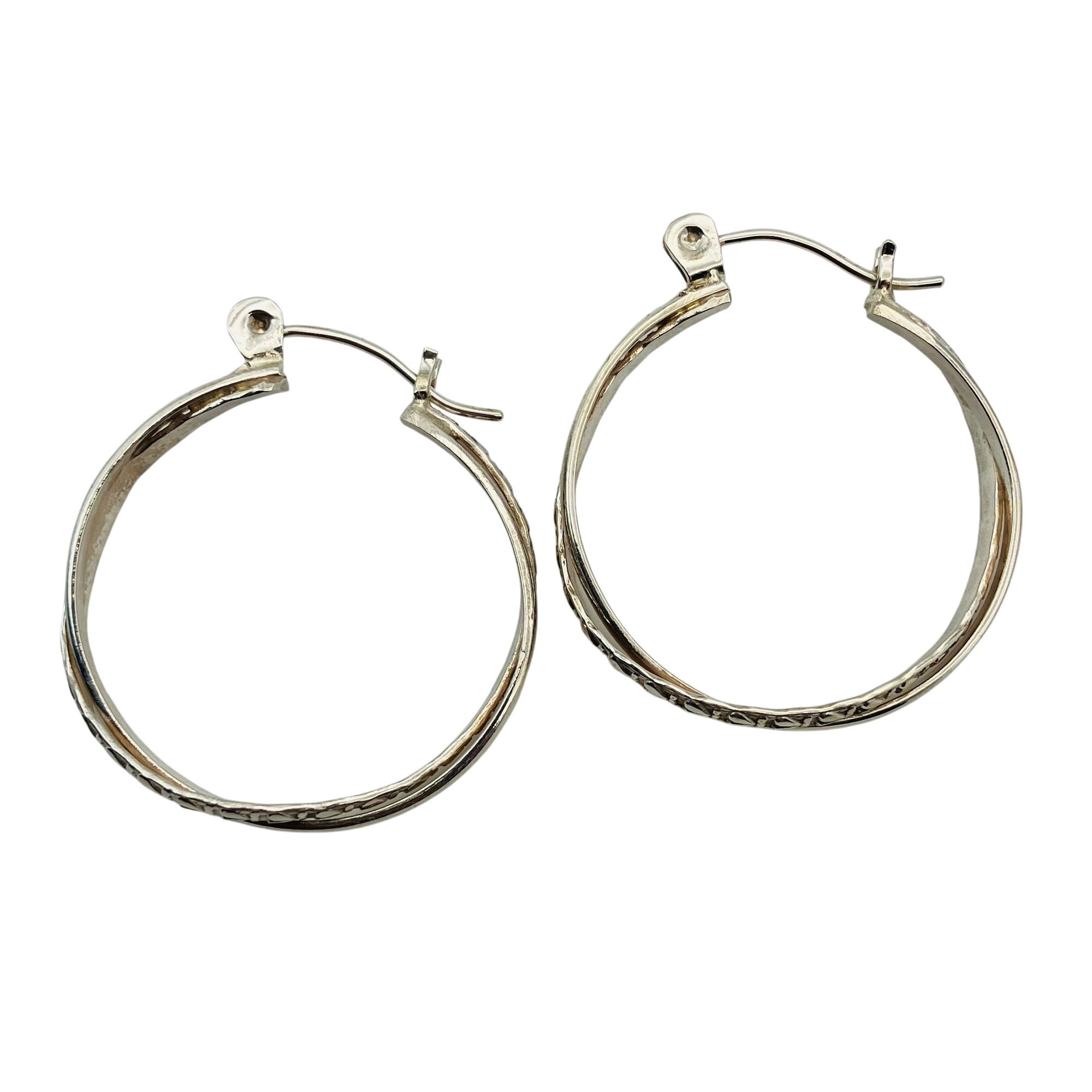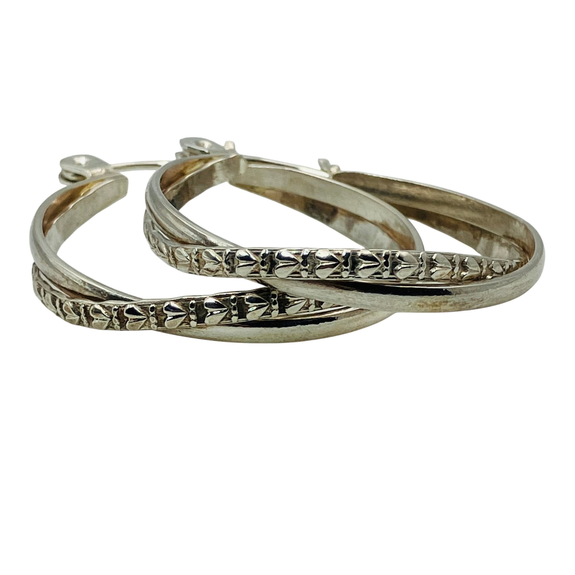 Sterling Heart Pattern Twist Hoop Earrings, 9.44 G