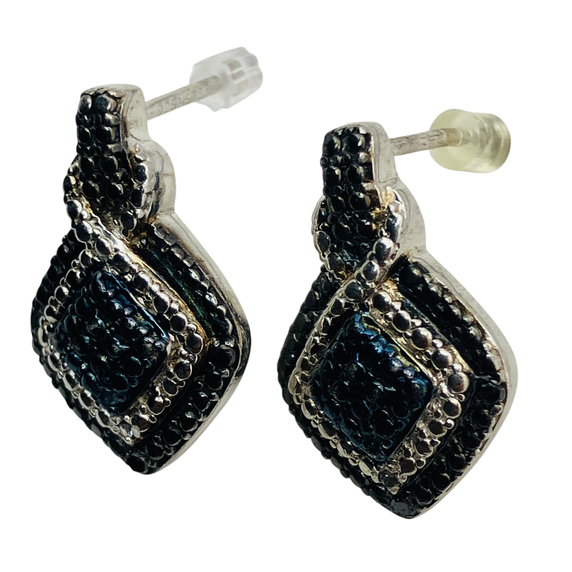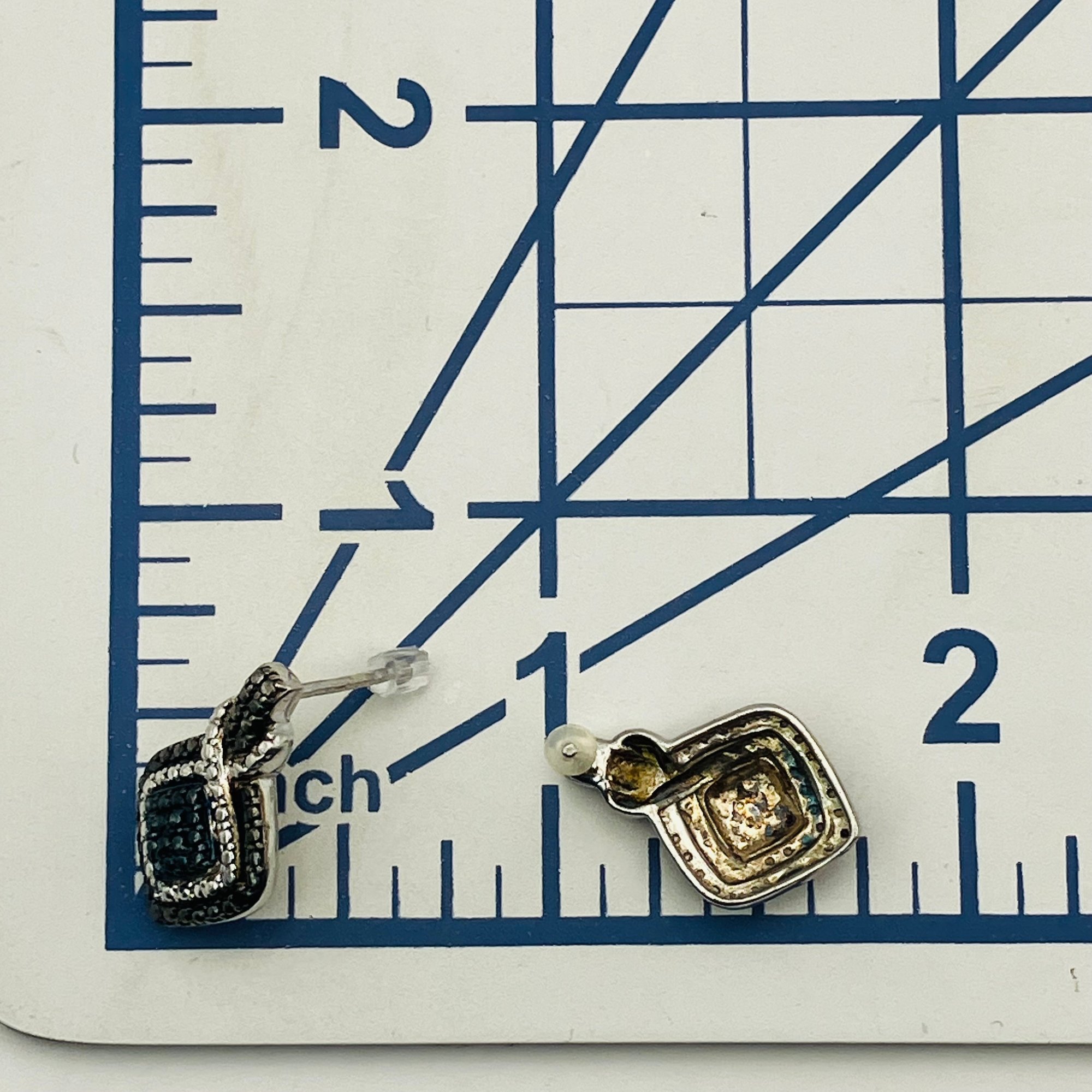 SAPPHIRE accent sterling diamond shaped stud earrings 3.20 g