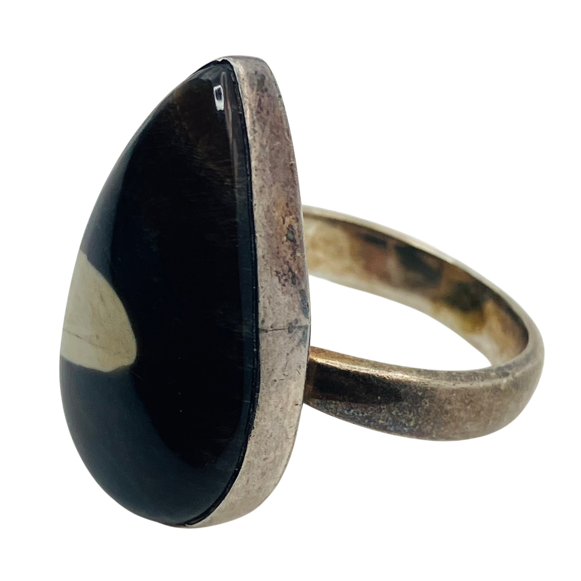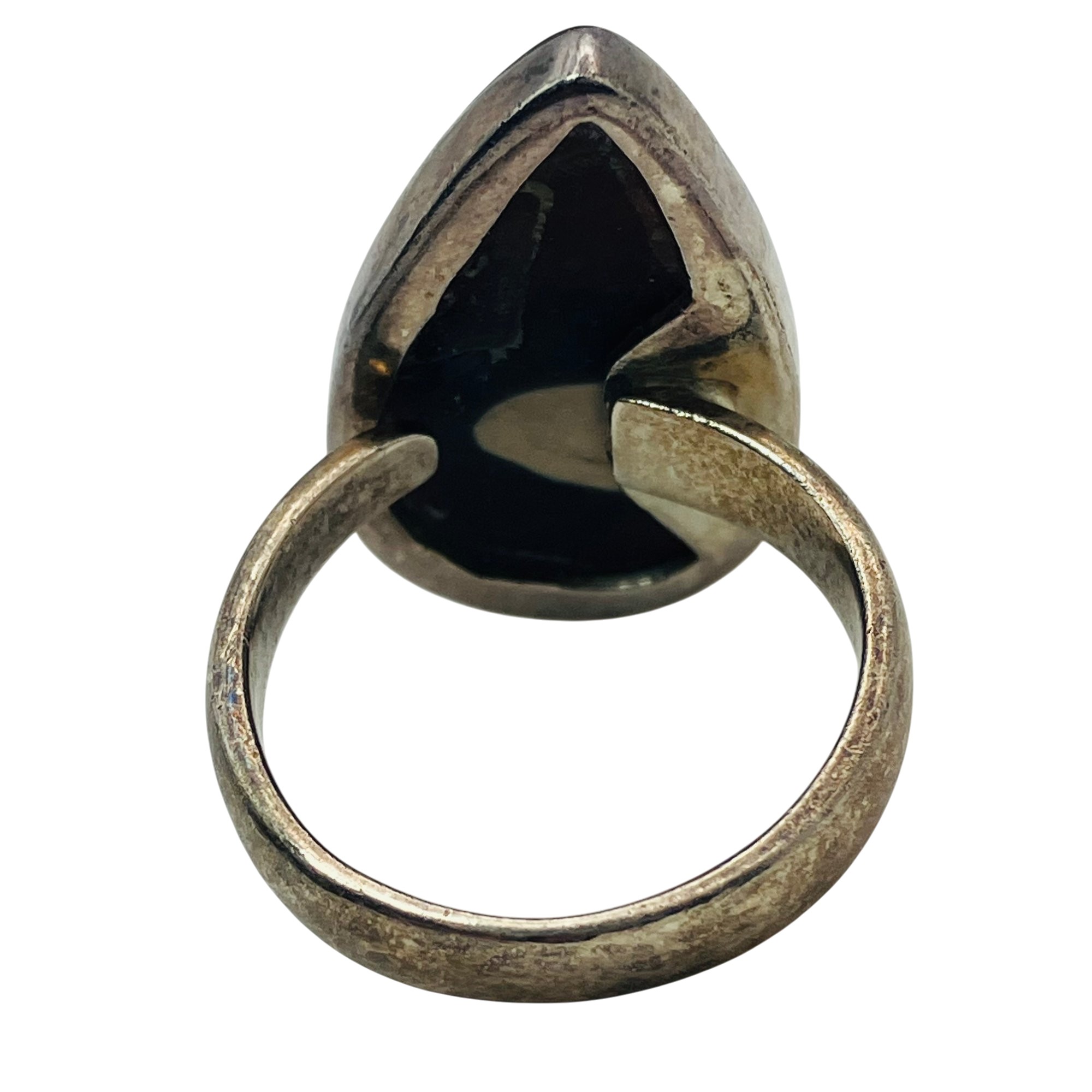 Sterling Southwest Black stone disconnected teardrop ring size 6 5.35 g