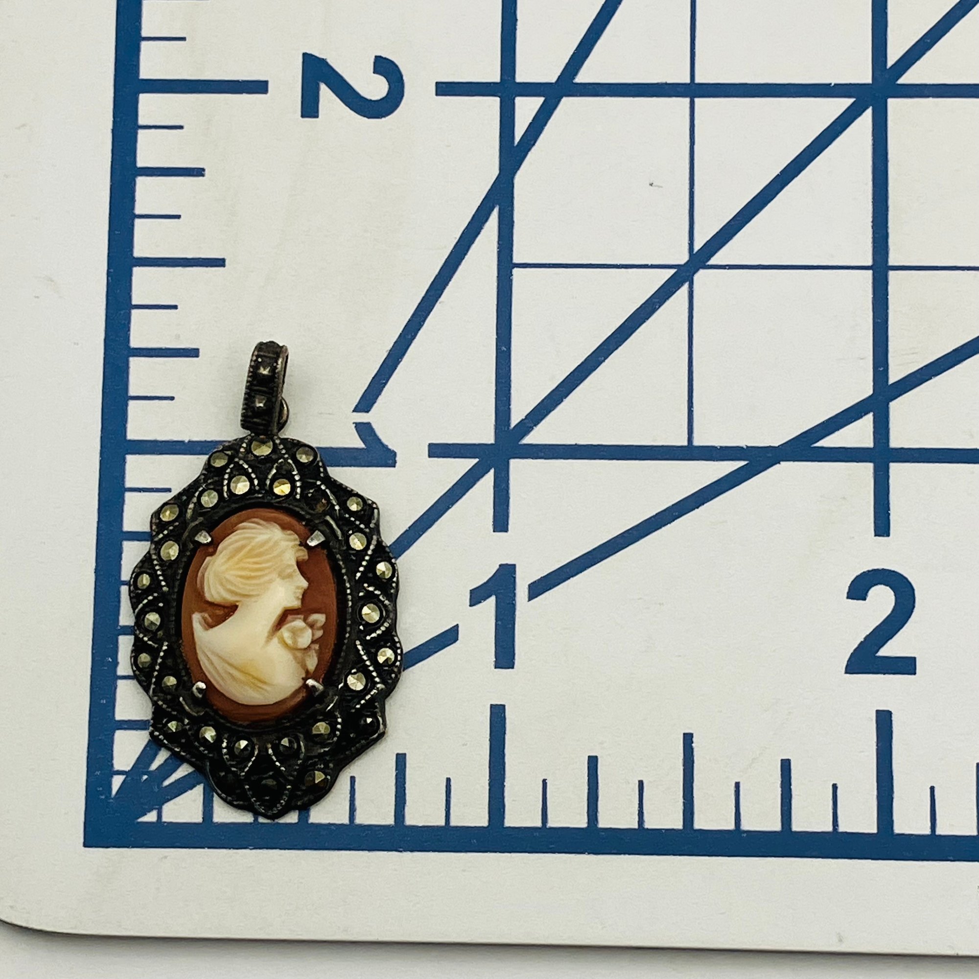 MARCASITE Sterling Cameo Pendant, 4.11 G