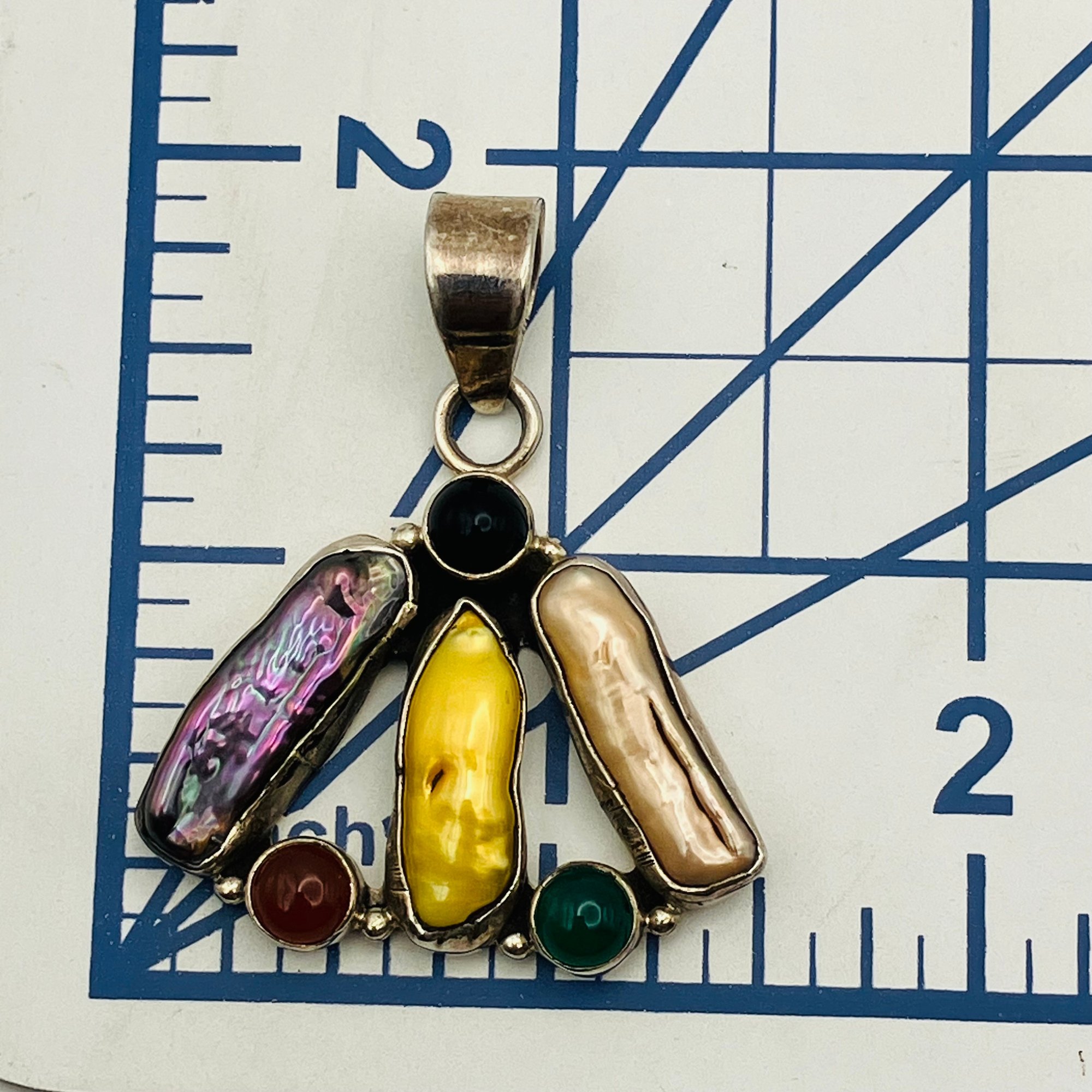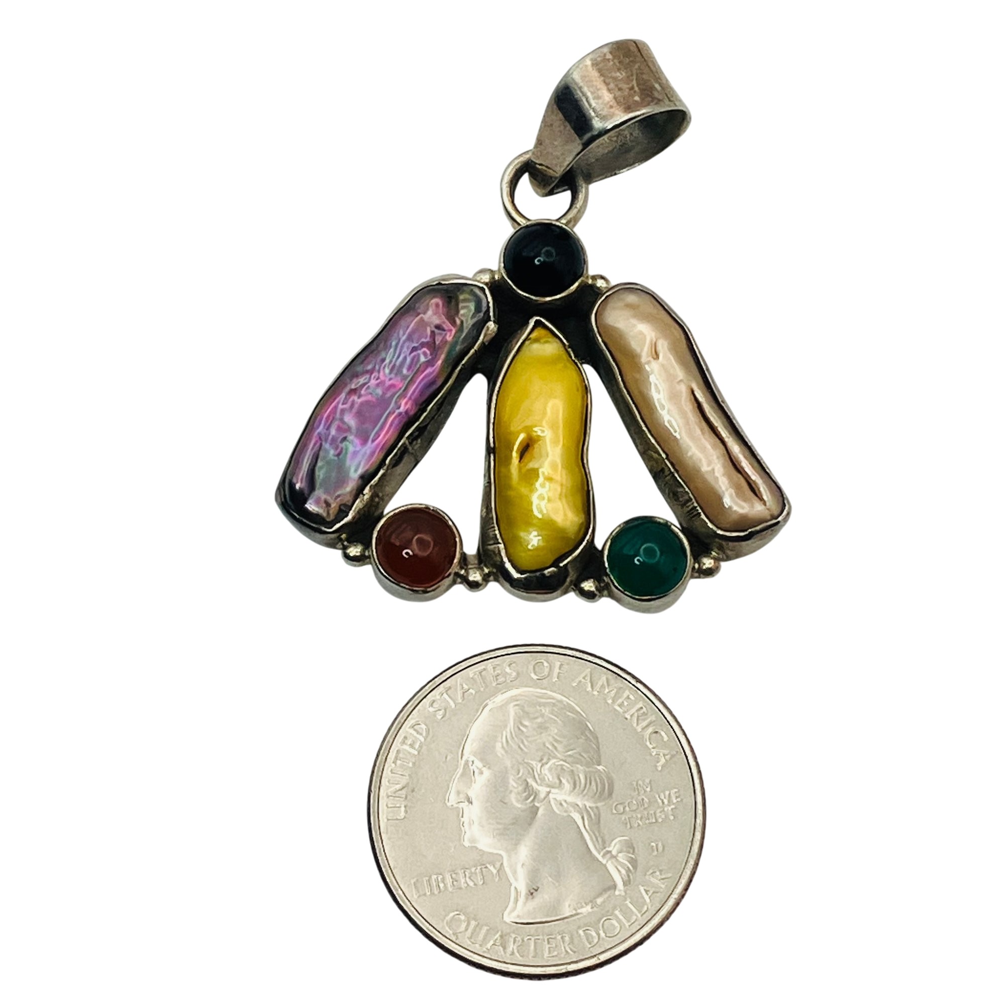 ABALONE CORAL Sterling multistone pendant 10.57 g