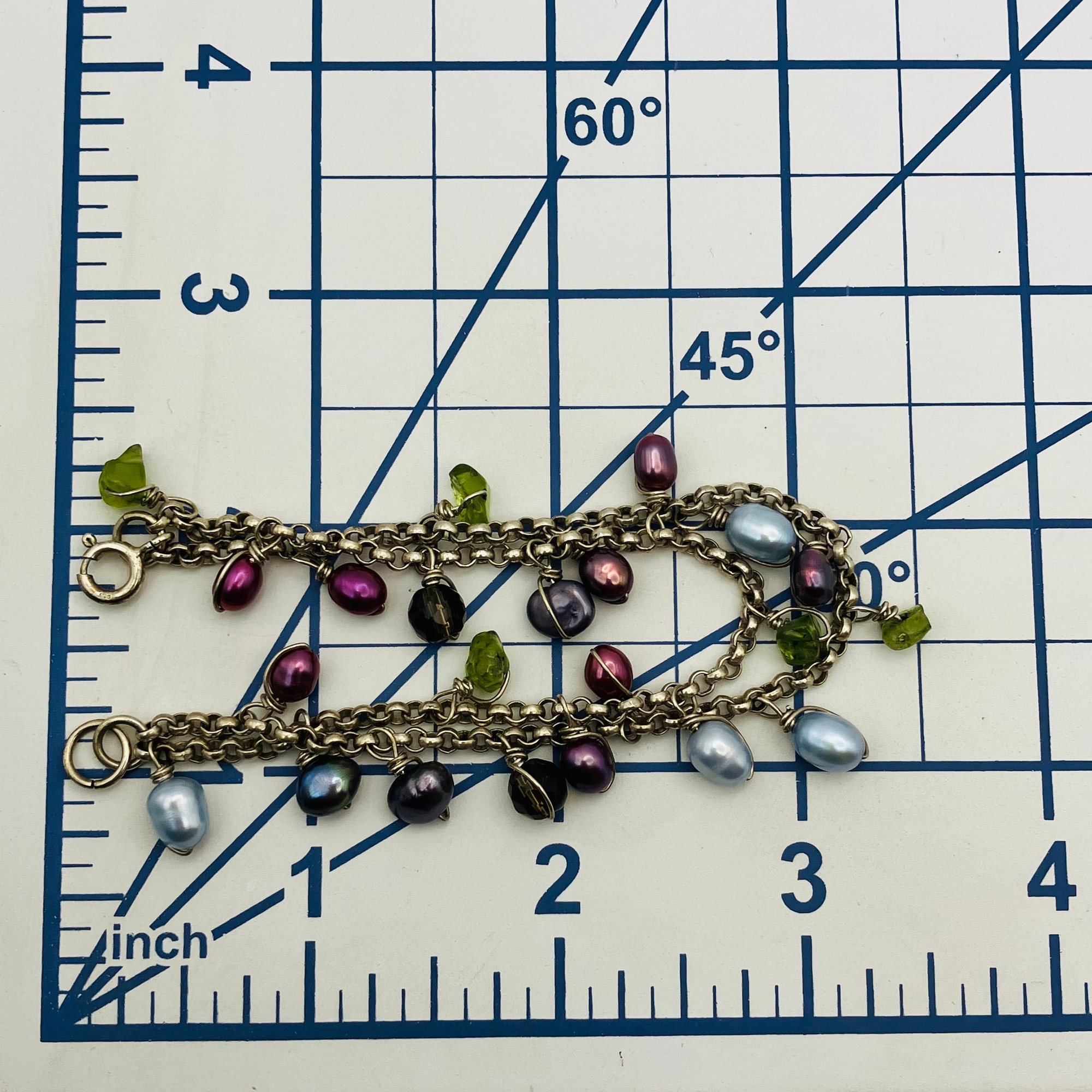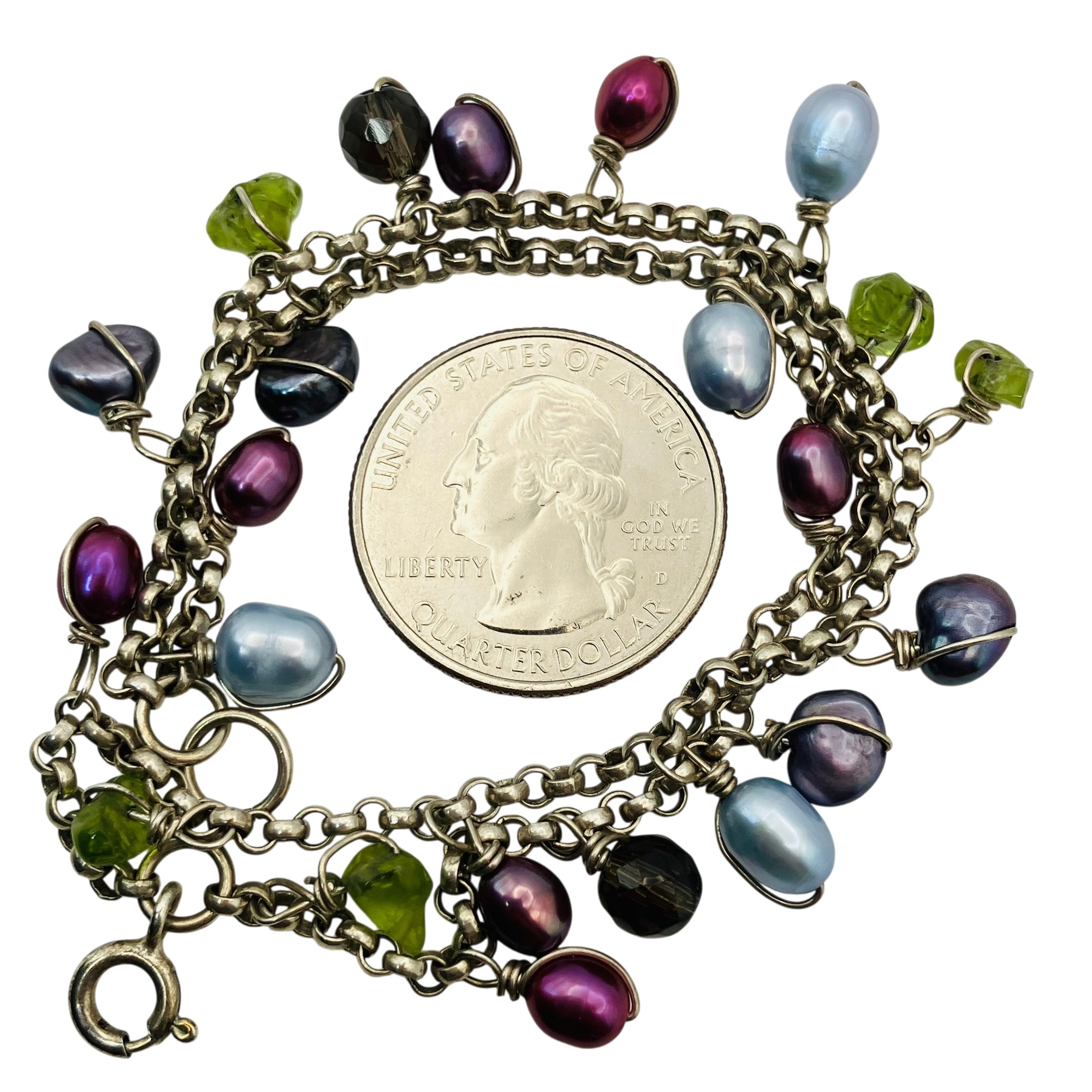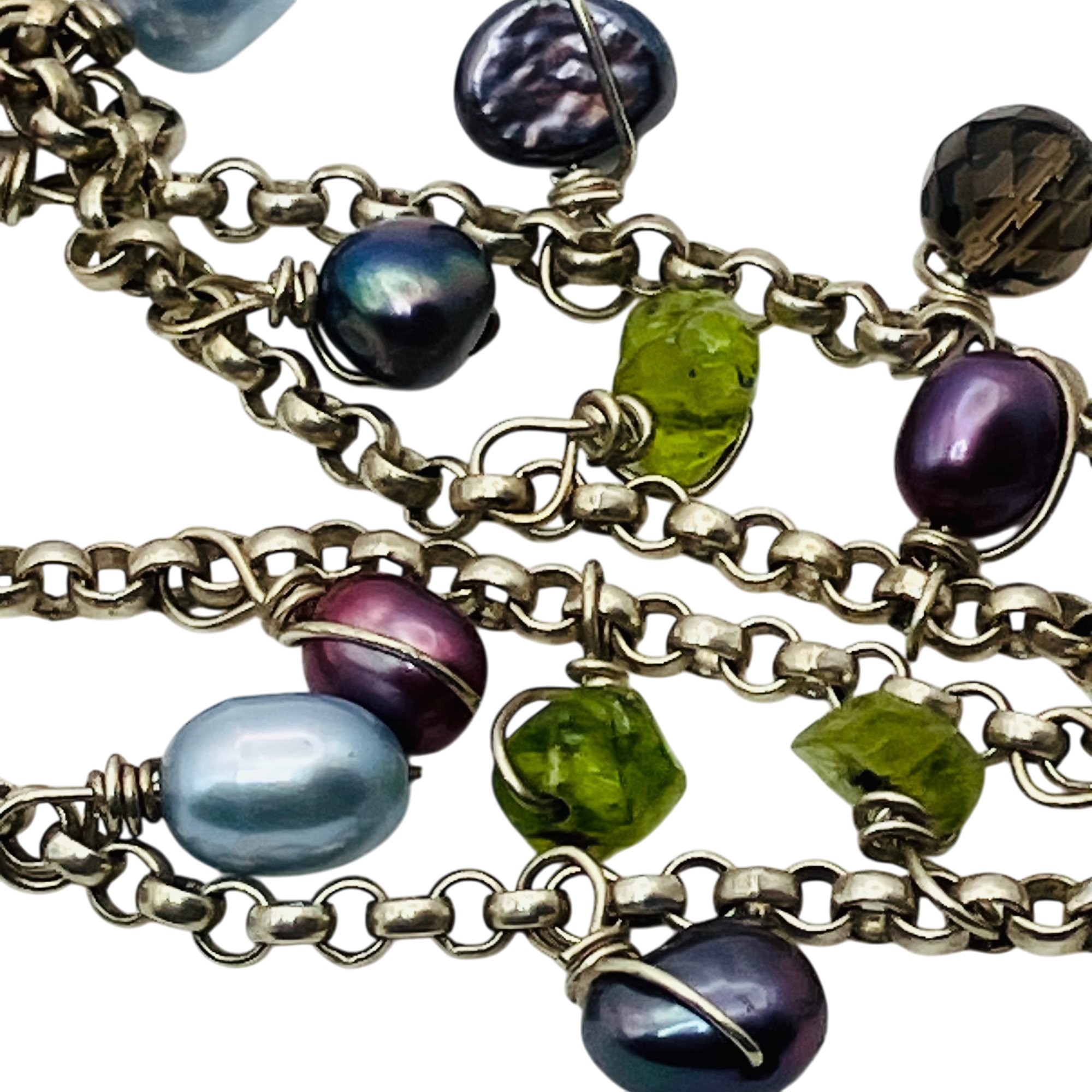 PEARL PERIDOT Sterling layered double Rolo chain bracelet 13.89 g