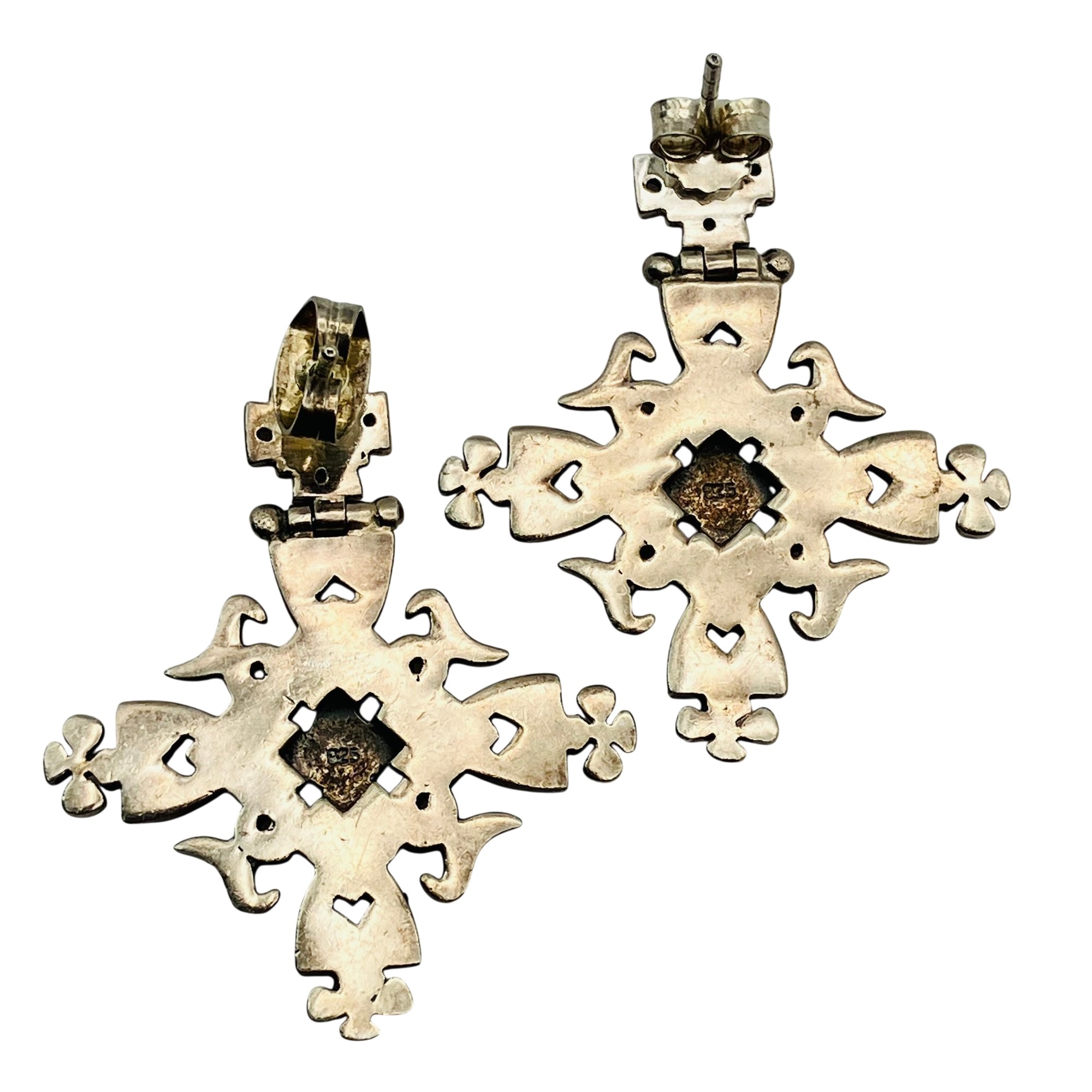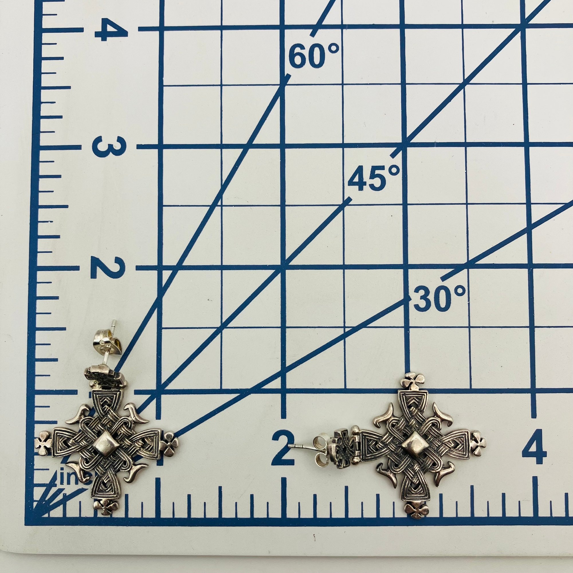 Sterling Ethiopian Coptic Cross hinged earrings 9.80 g