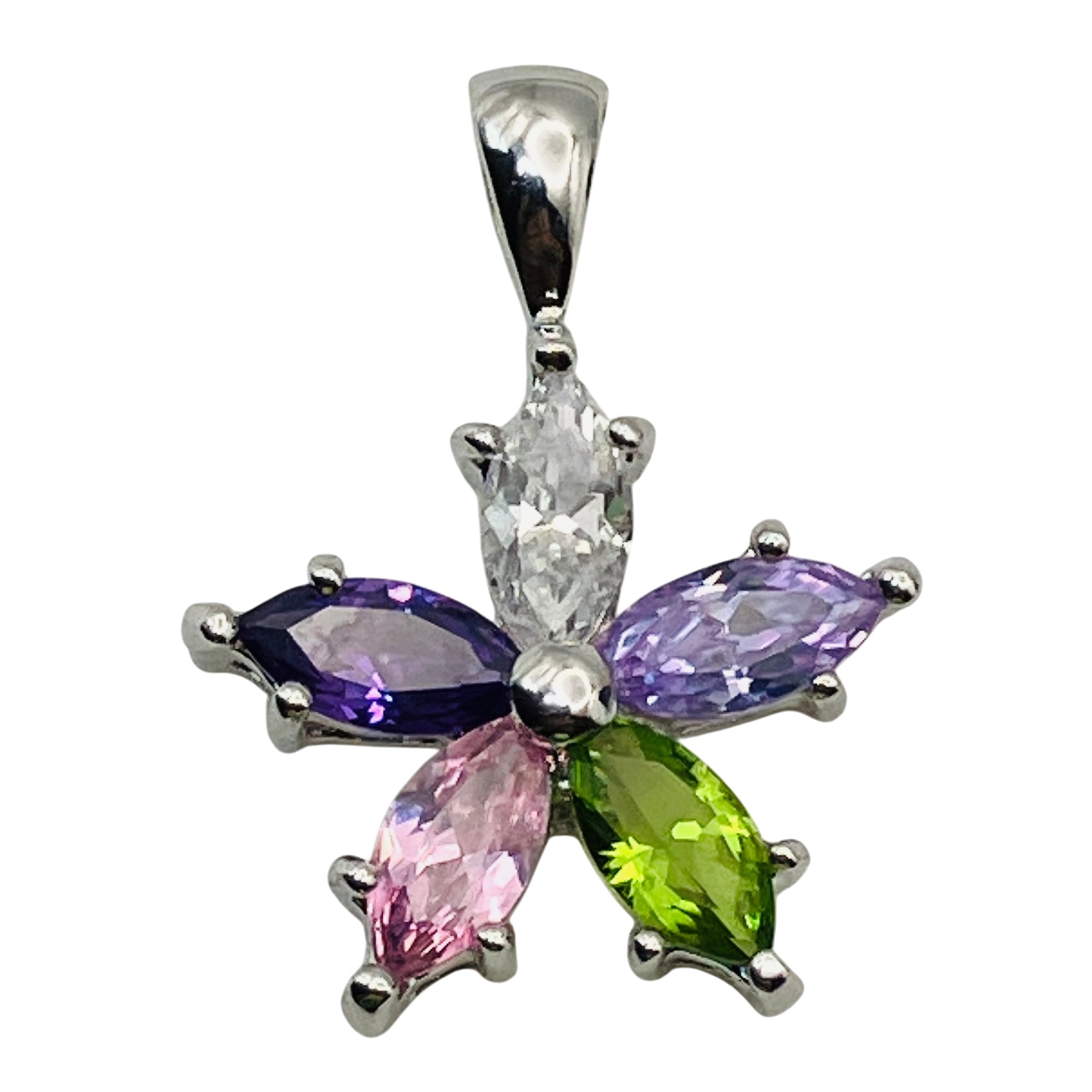 Sterling flower stone cluster pendant 1.52 g