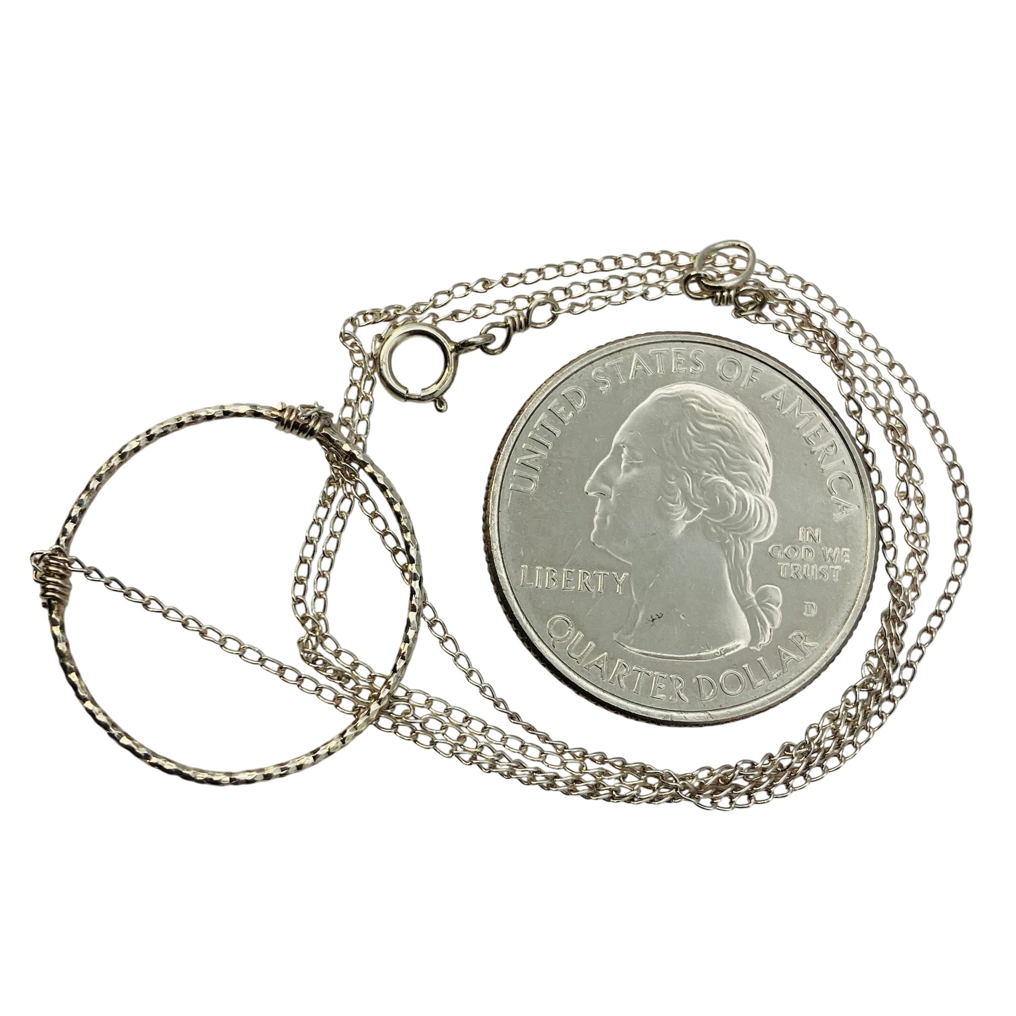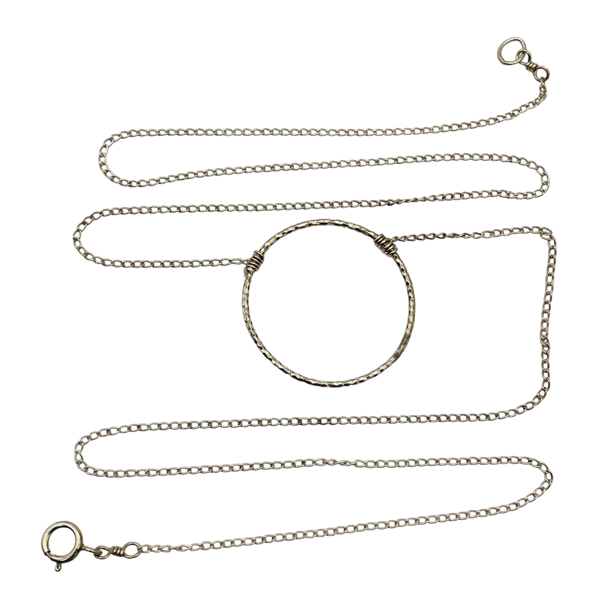 Sterling textured hoop pendant curb chain necklace 1.17 g
