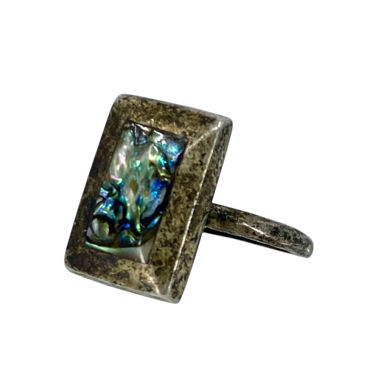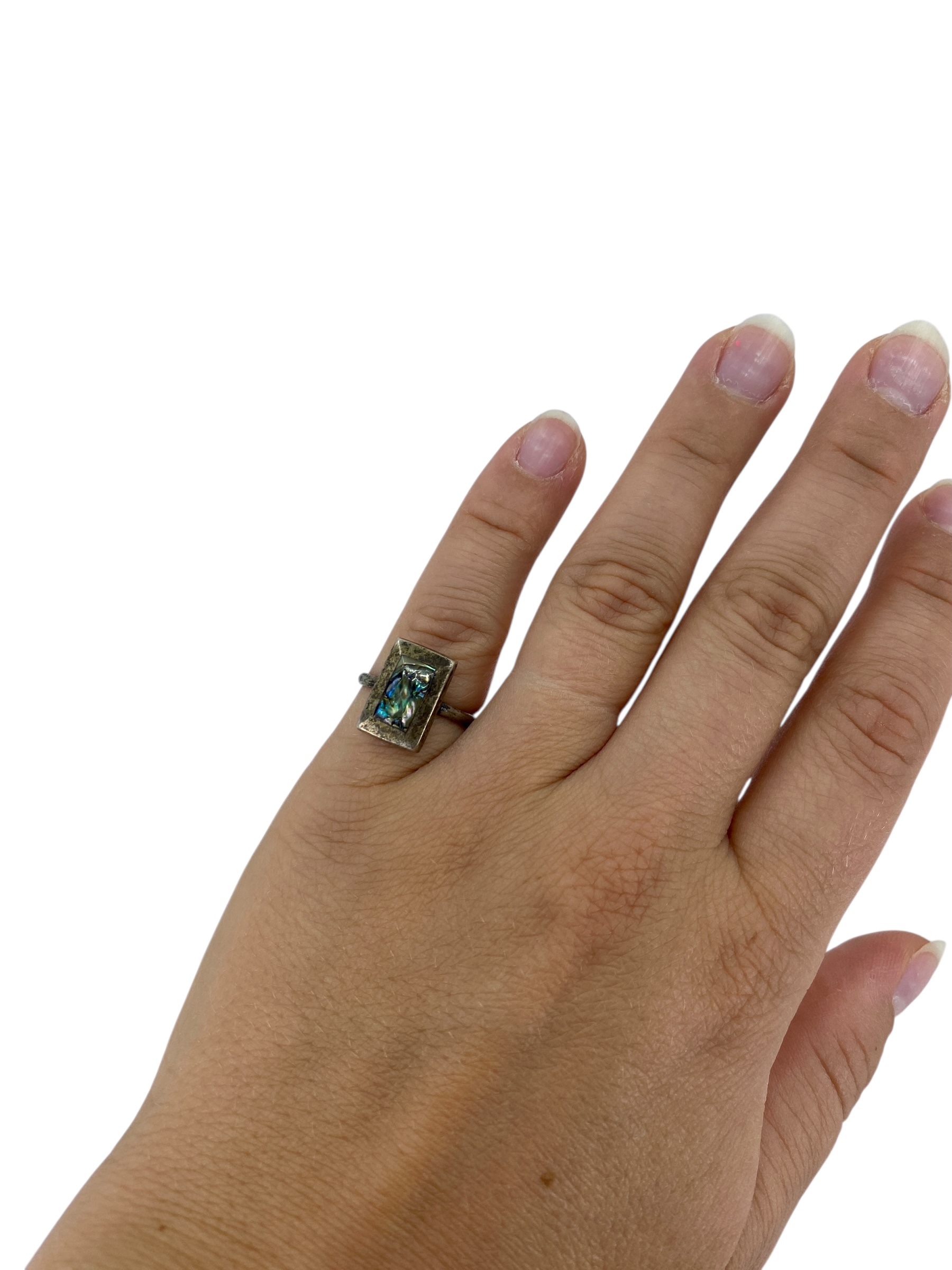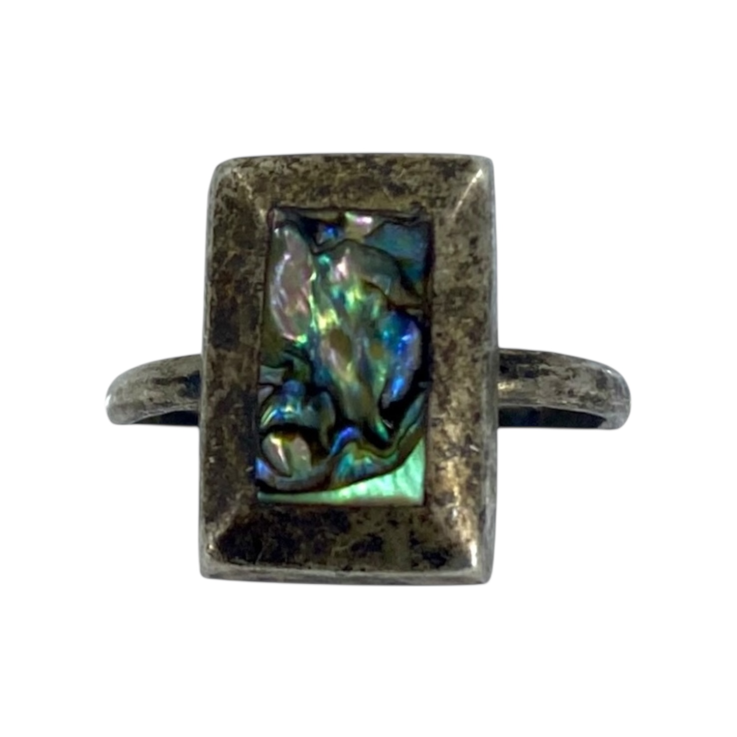 Vintage Mexican Abalone Shell Sterling Silver Ring. Size 6.5, 2.26g, engraved “Sterling Mexico”