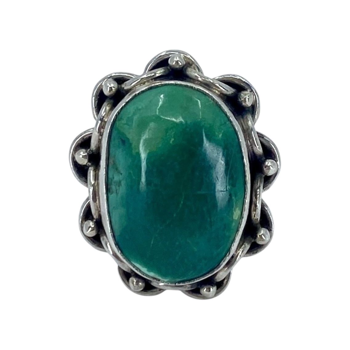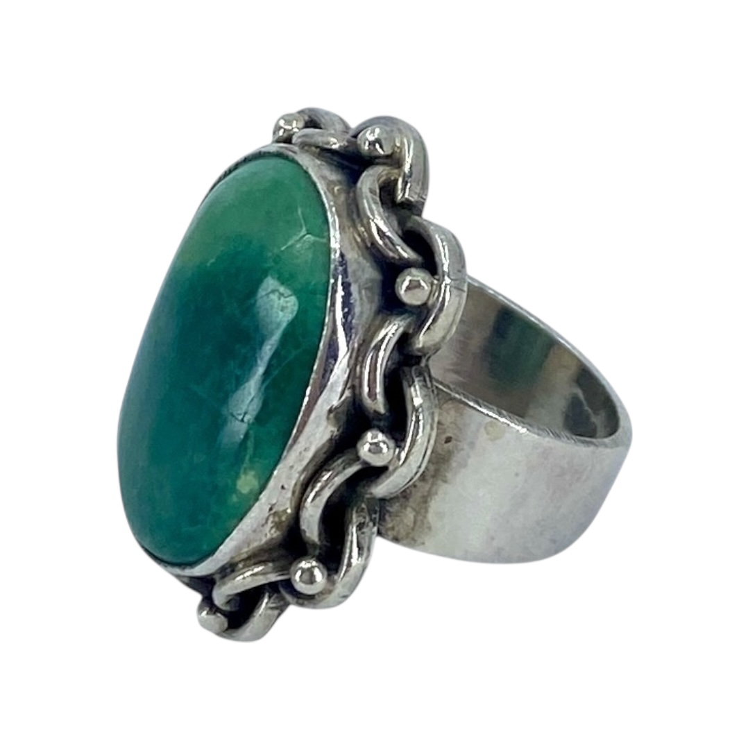 Extravagant Green Turquoise Oval Sterling Silver Ring, sz 6.5, 11.13g, “925”