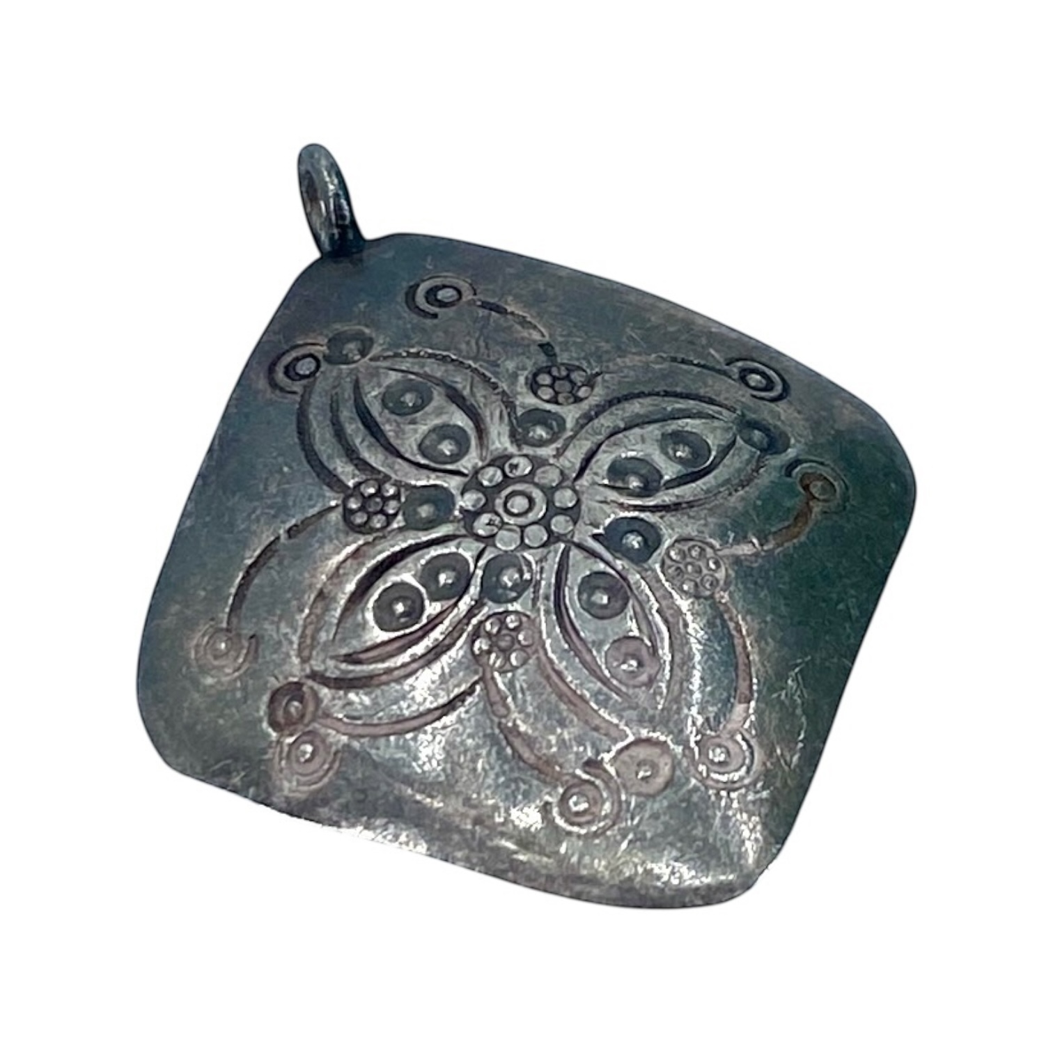 Engraved Sterling Silver Floral Pendant, 2.68g