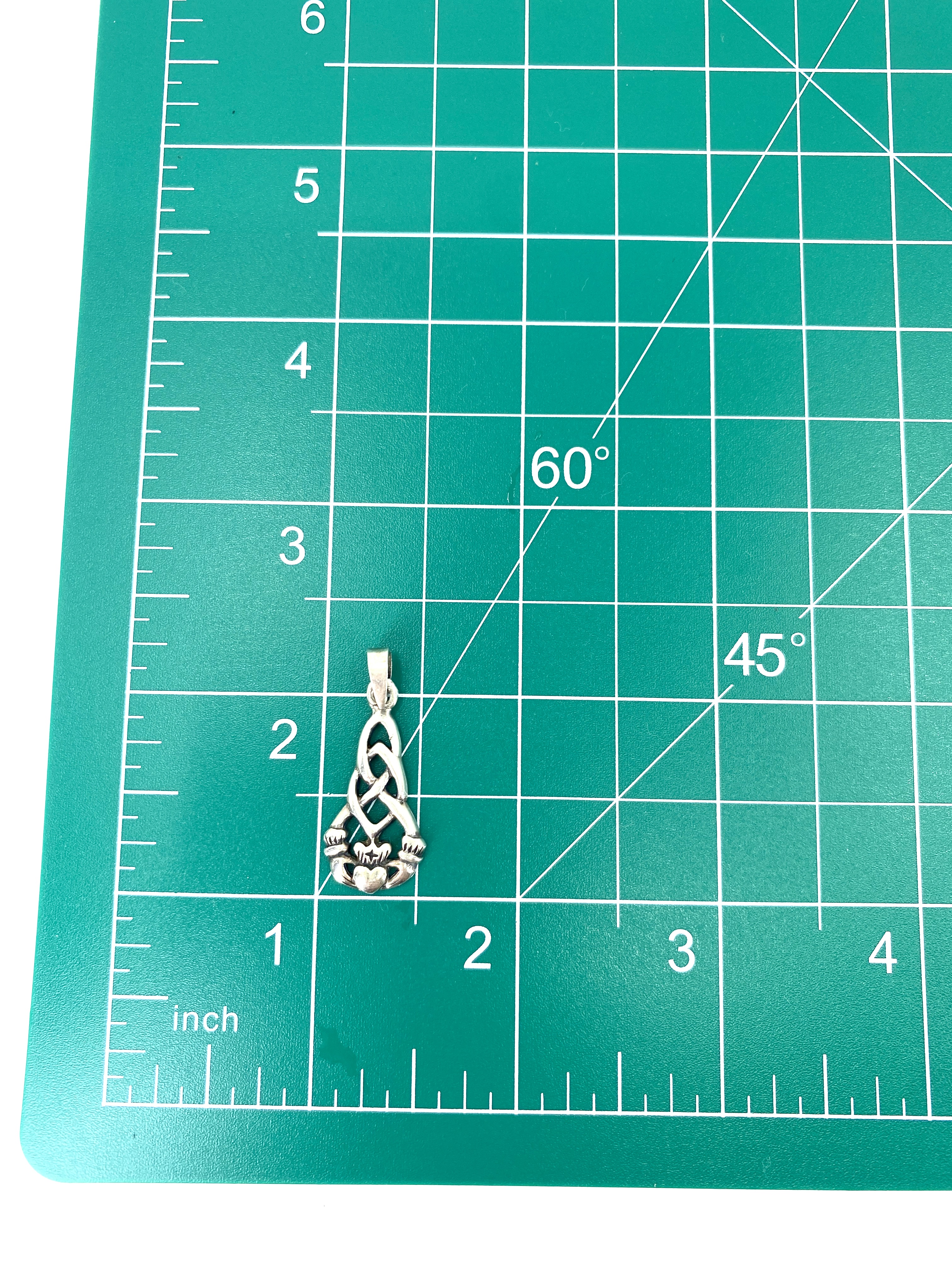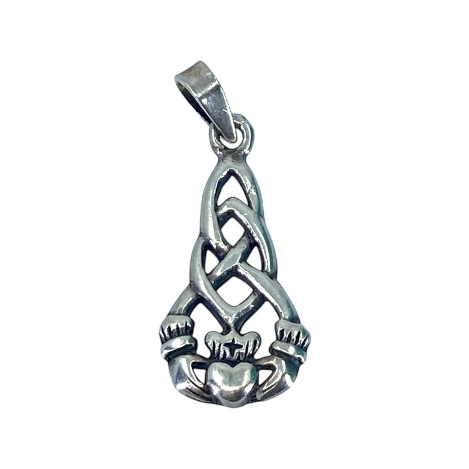 Braided Irish Sterling Silver Claddagh Pendant, 2.01g