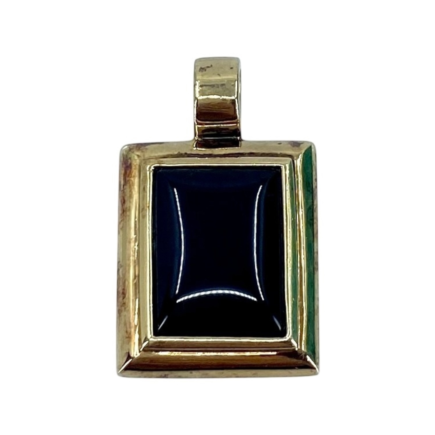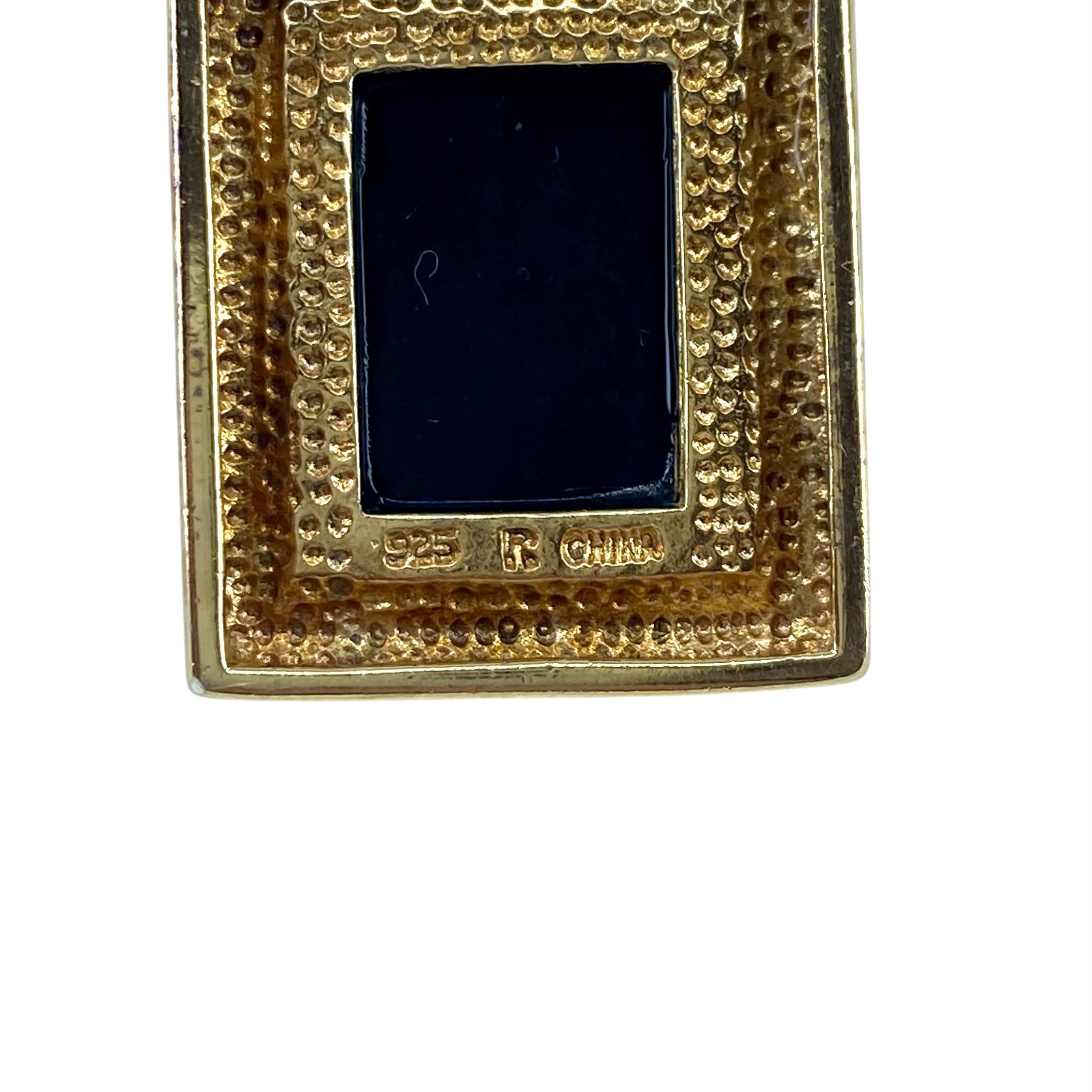 Vintage Gold Over Sterling Silver Rectangular Black Tourmaline Signed Pendant, 7.06, Engraved “925 H China”