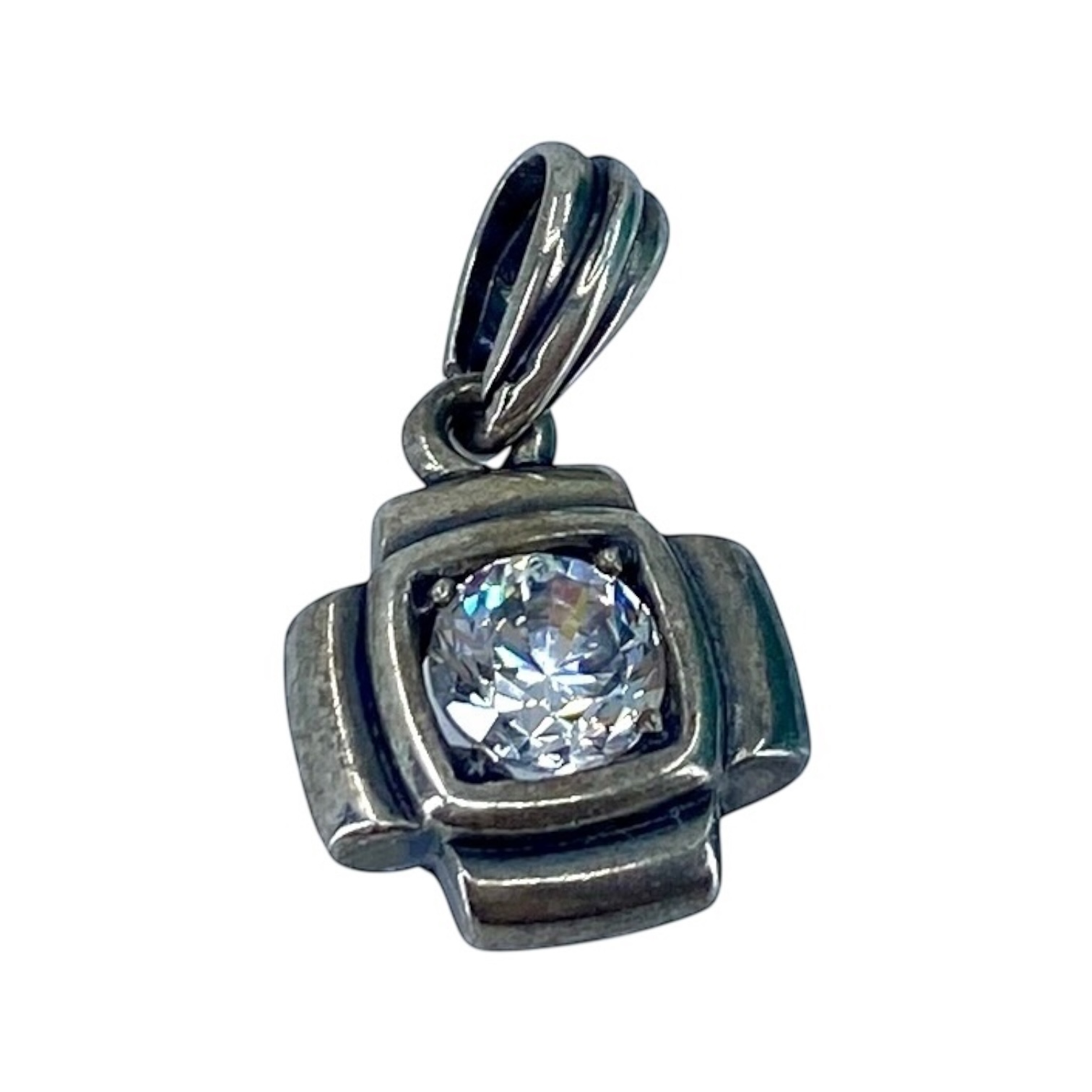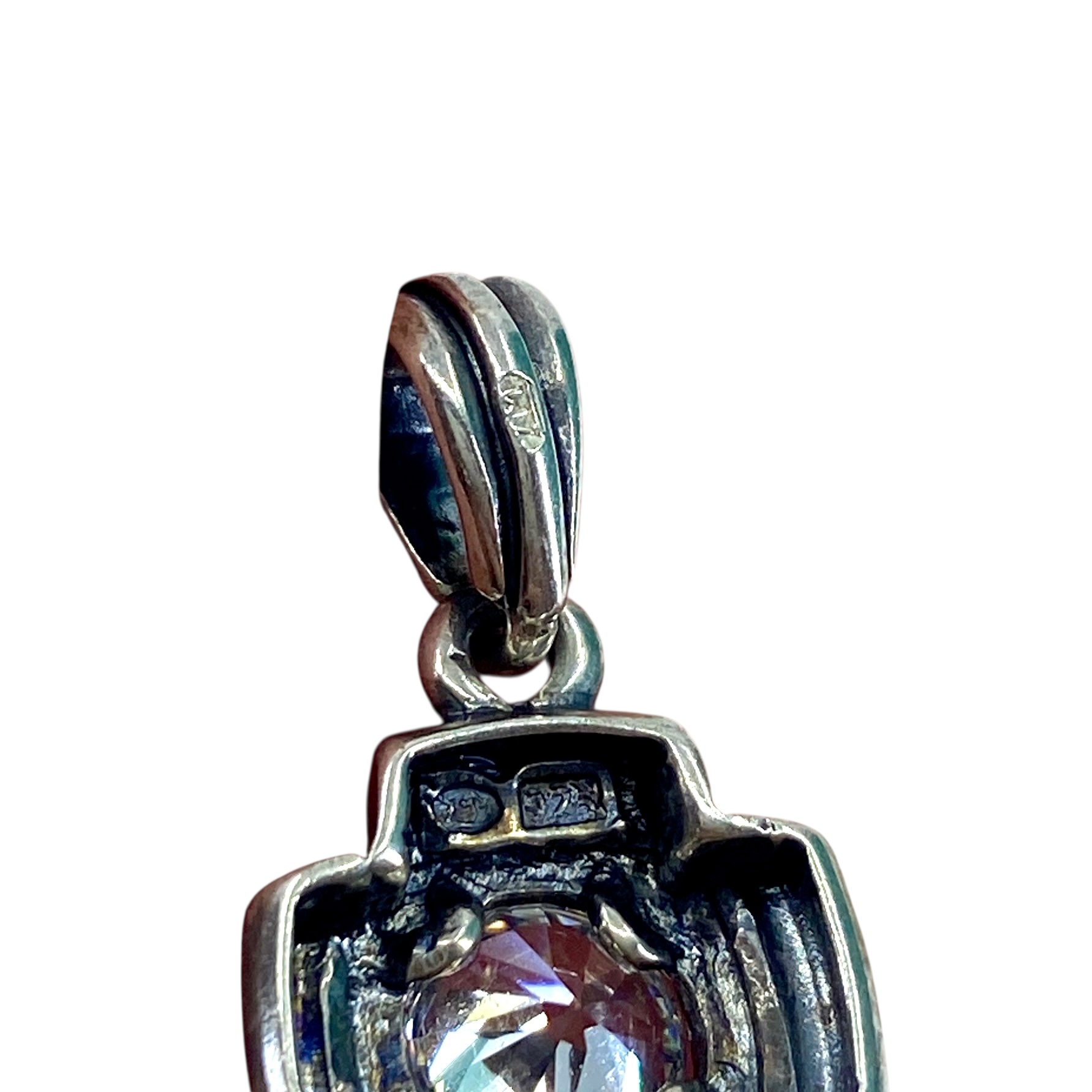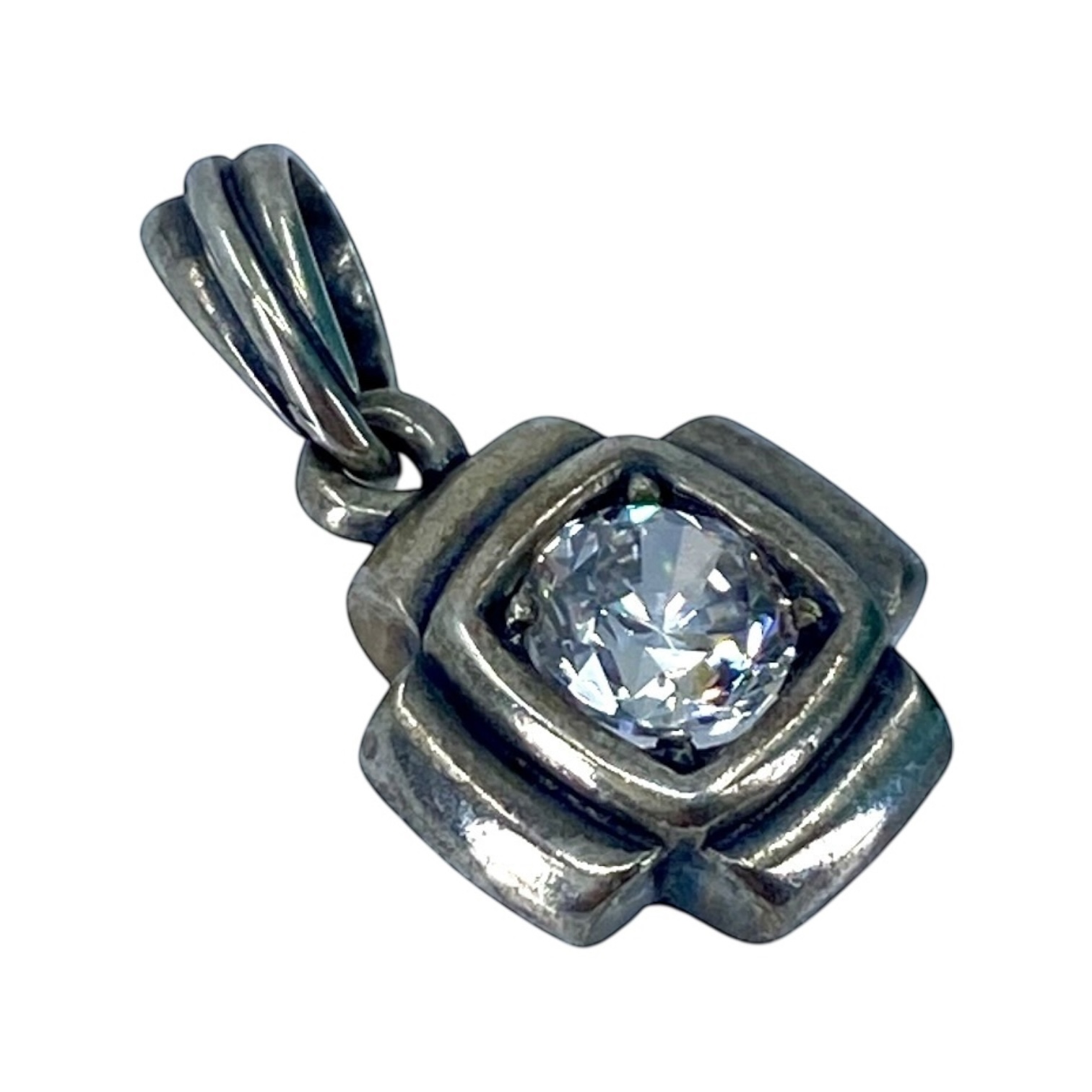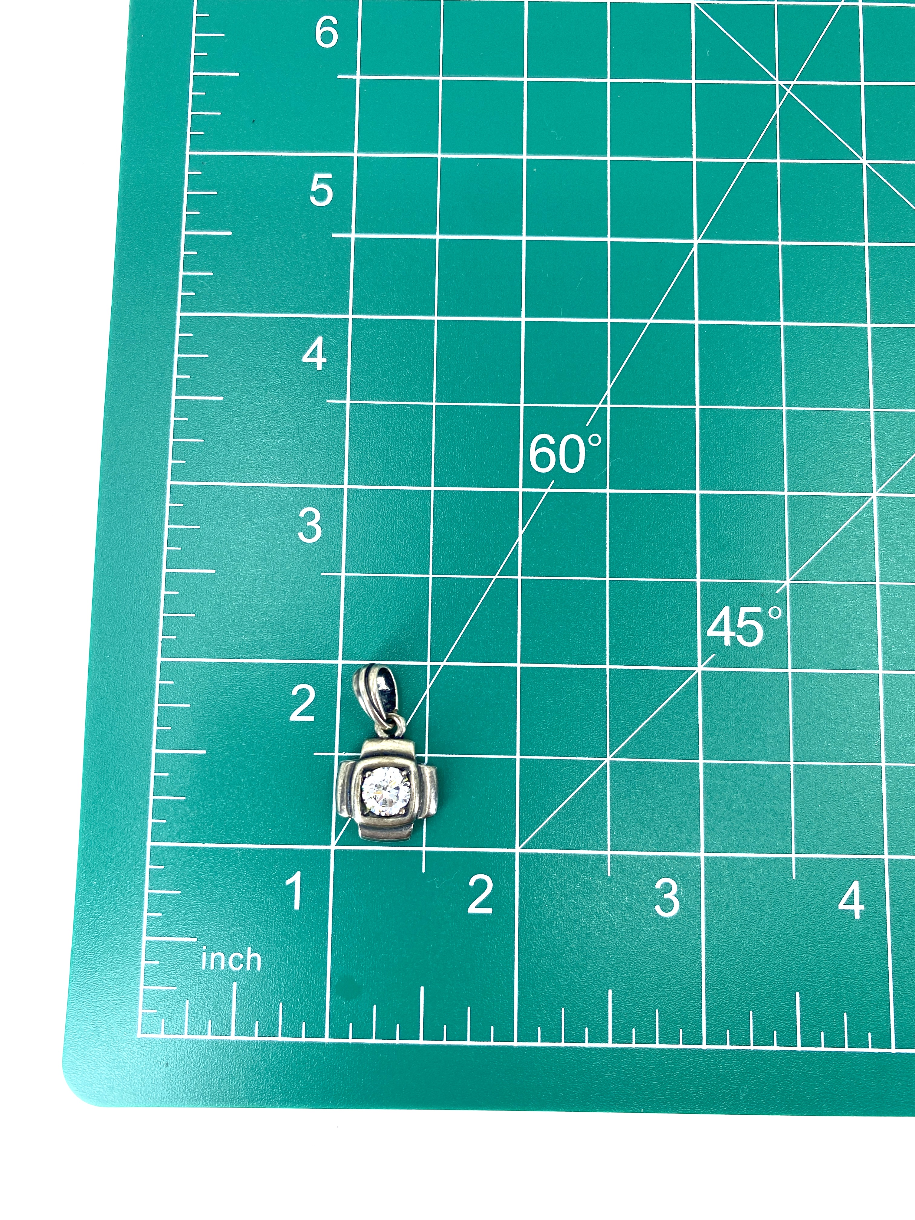 Vintage Sterling Silver Pendant W/ Solitair Rhinestone, 3.0g, Engraved “925”