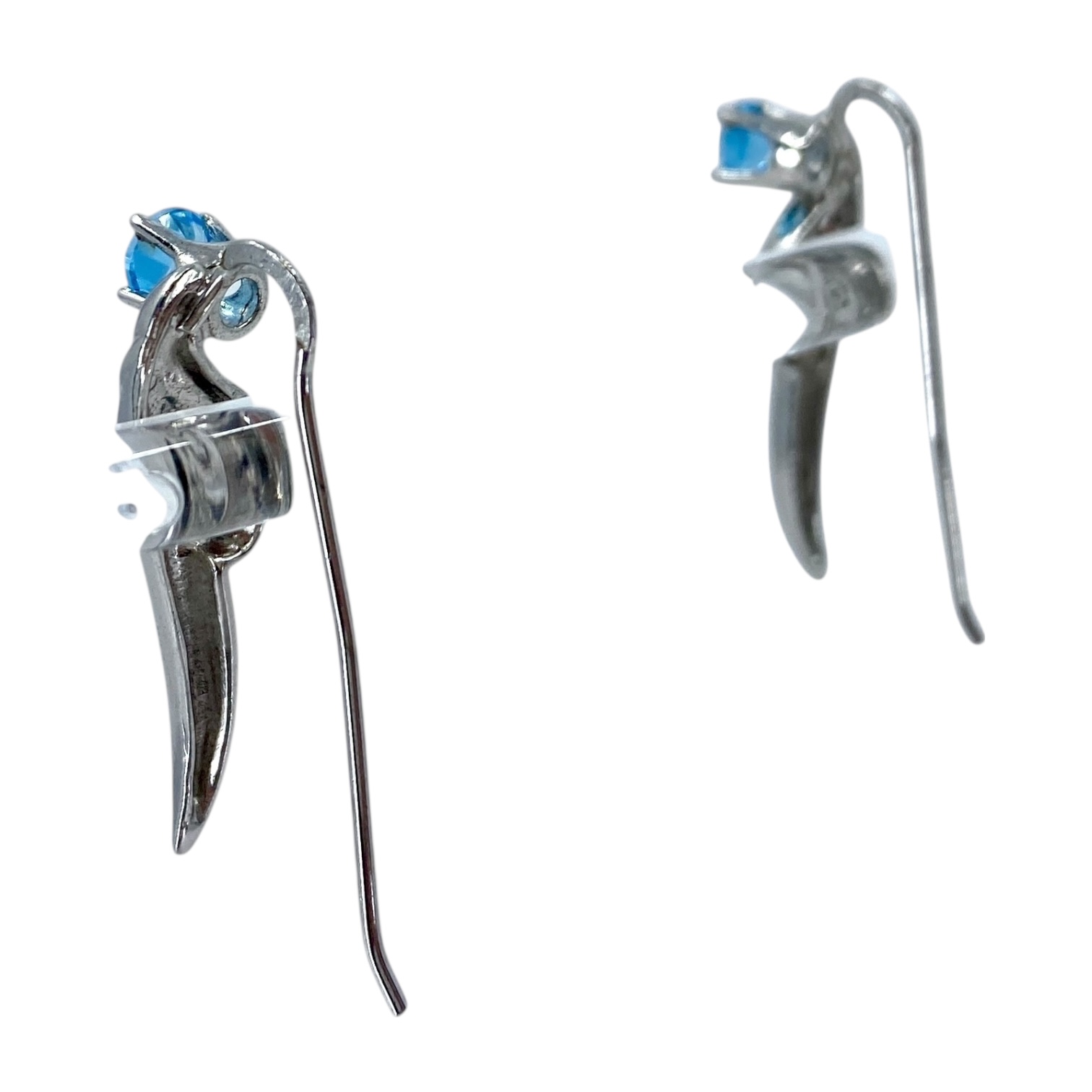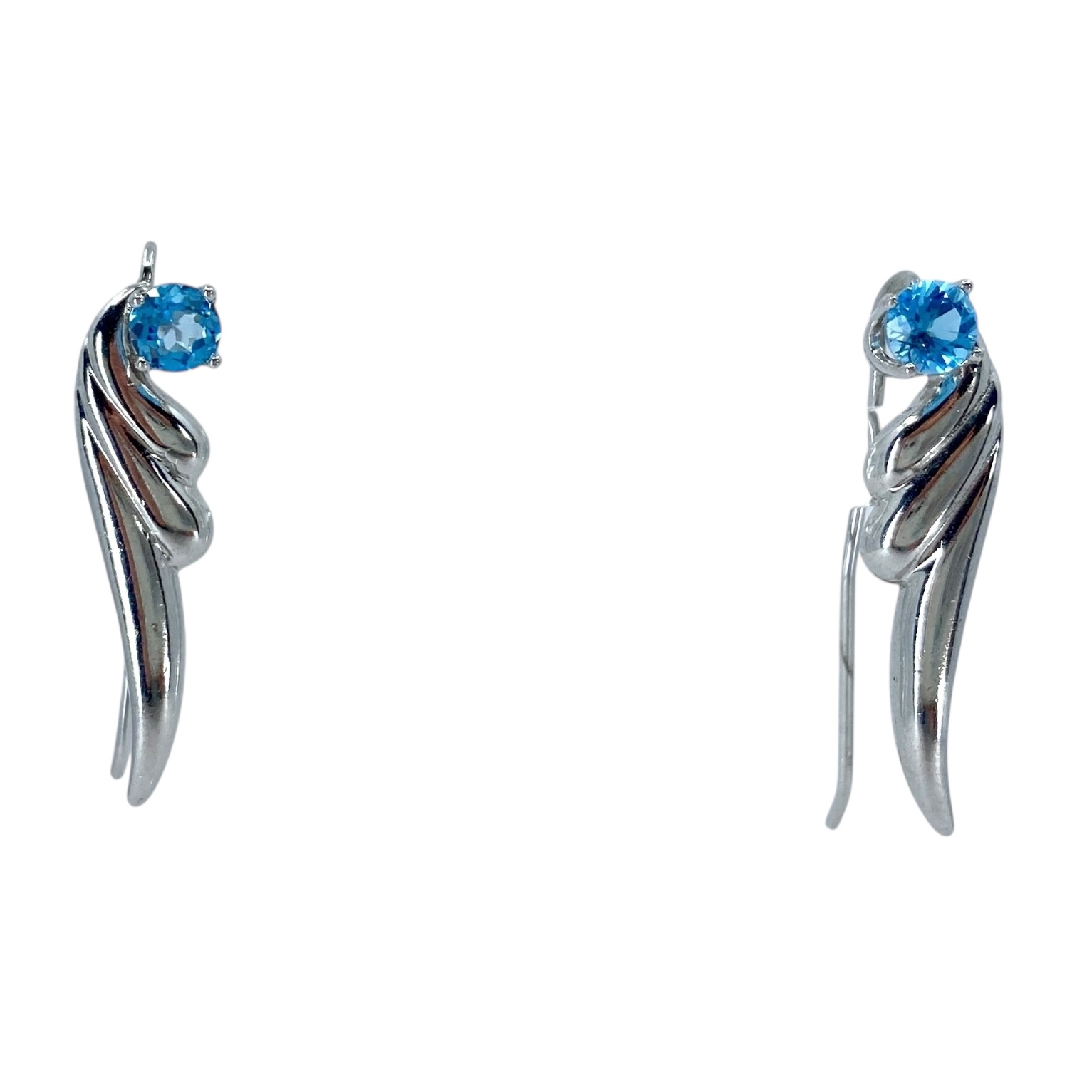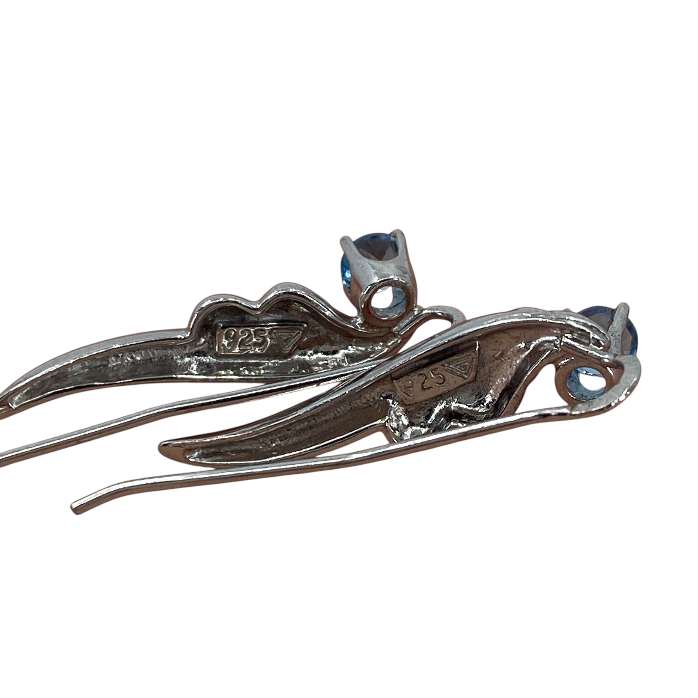Unique Sterling Silver Signed Angel Wing Earrings w/ Aqua Blue Spinel, 3.19g, Engraved “925” + Hallmark