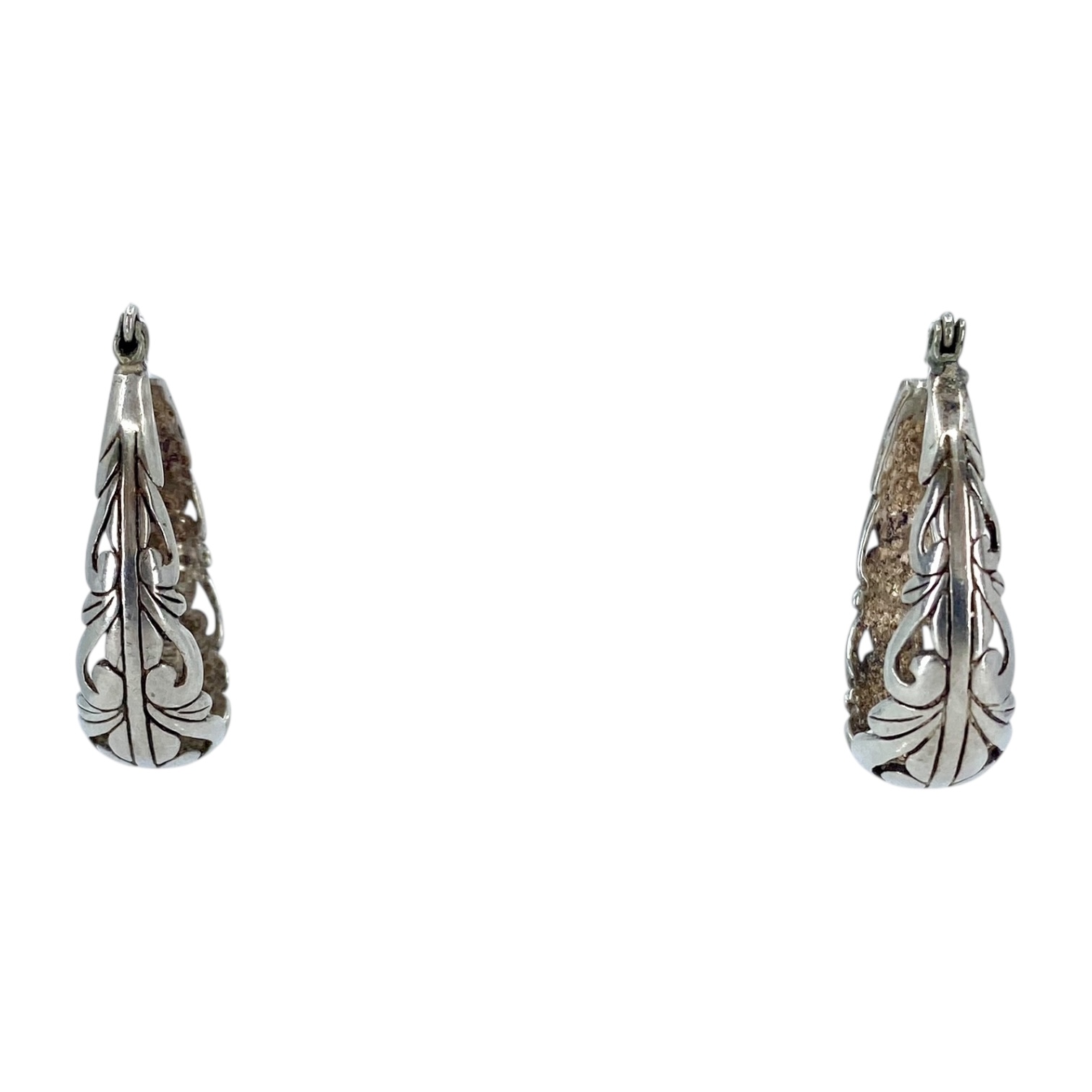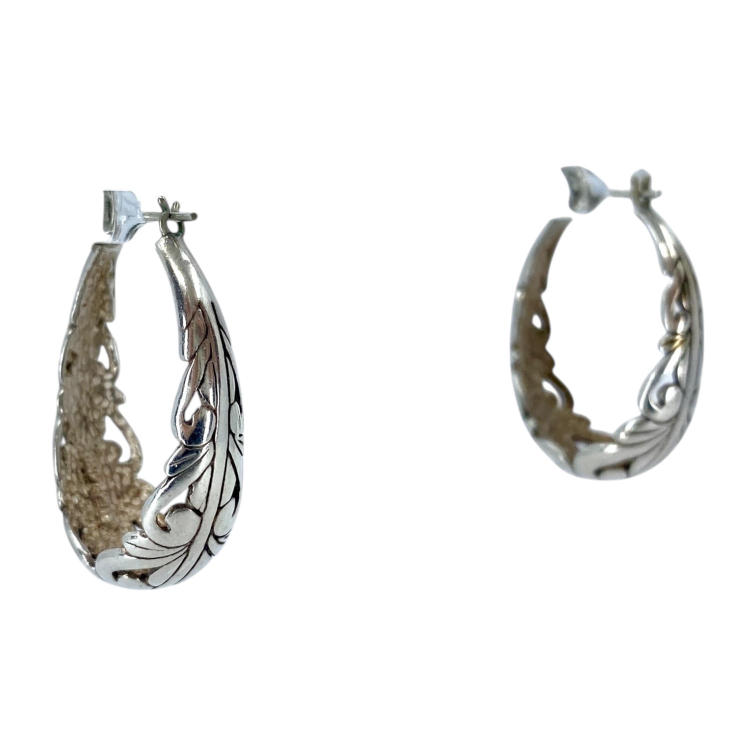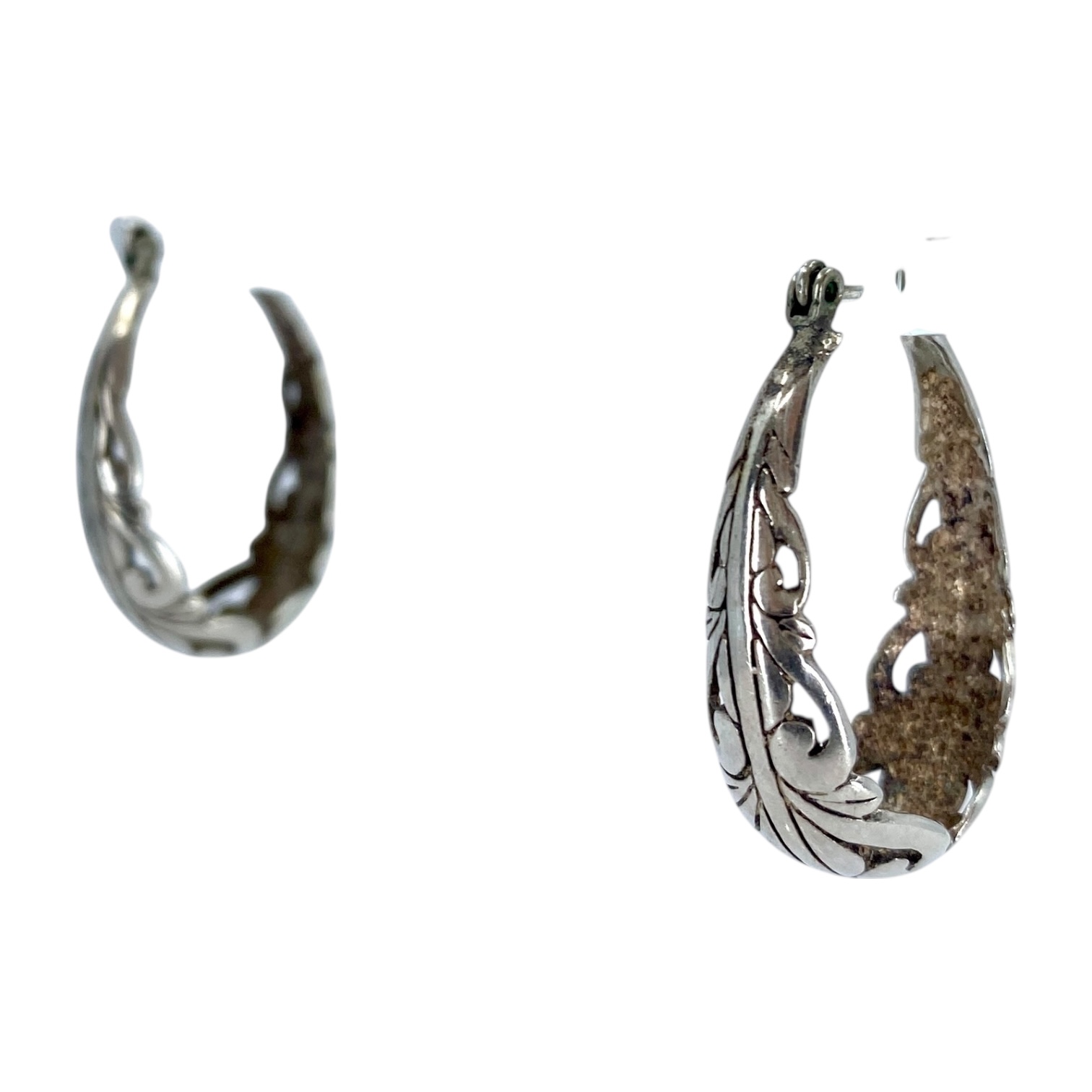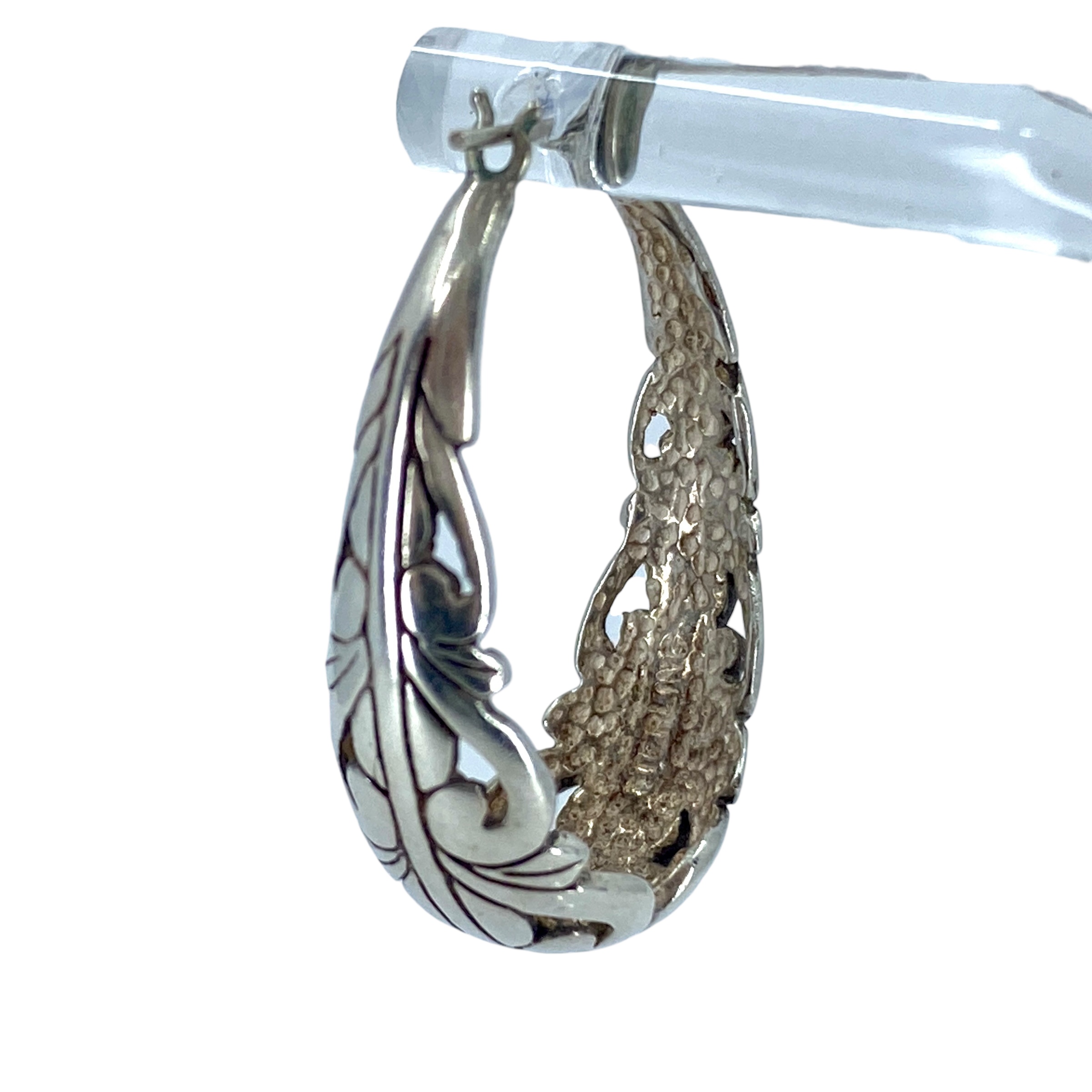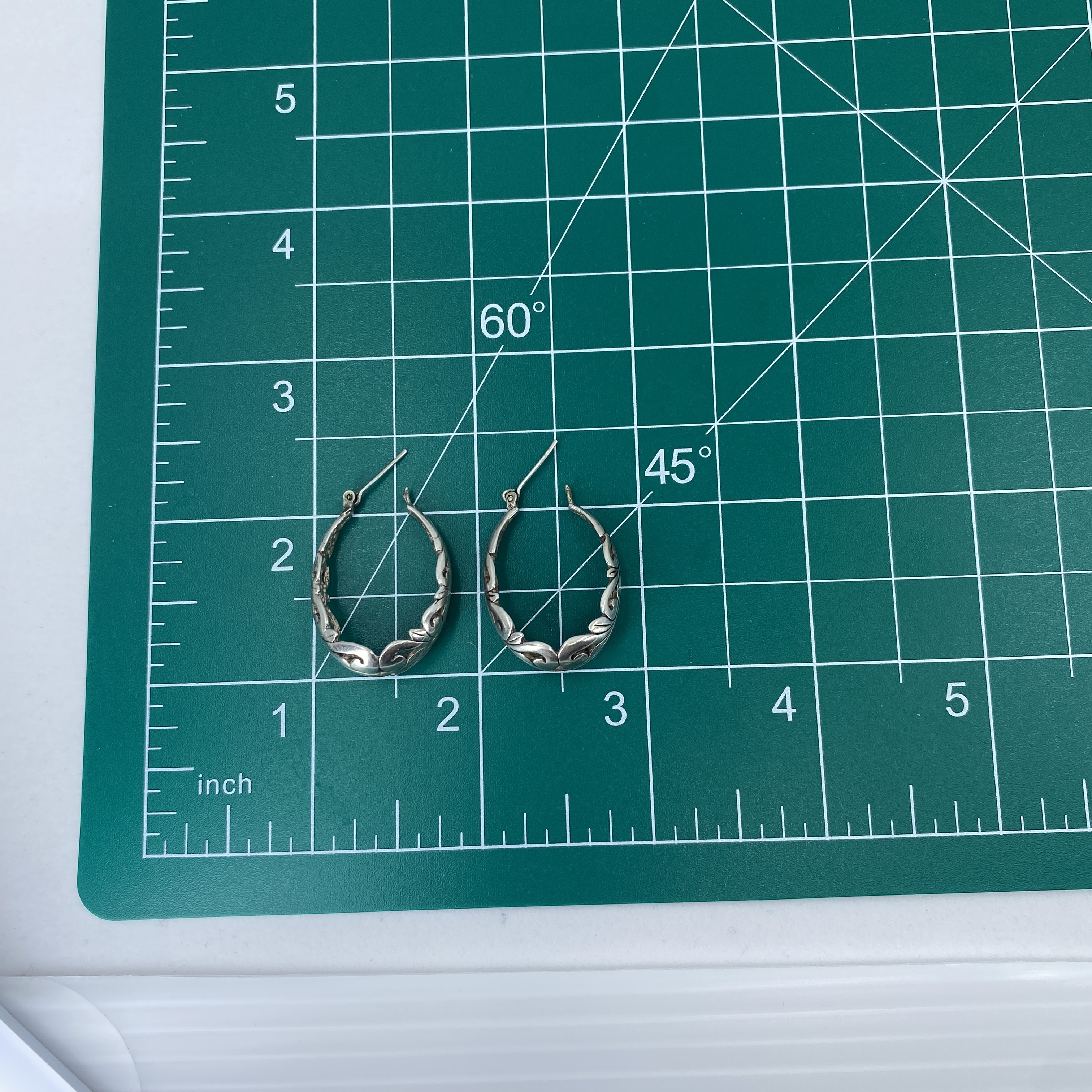 Vintage Scrolling Sterling Silver Hoop Earrings, 7.41g