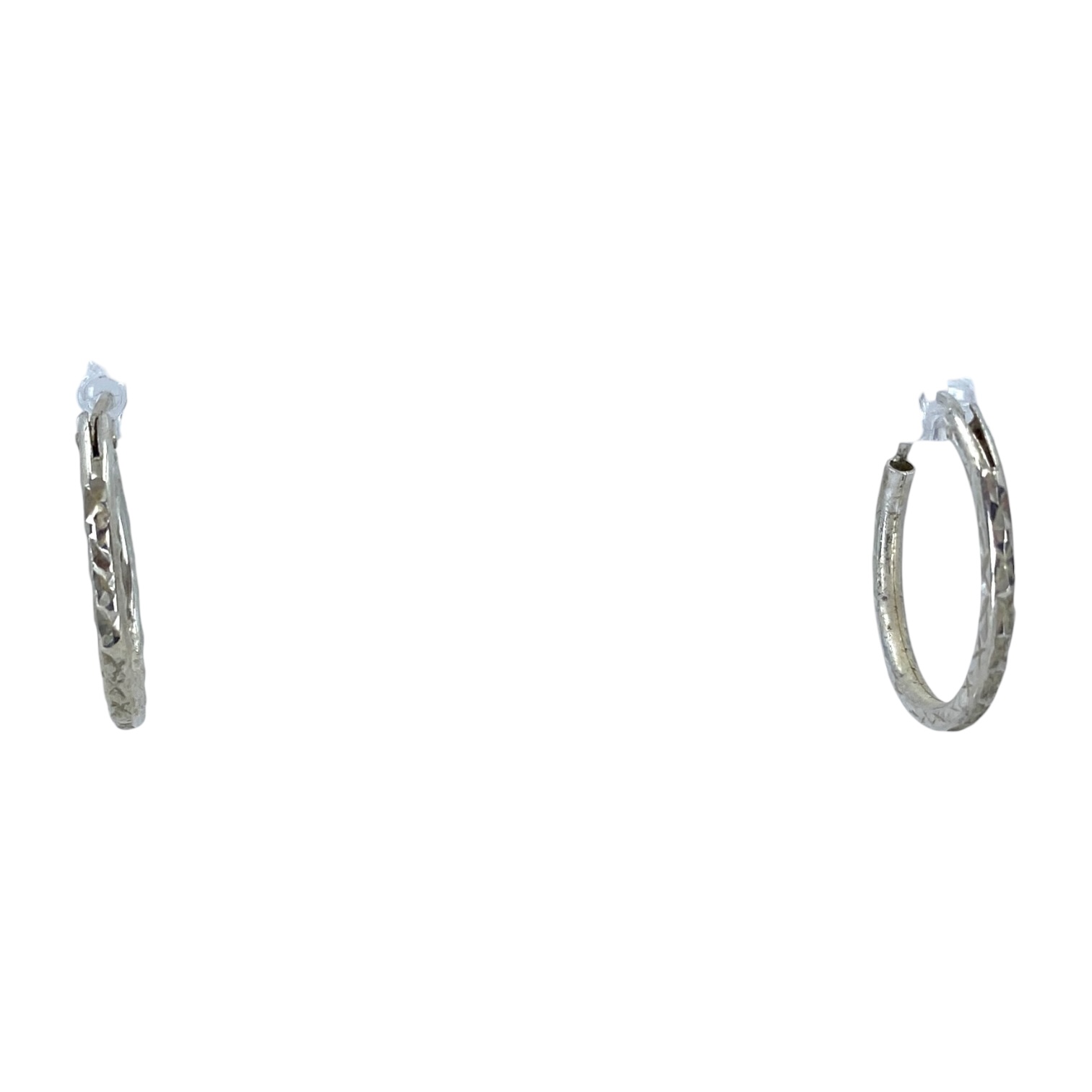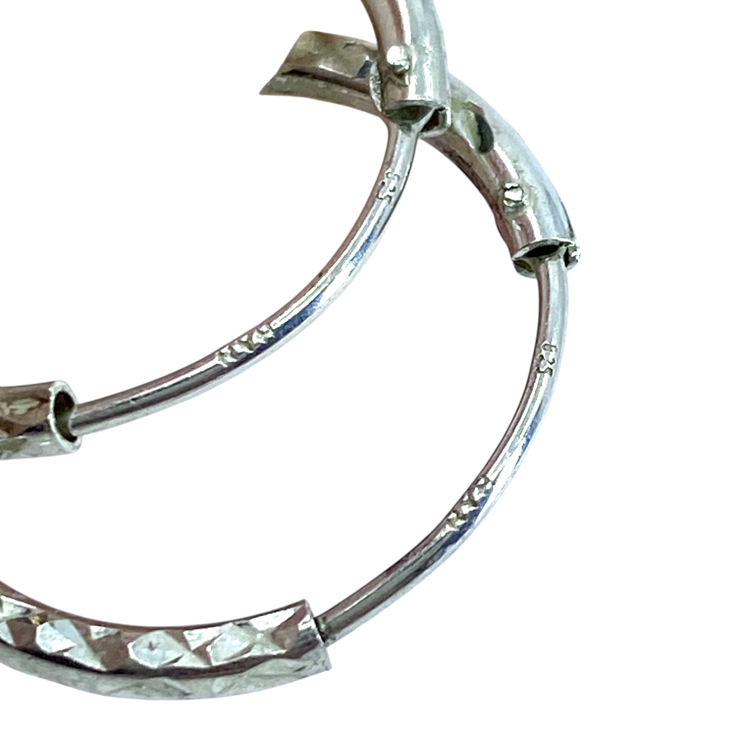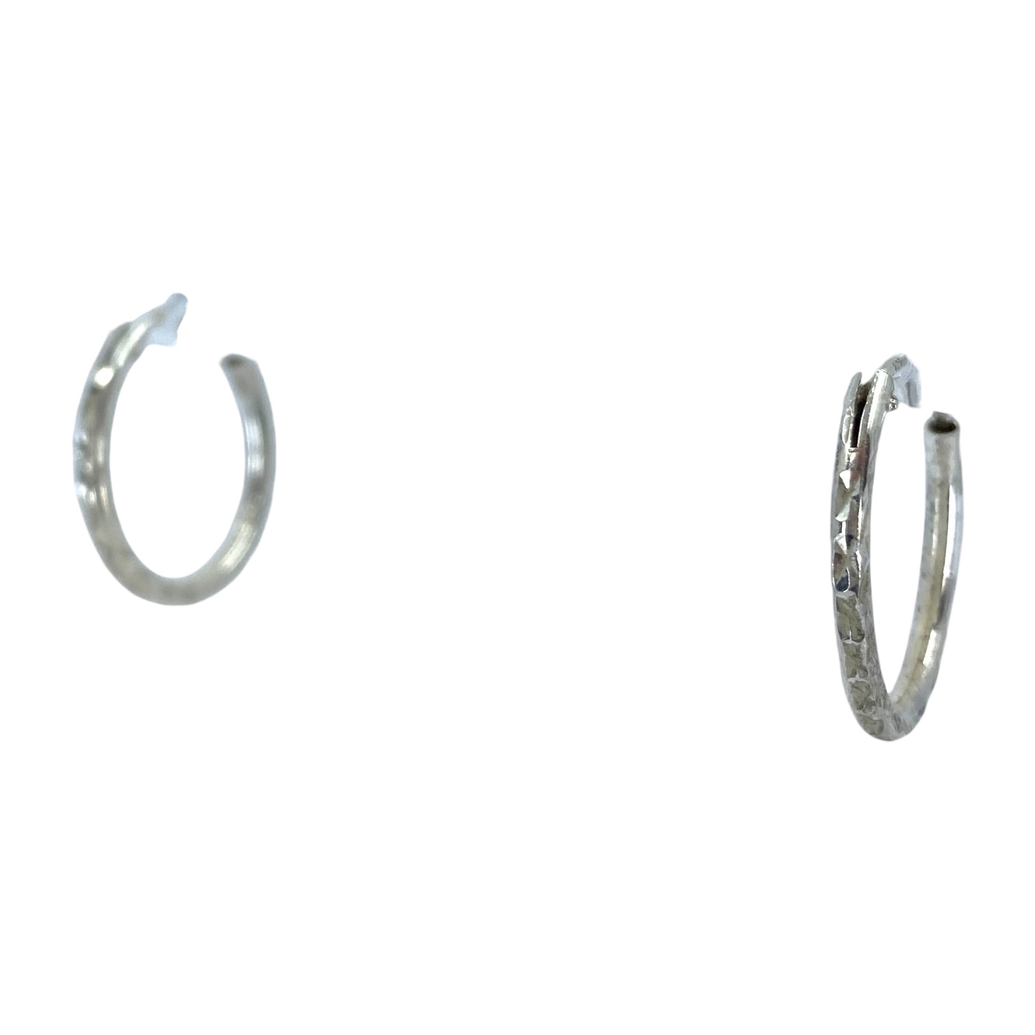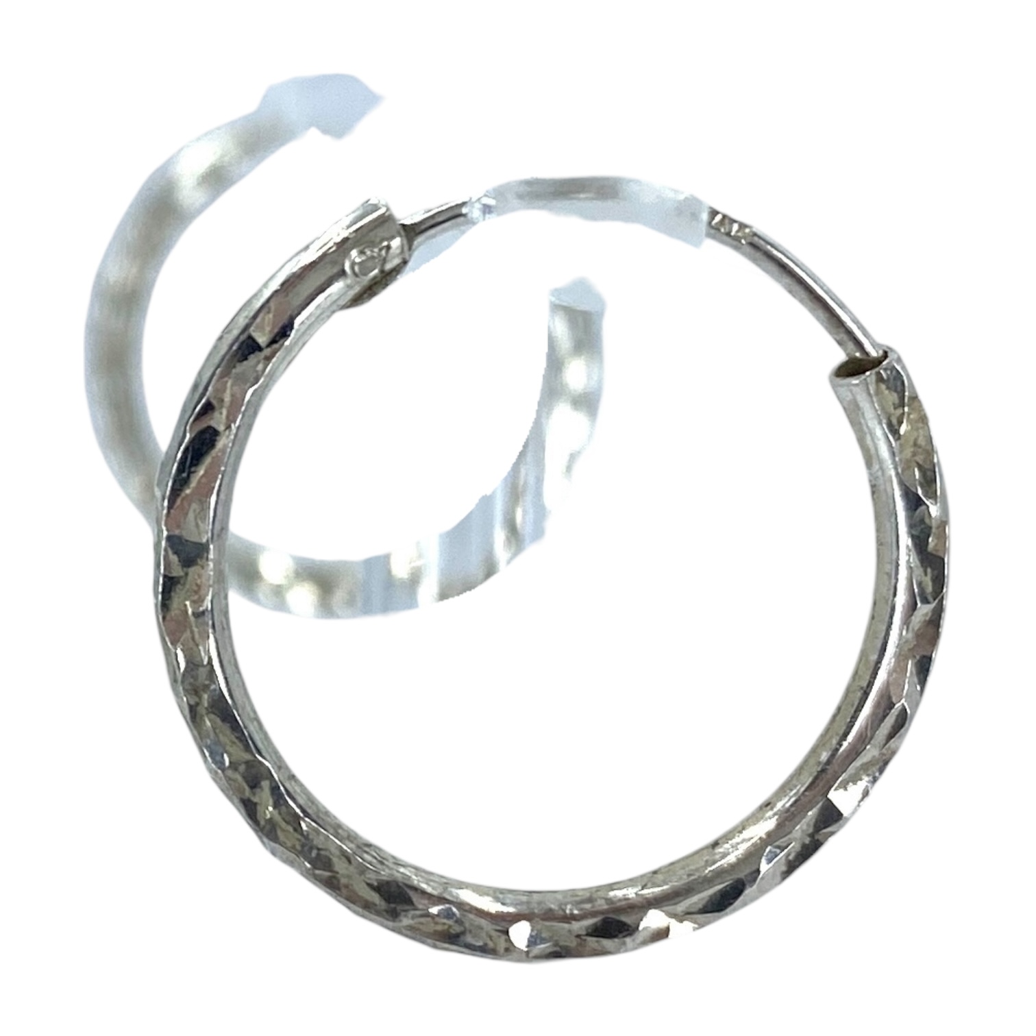 Simple Hammered Sterling Silver Signed Hoop Earrings, 1.09g