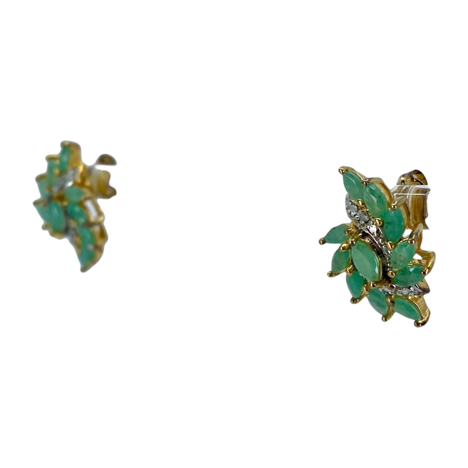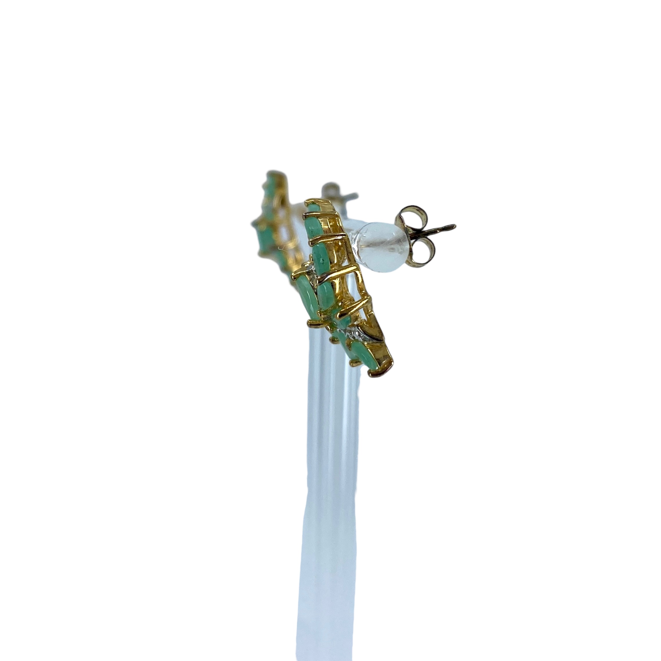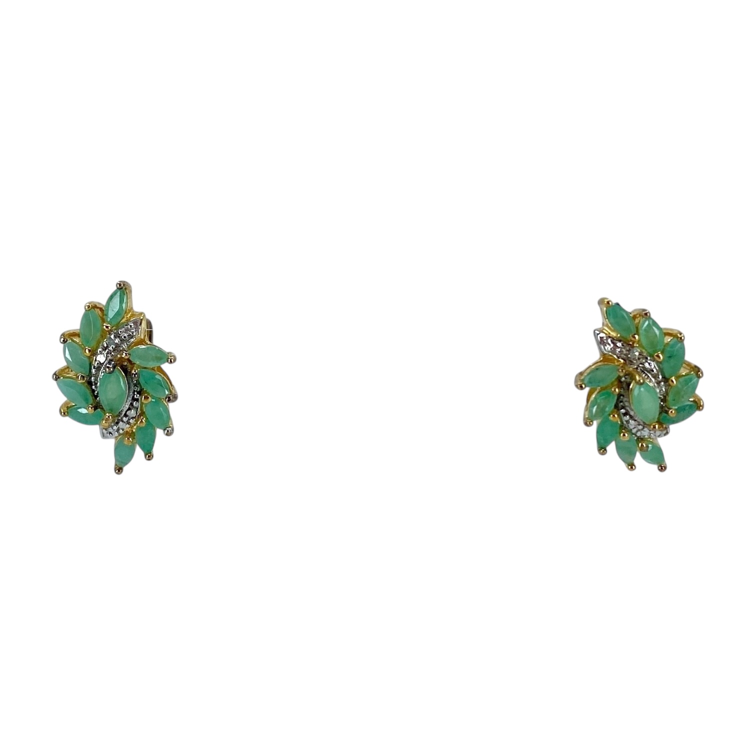 Stunning Ross Simons Gold Over Sterling Silver Cluster Marquise Chrysoprase Earrings w/ Small Diamond, 3.5g, Engraved “R 925 China”