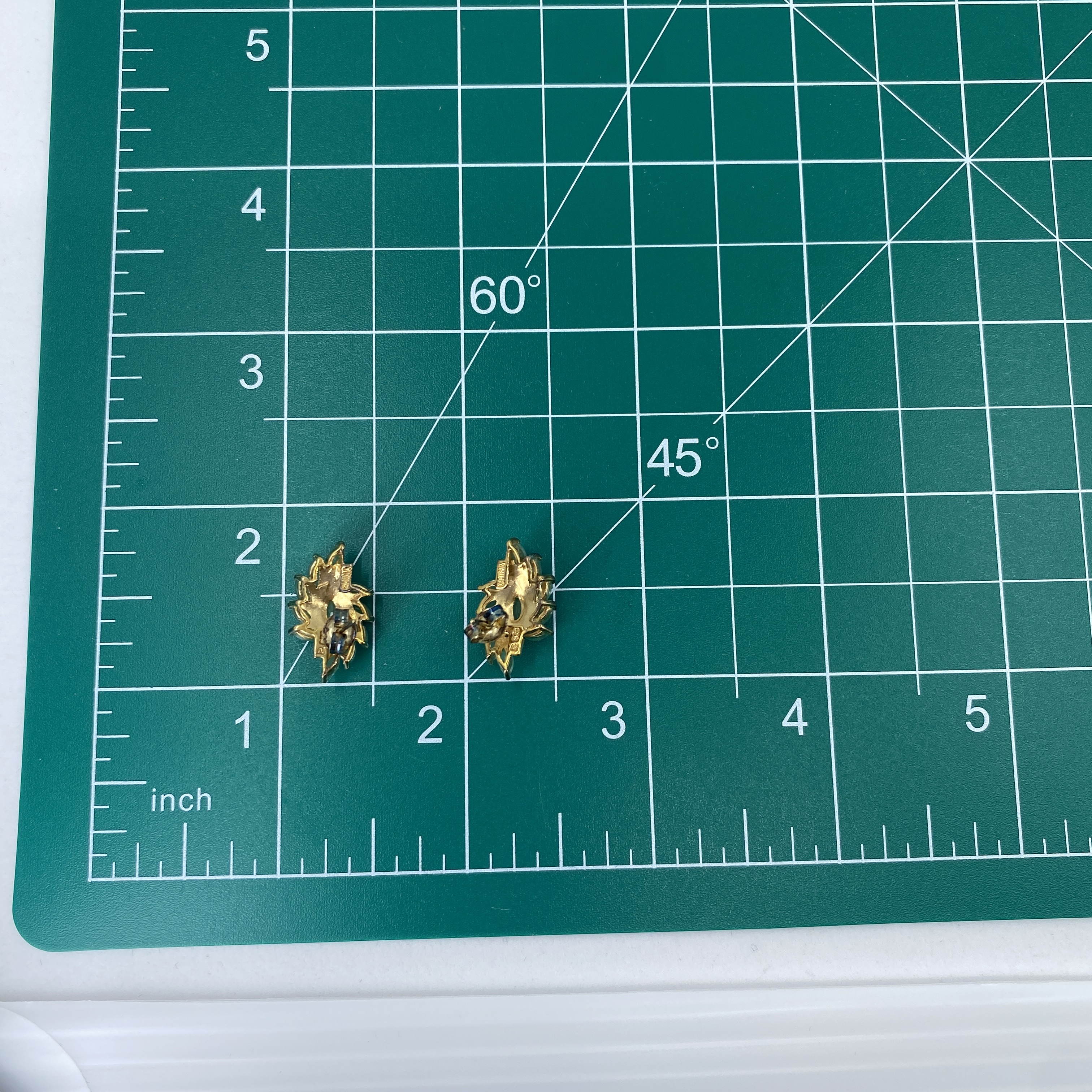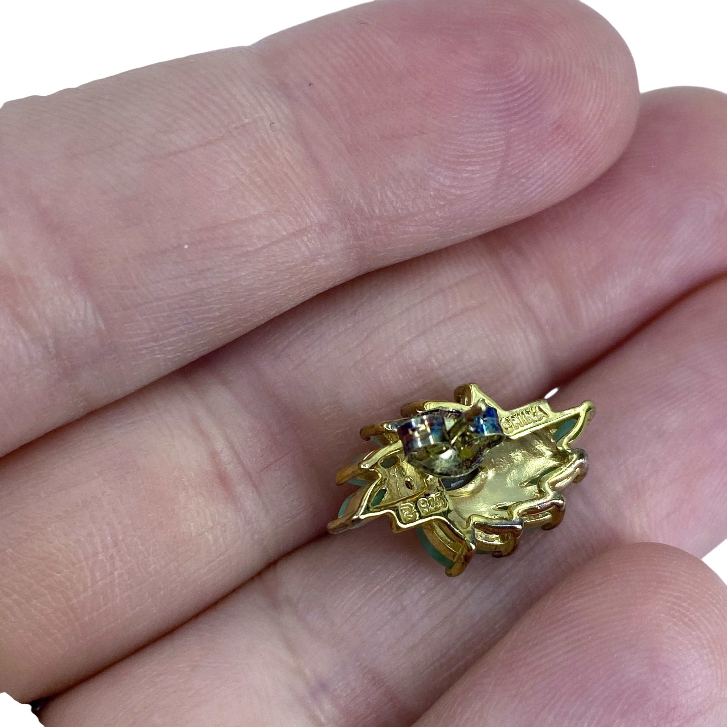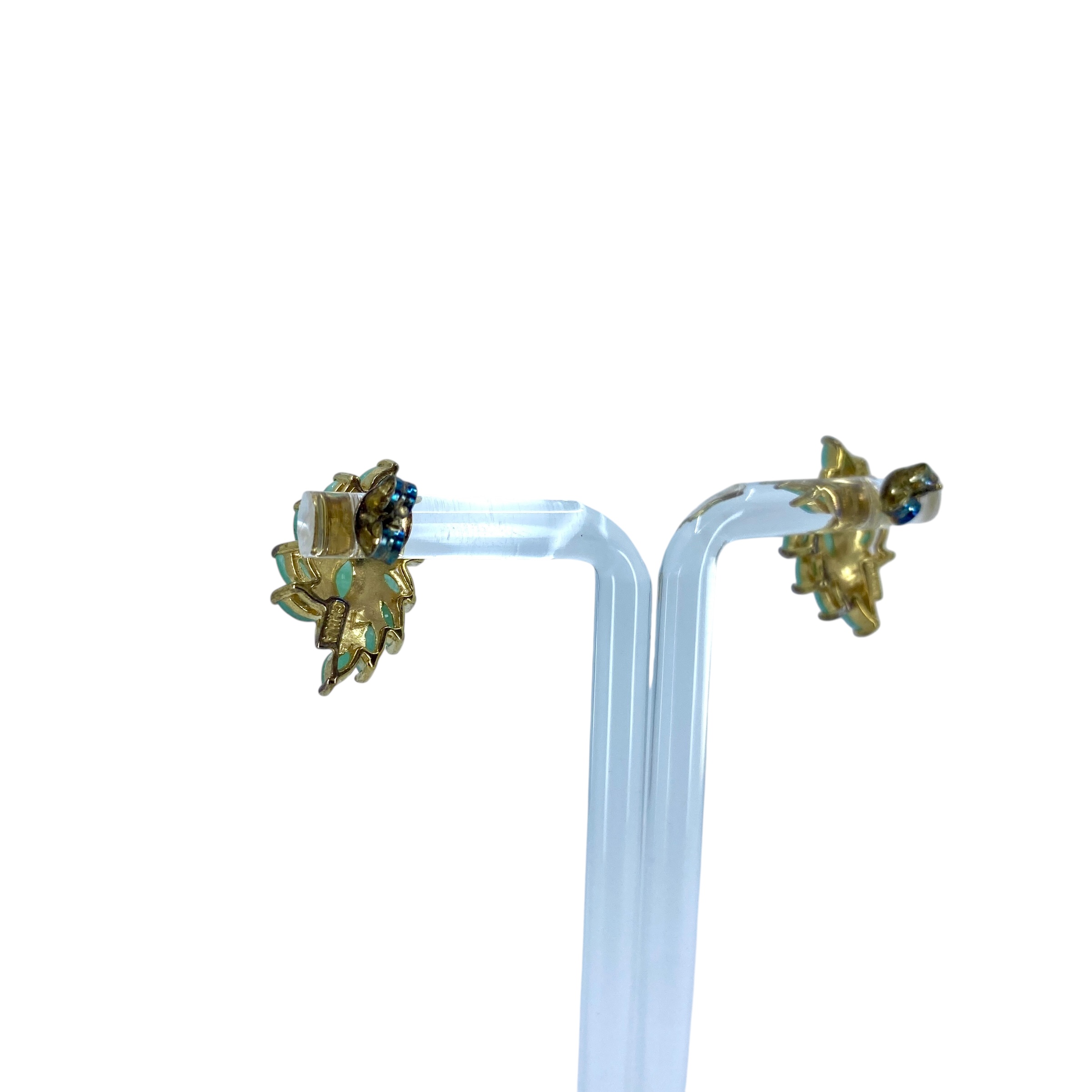 Stunning Ross Simons Gold Over Sterling Silver Cluster Marquise Chrysoprase Earrings w/ Small Diamond, 3.5g, Engraved “R 925 China”