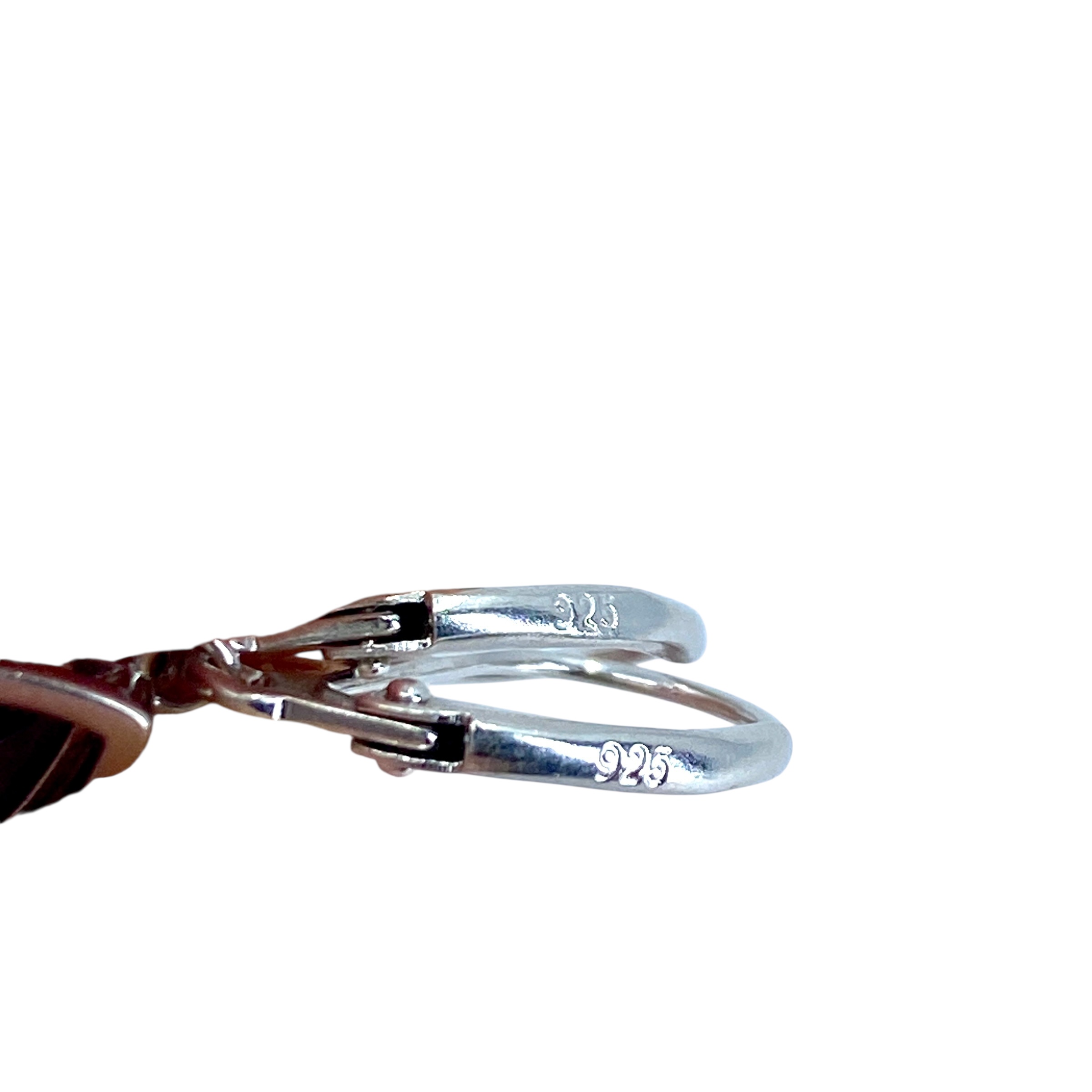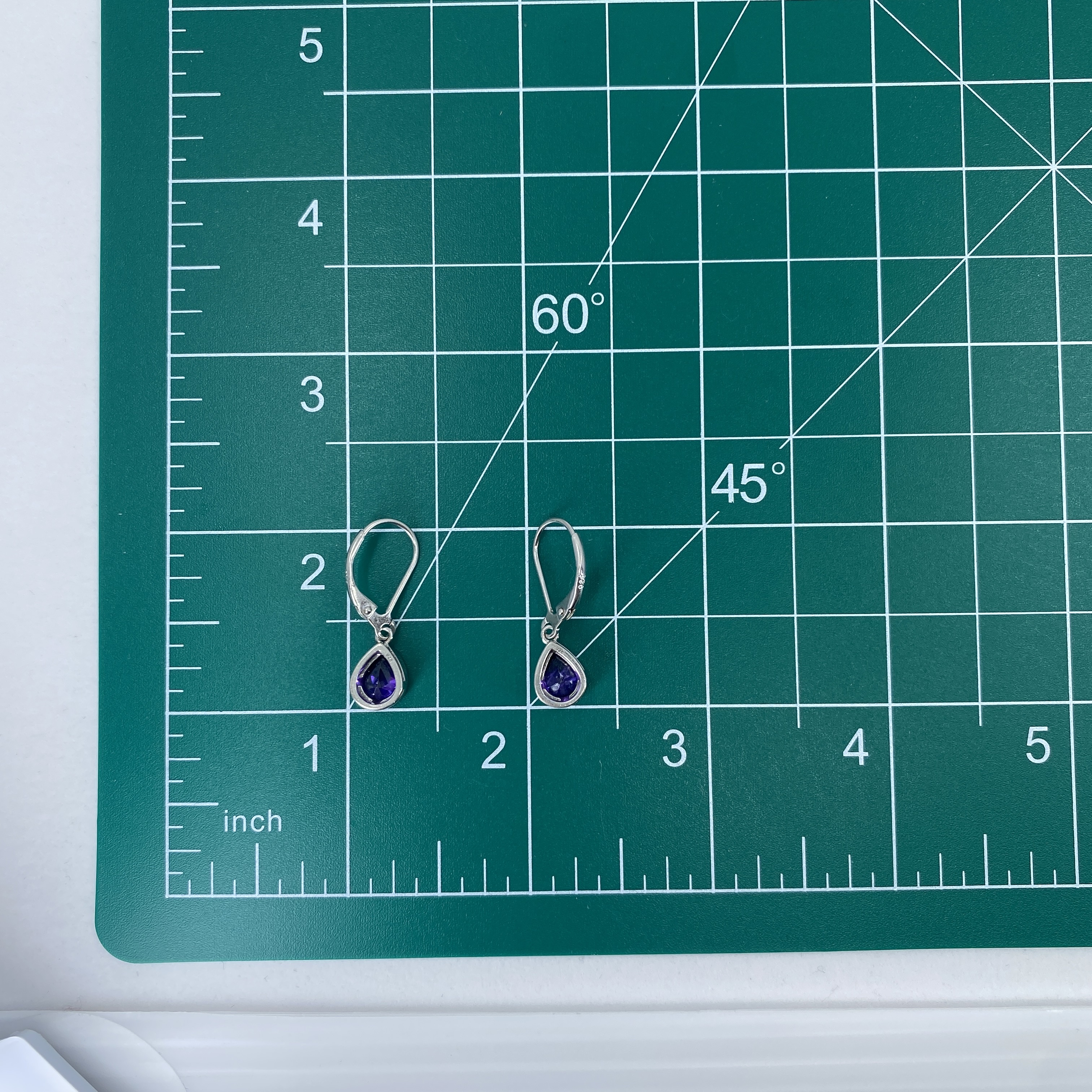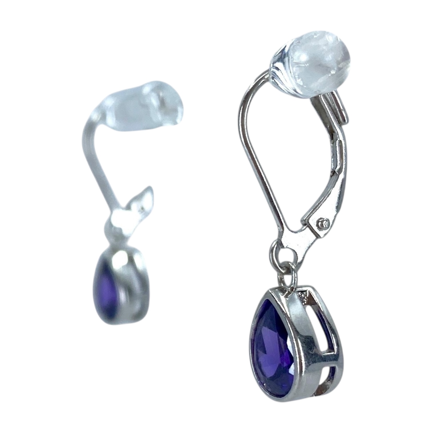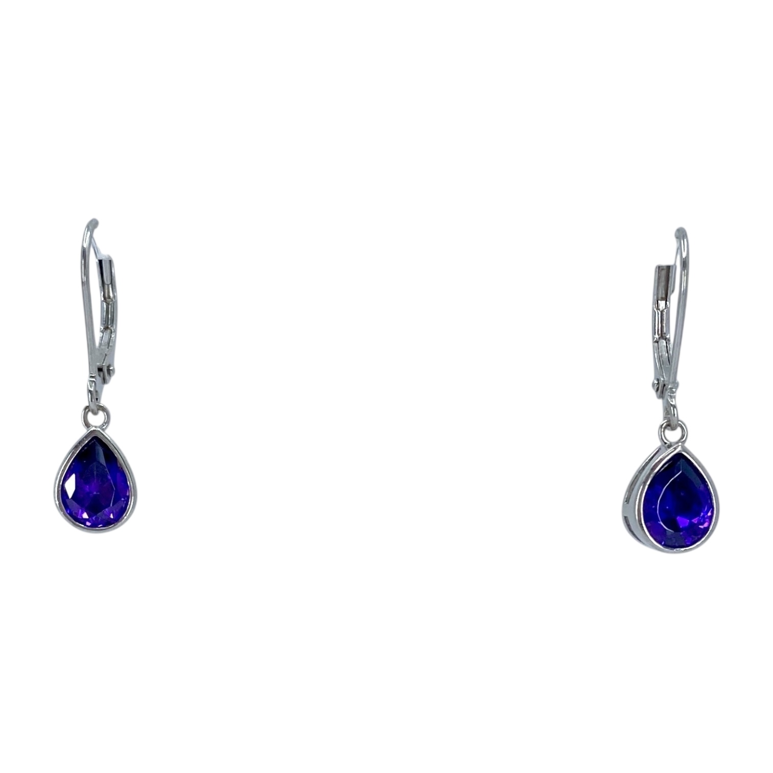 Simple Sterling Silver Purple Rhinestone Teardrop Dangle Earrings, 2.99g, Engraved “925”