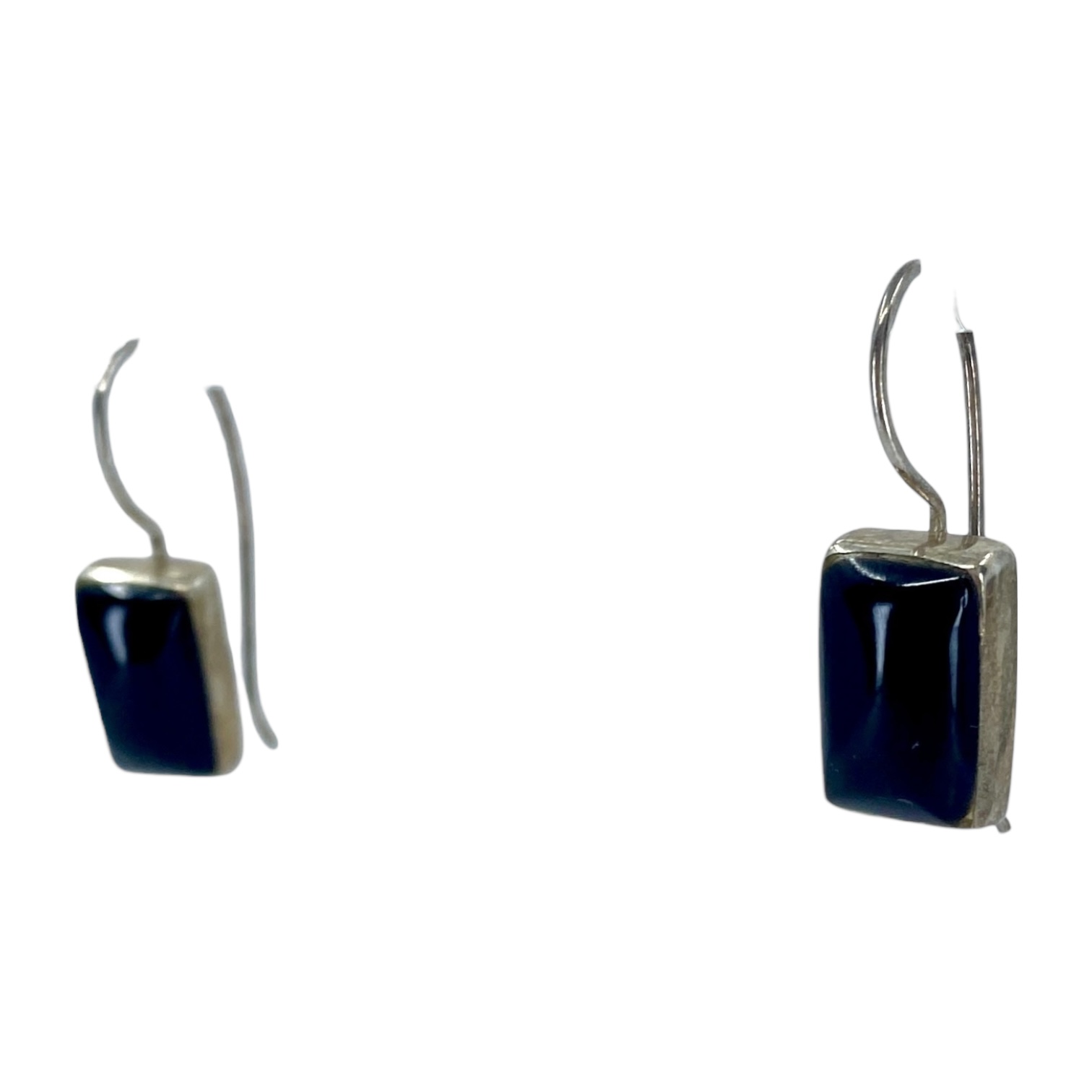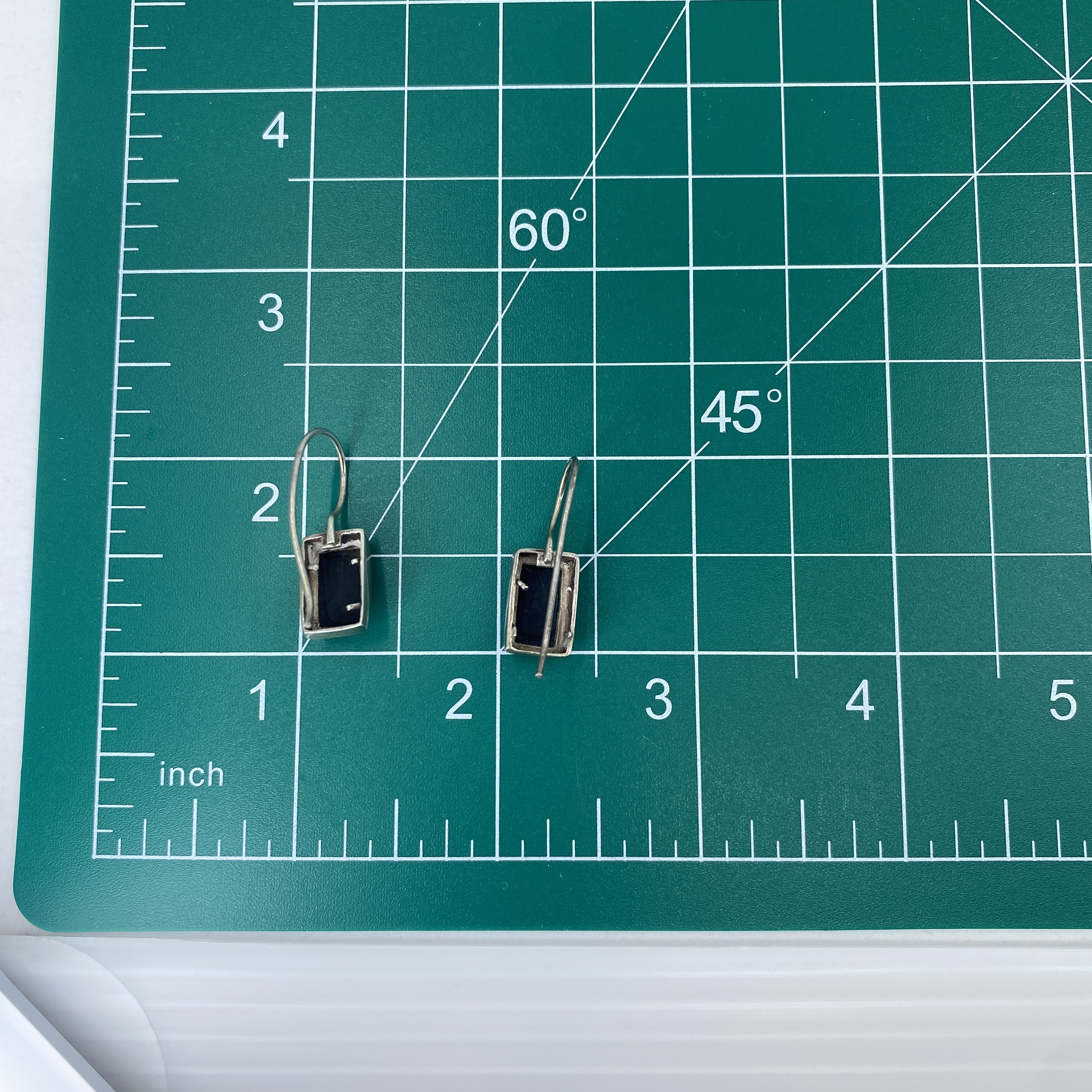 Rectangular Black Glass Sterling Silver Earrings, 2.77g