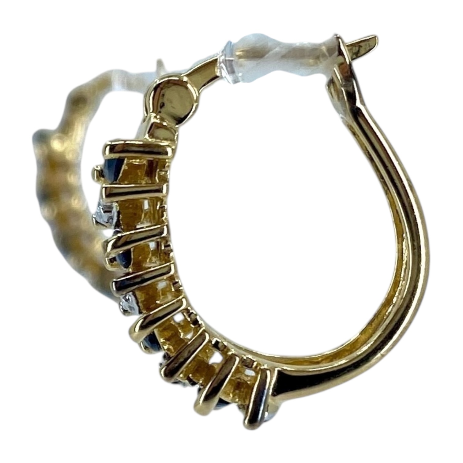 Remarkable Ross Simons Marquise Blue Sapphire Diamond Gold Over Sterling Silver Hoop Earrings, 4.01g