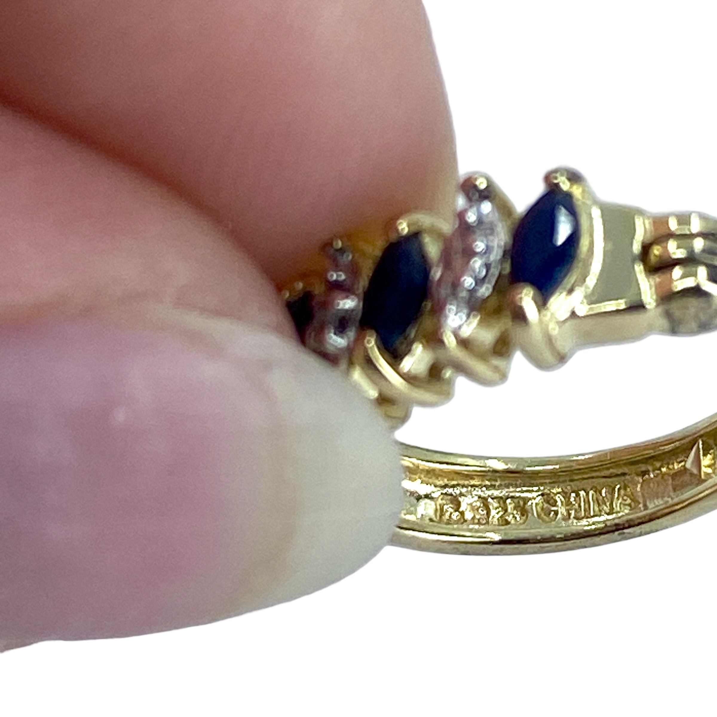 Remarkable Ross Simons Marquise Blue Sapphire & Diamond Gold Over Sterling Silver Hoop Earrings, 4.01g, Engraved “R 925 China”