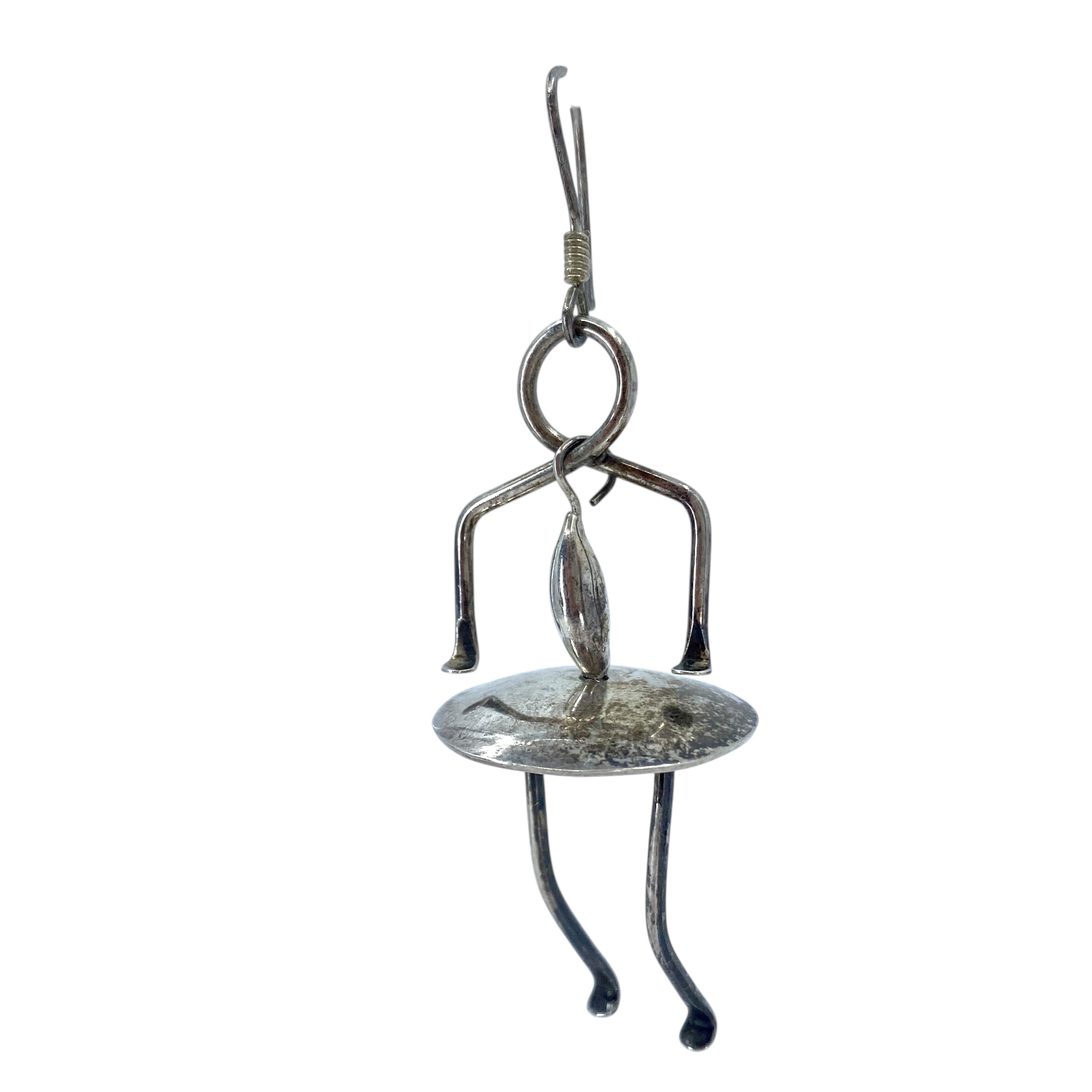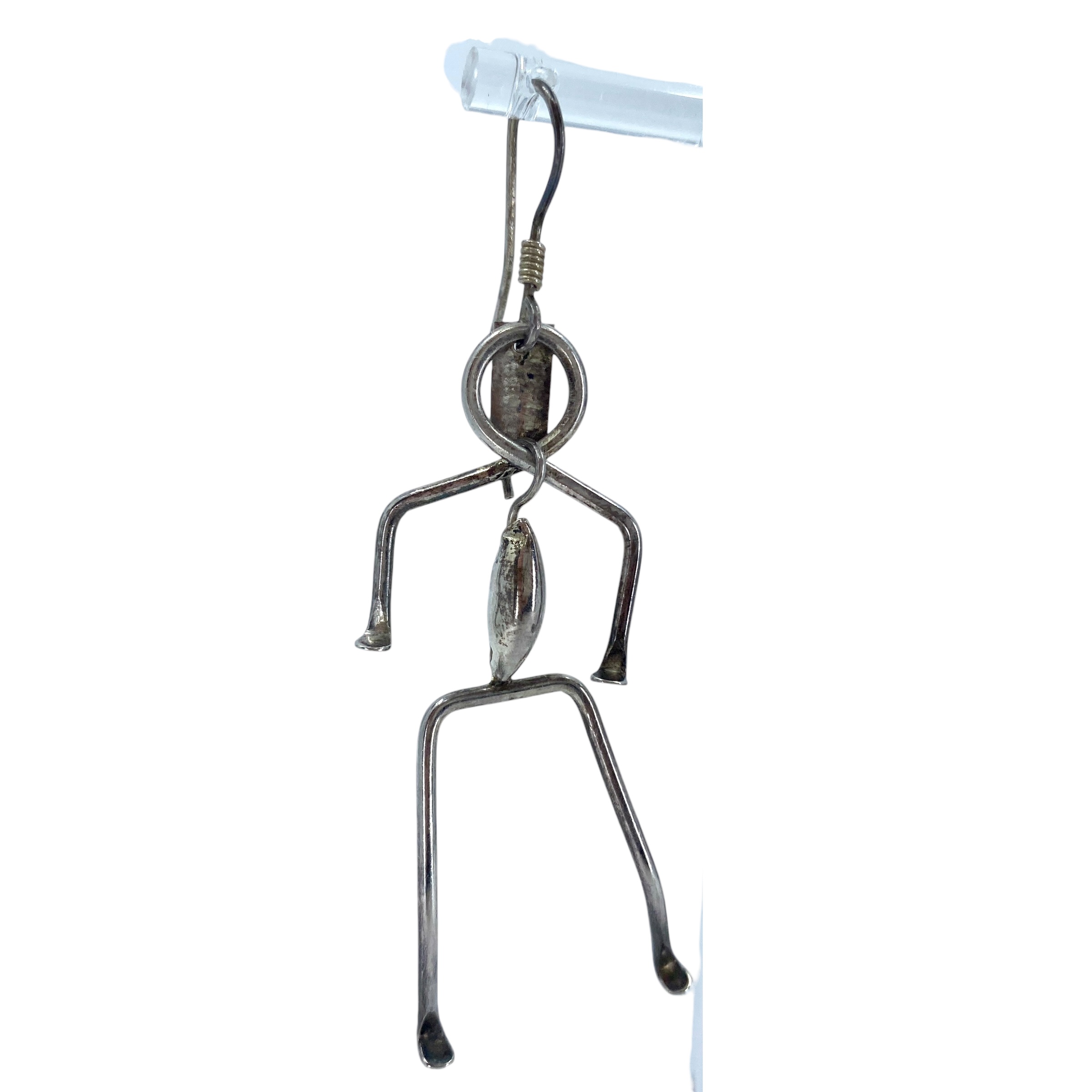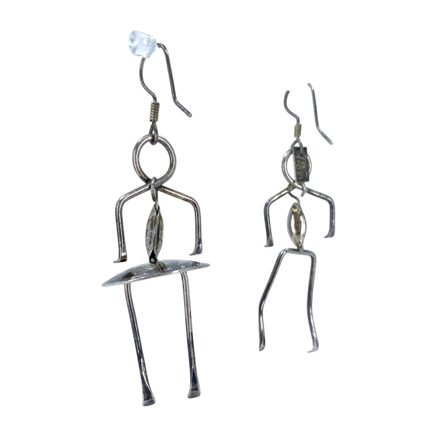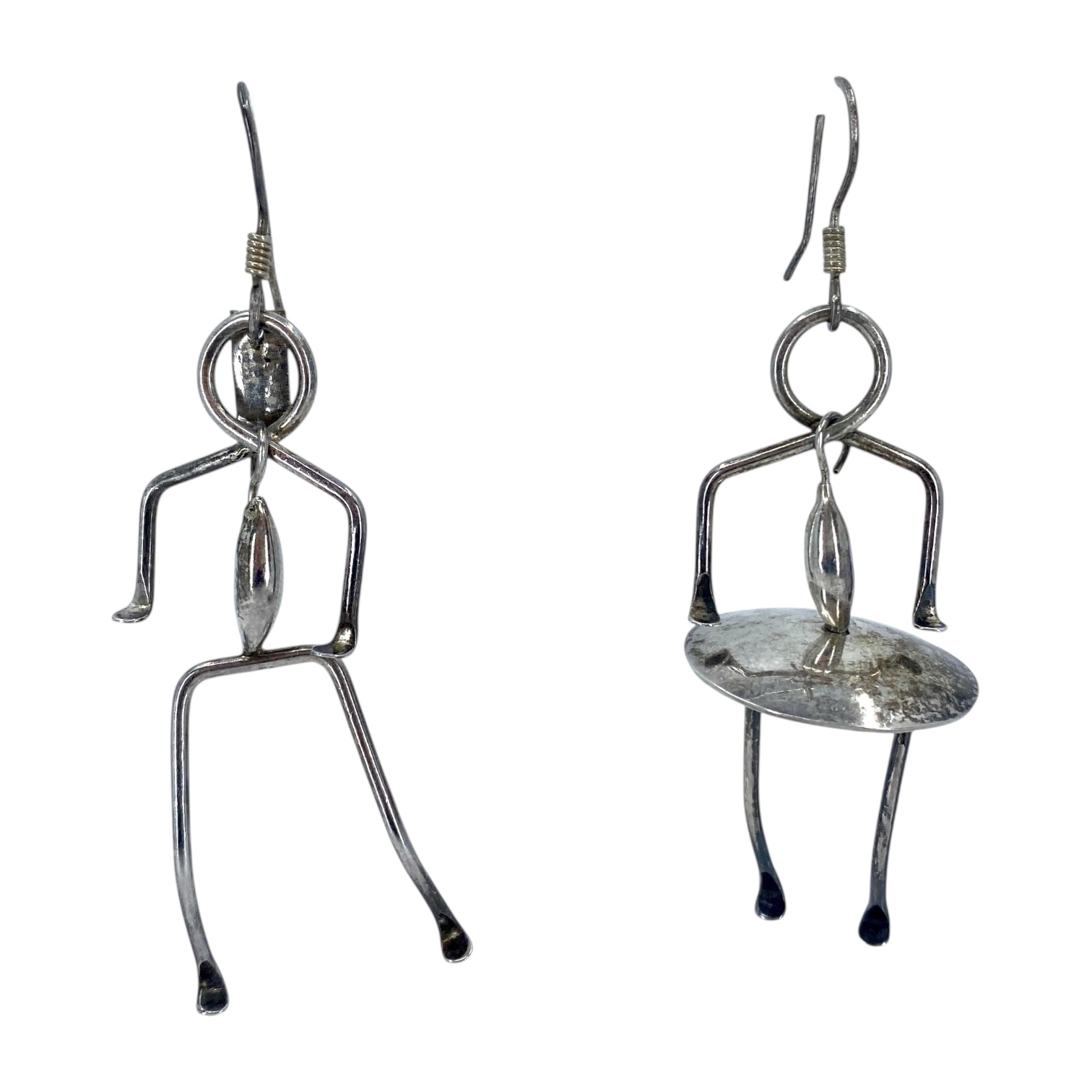 One of a Kind Taxco Sterling Silver Stick Figure Earrings, 13.61g
