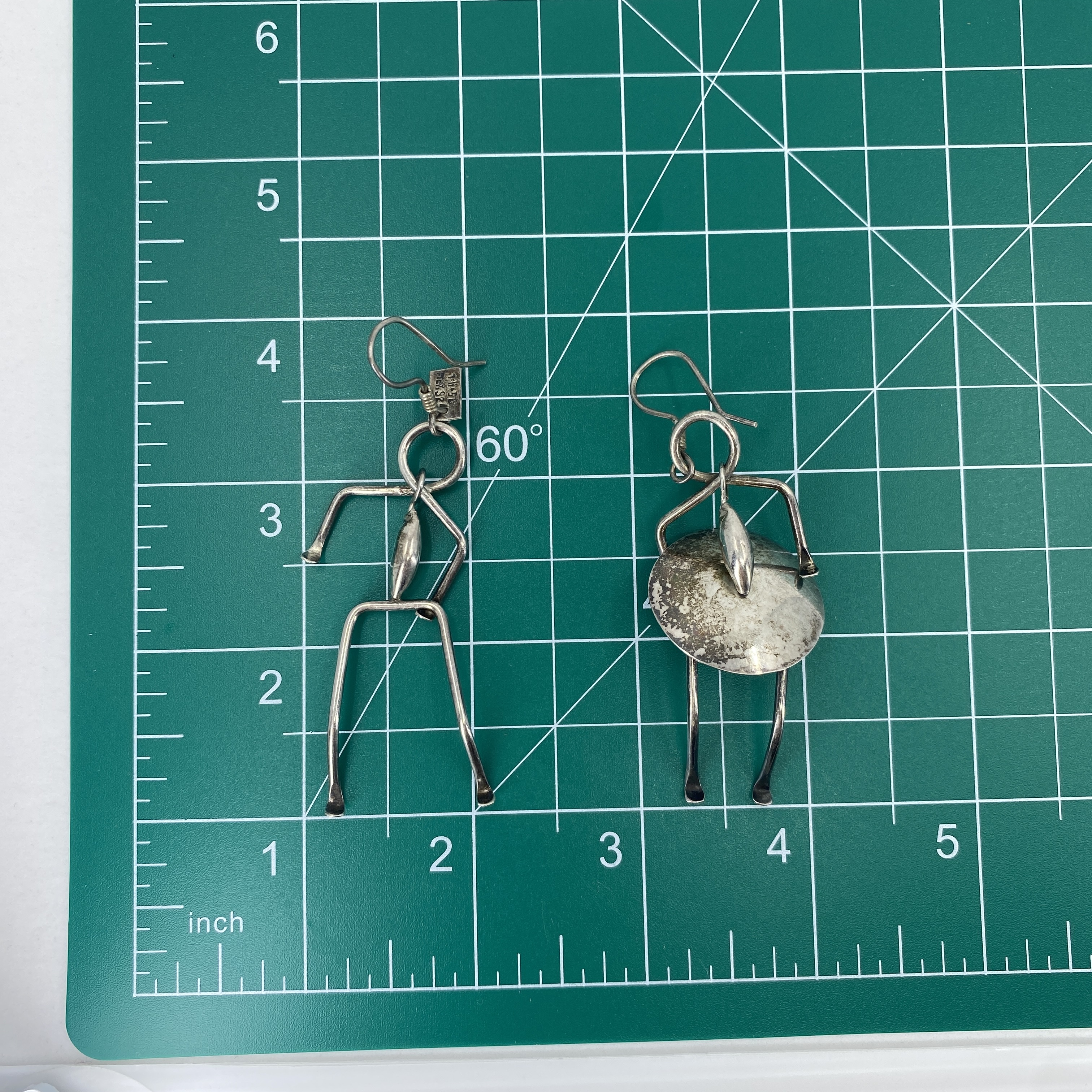 One of a Kind Taxco Sterling Silver Stick Figure Earrings, 13.61g, Engraved “TH-56 MEX 925”