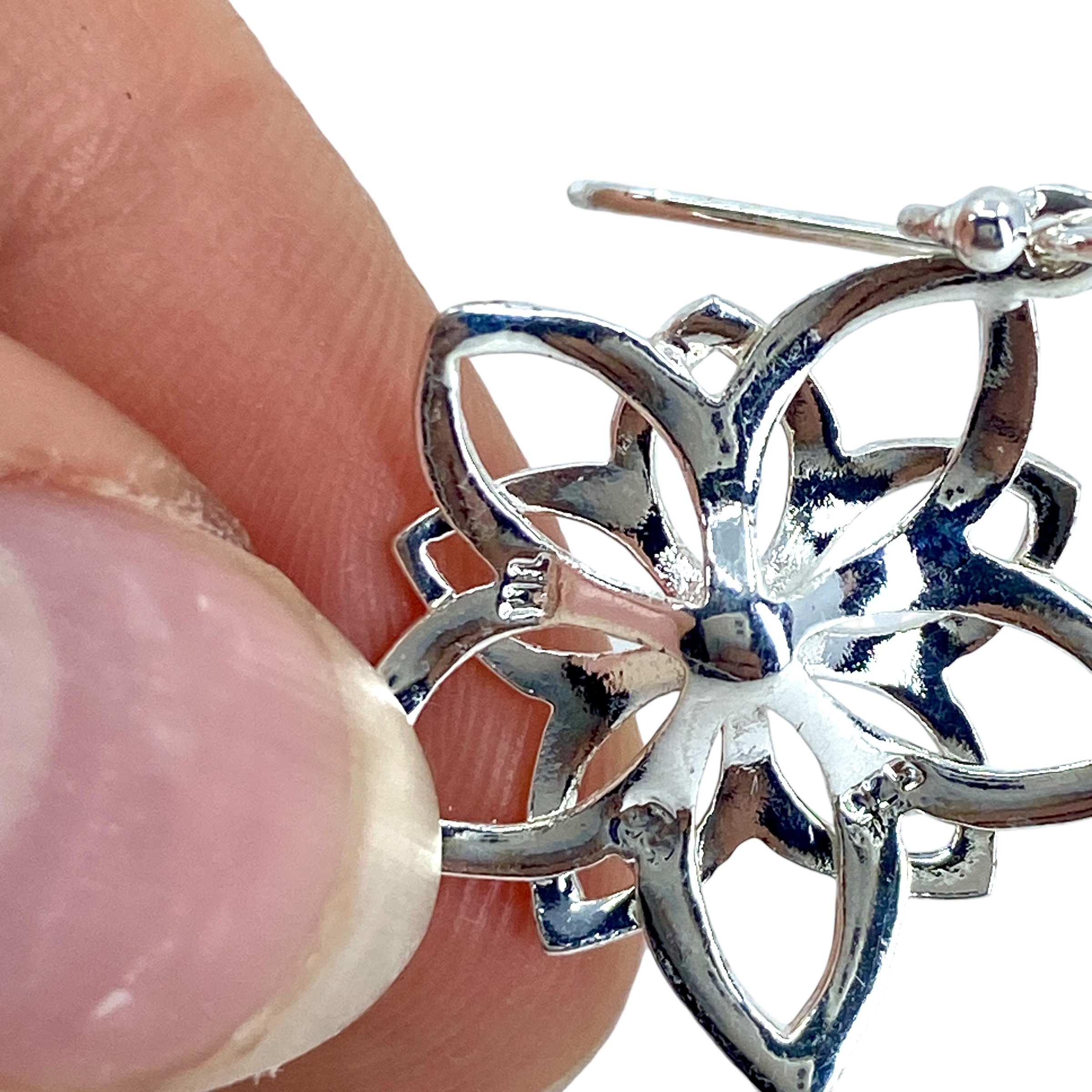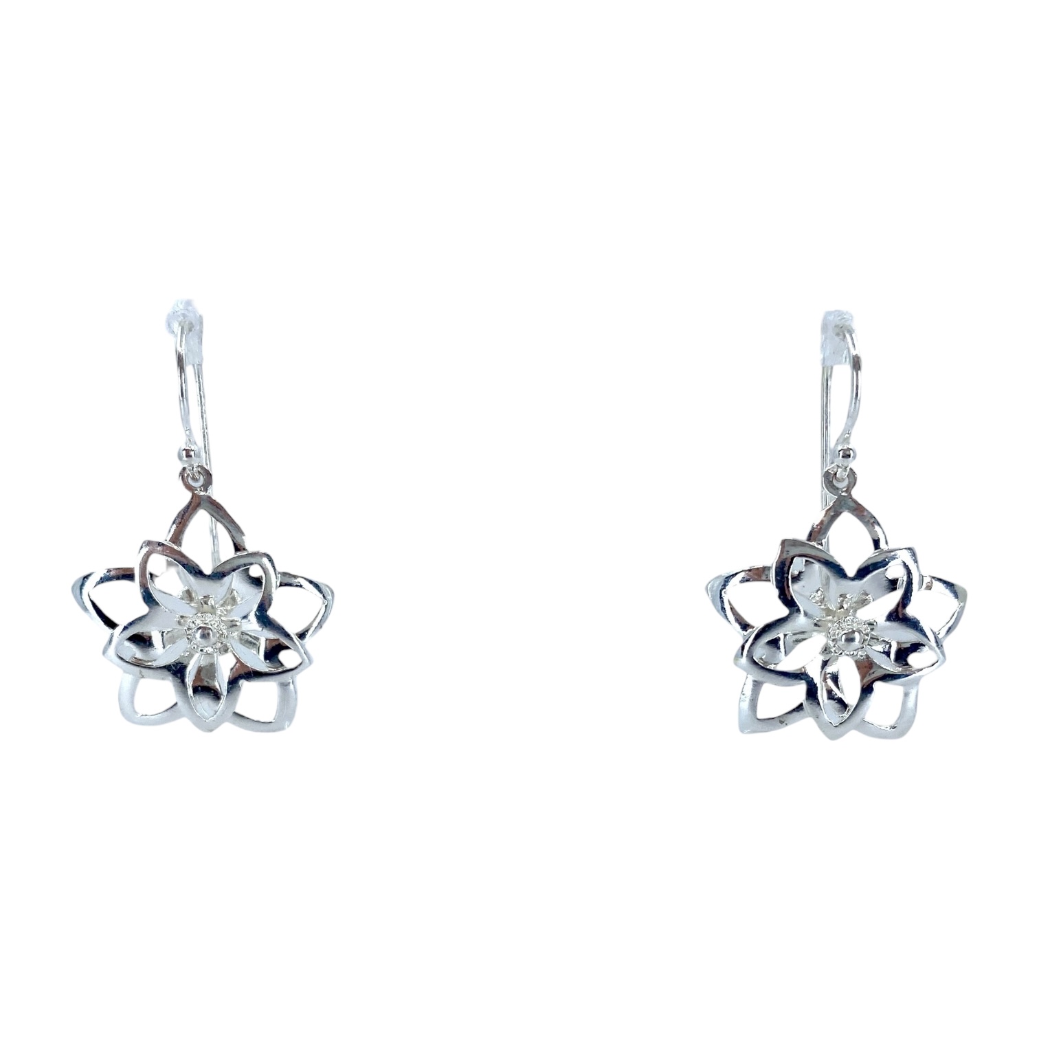 Floral Sterling Silver Dangling Signed Earrings, 3.75g, Engraved “TH 925”