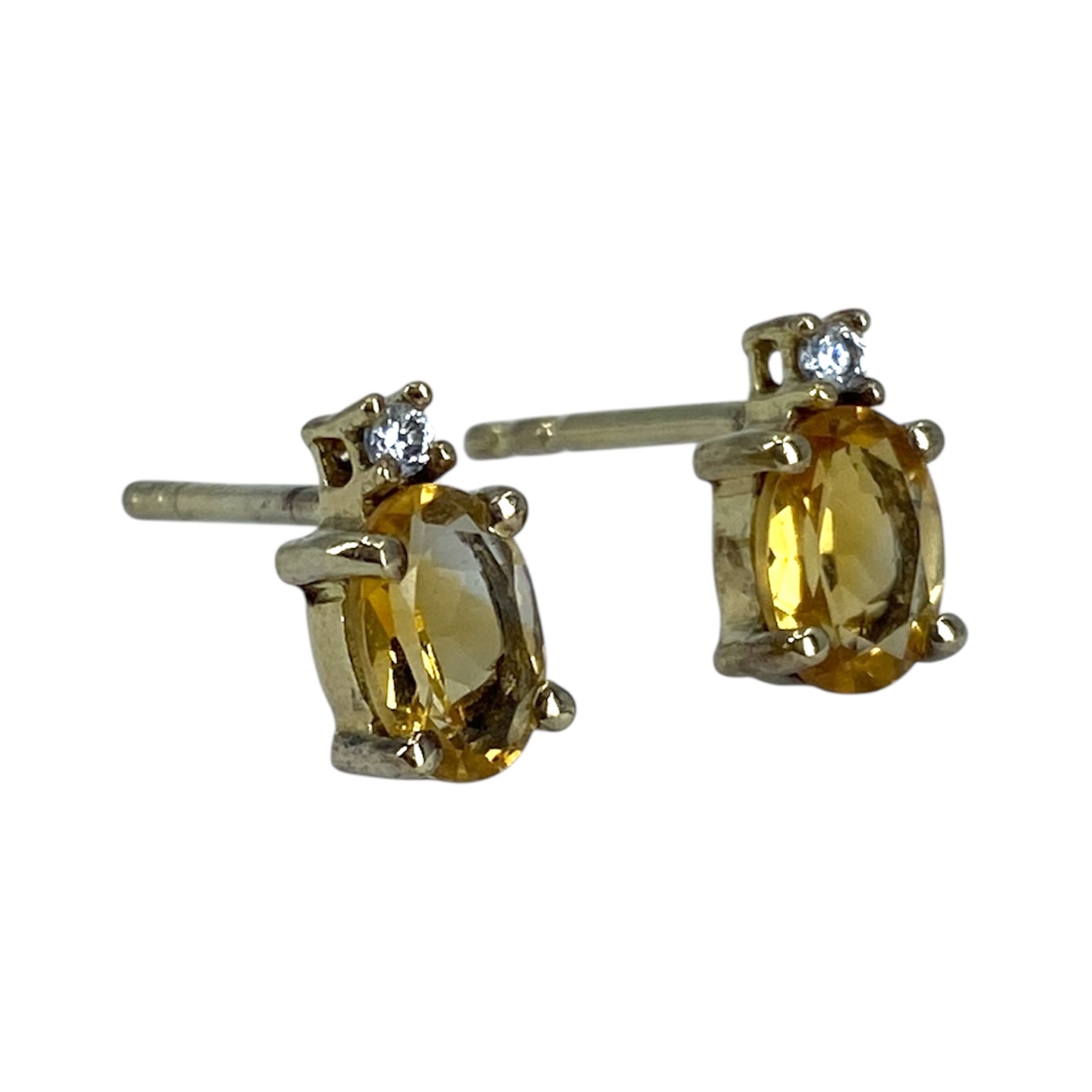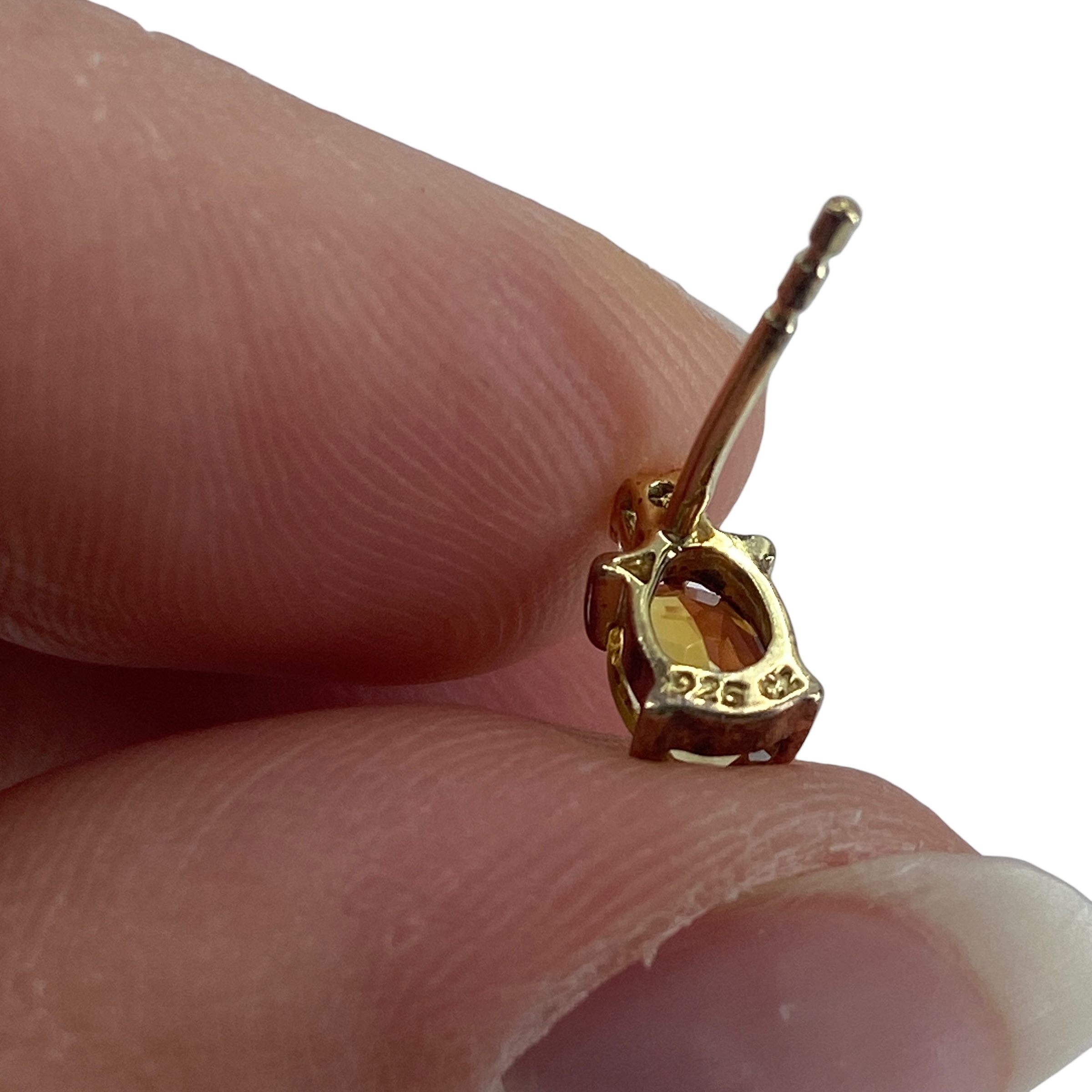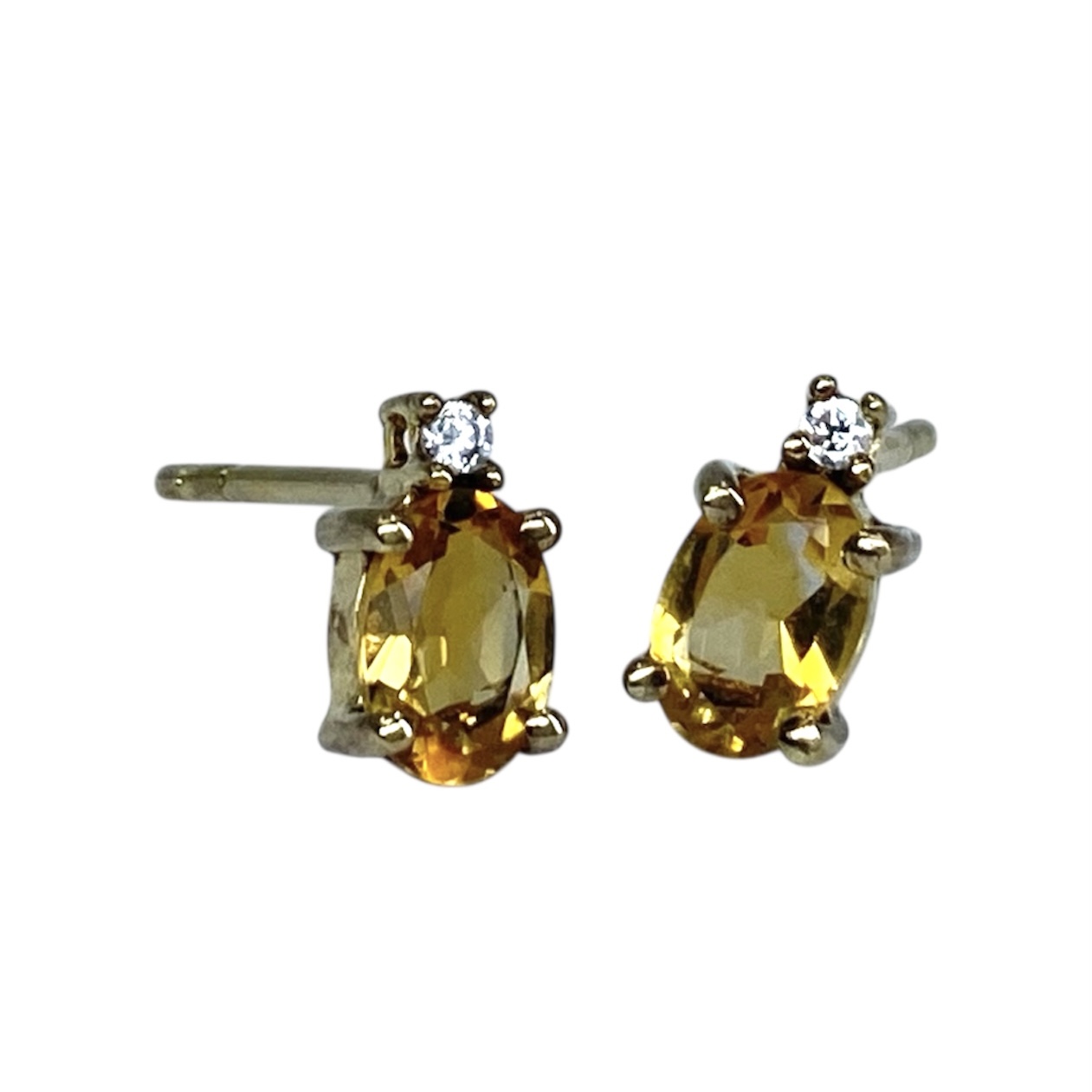 Classy Gold Over Sterling Silver Citrine + CZ Stud Earrings, 0.98g, Engraved “925 CZ”
