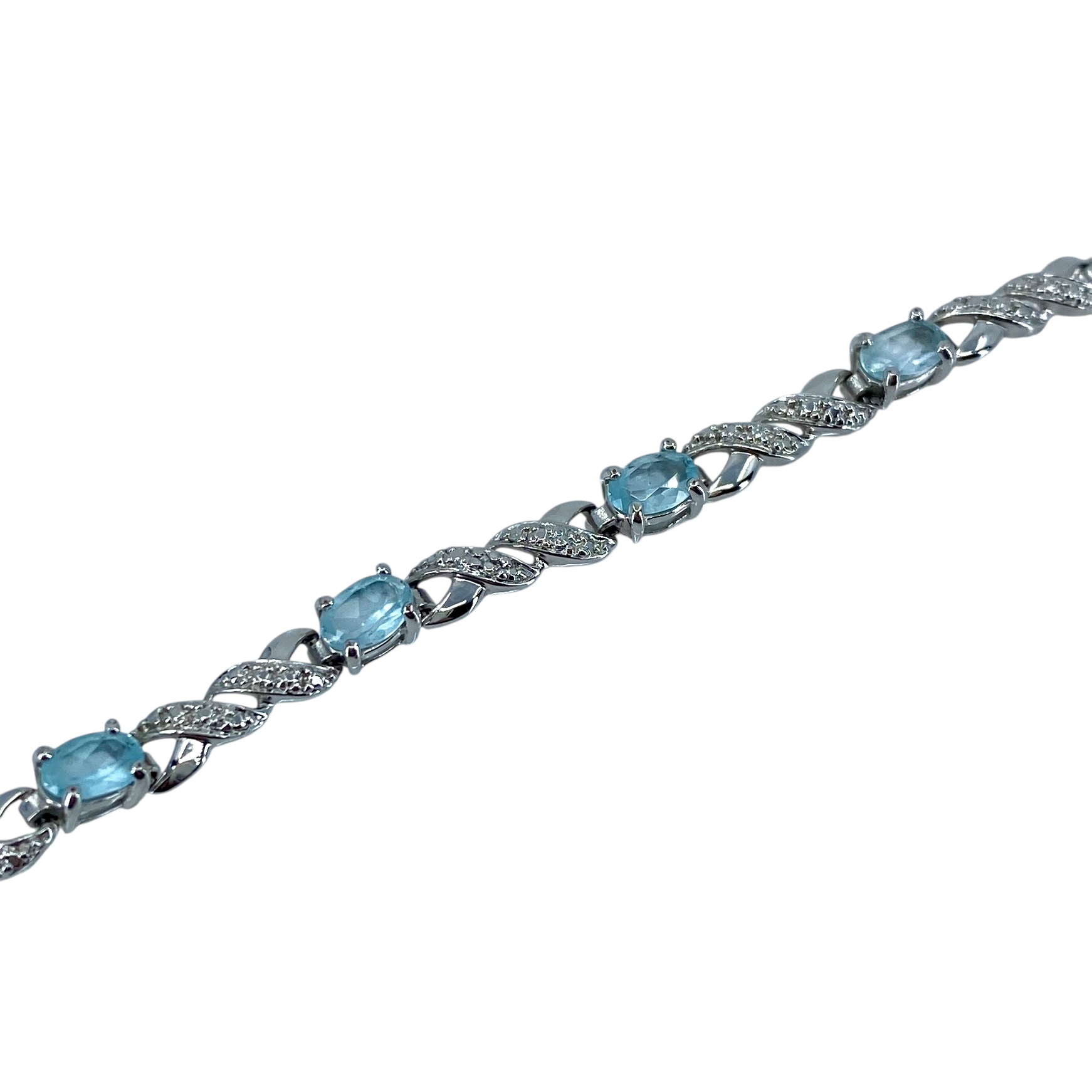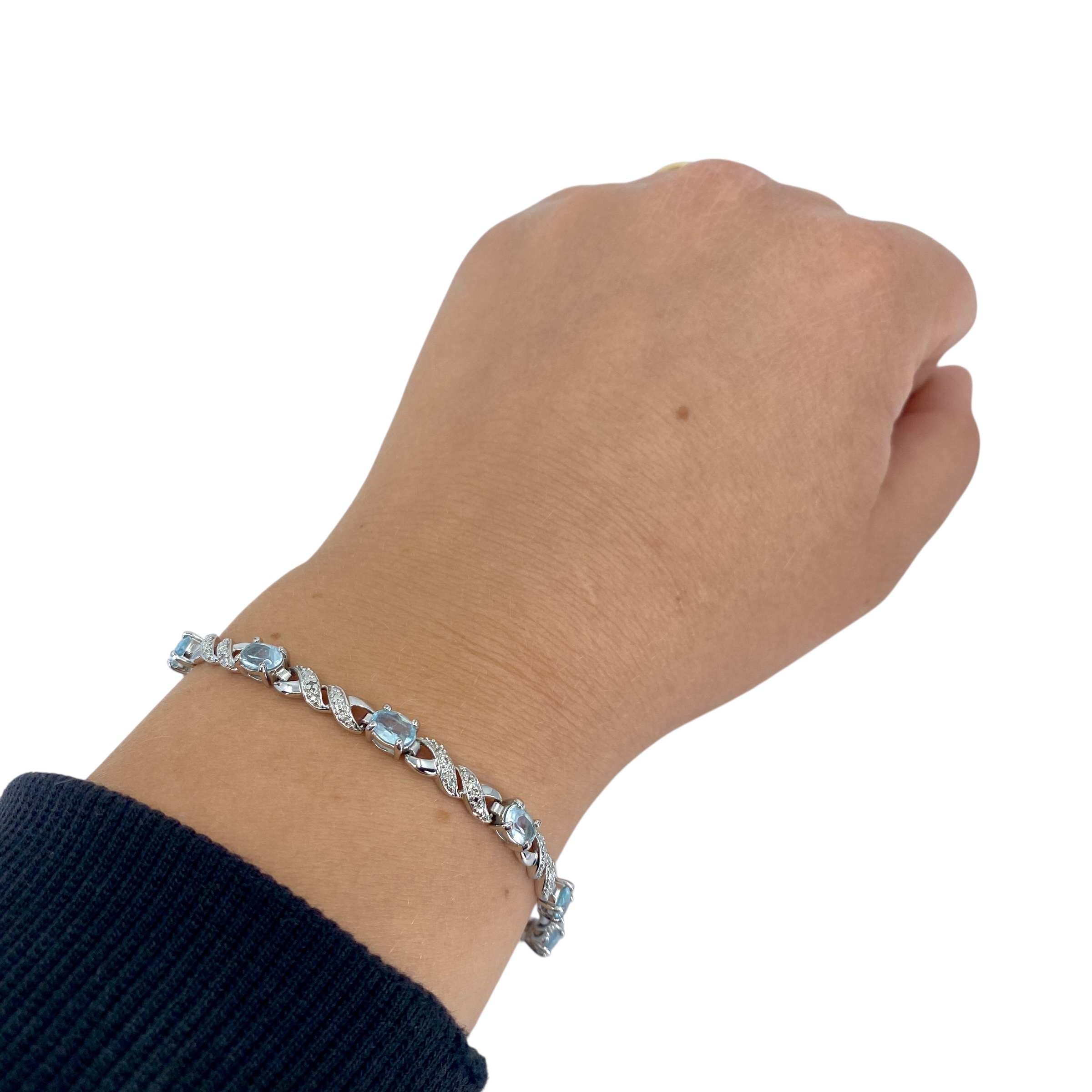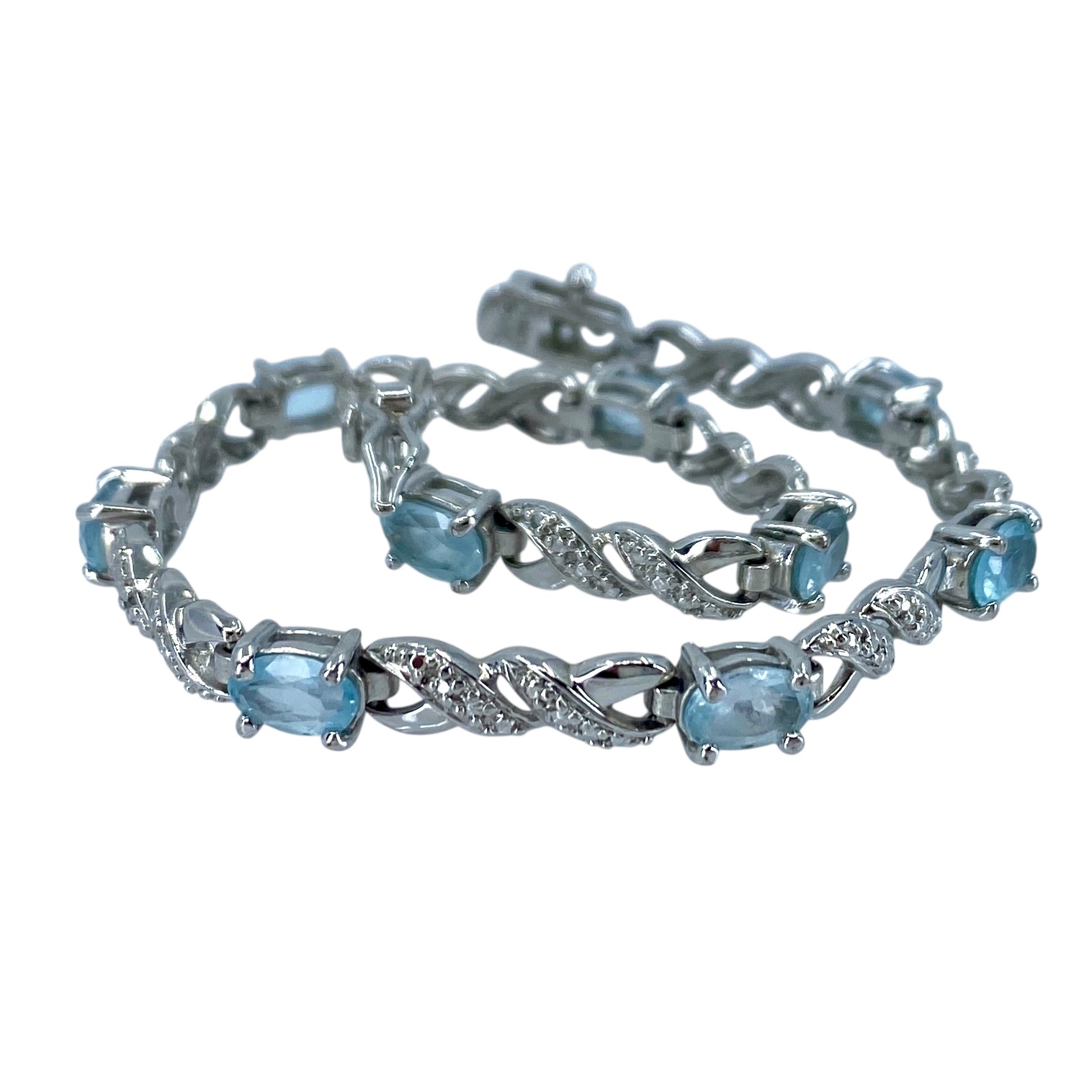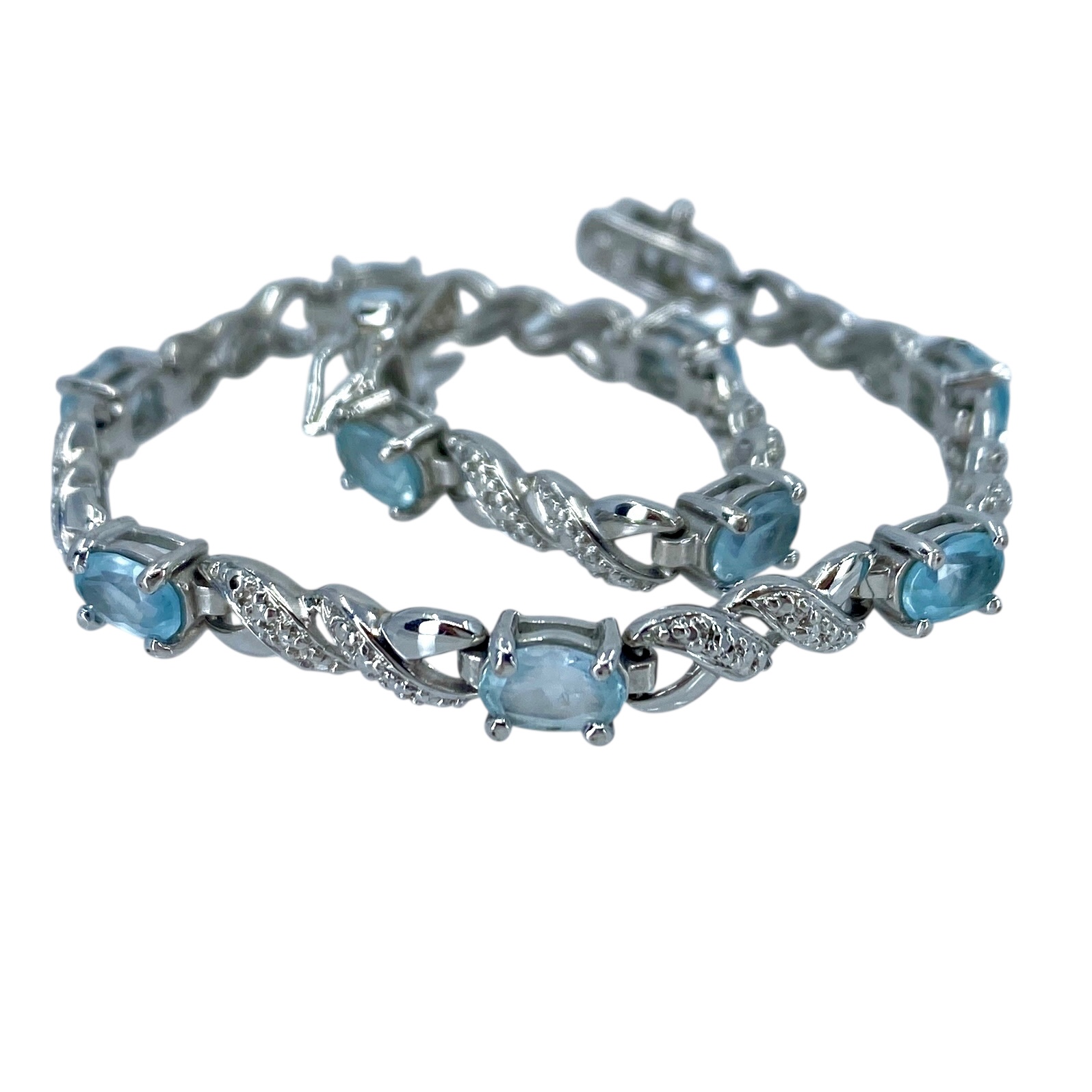 Sophisticated Ross Simons Sky Blue Topaz + Diamond Sterling Silver Tennis Bracelet, 7.5in, 9.43g, Engraved “925 R China”