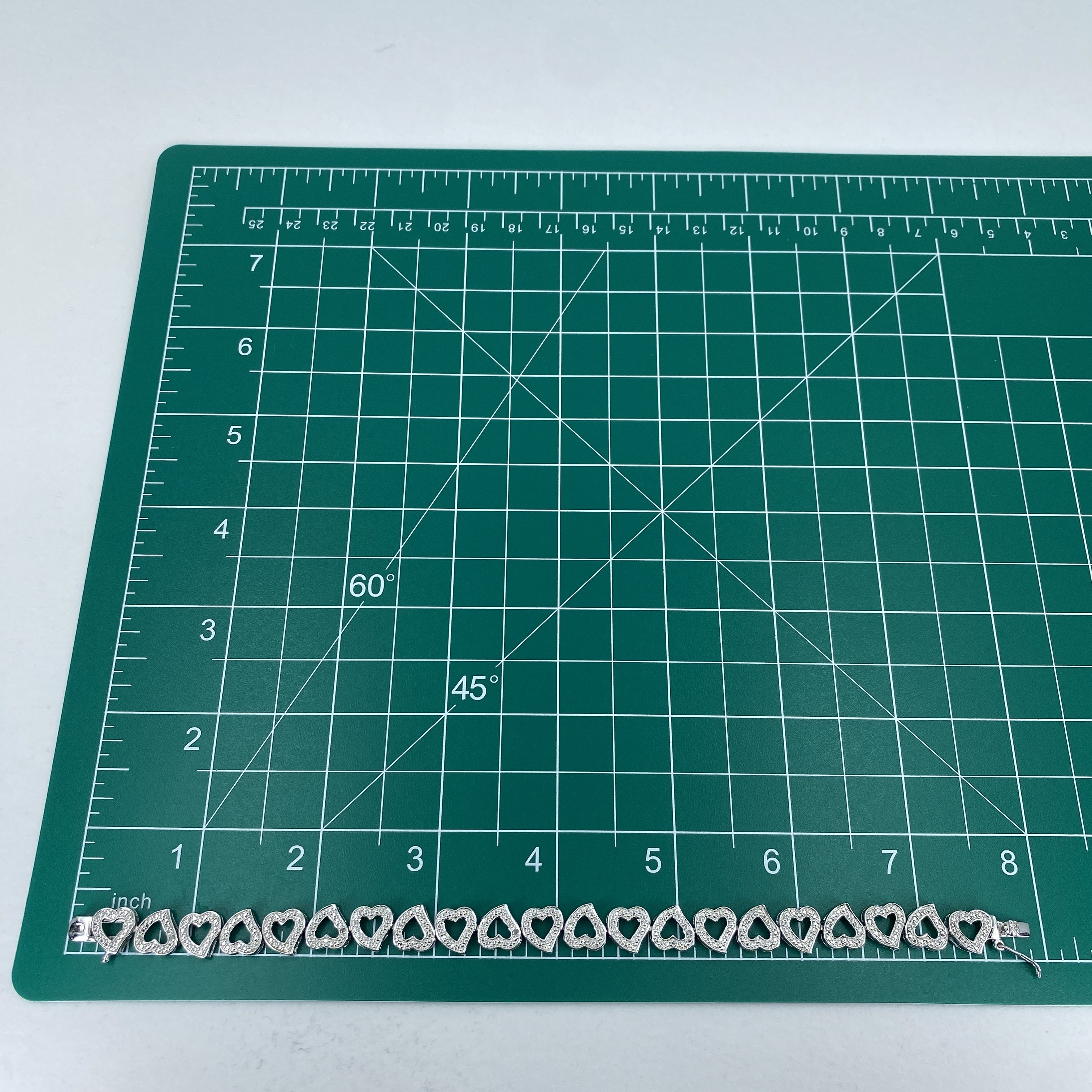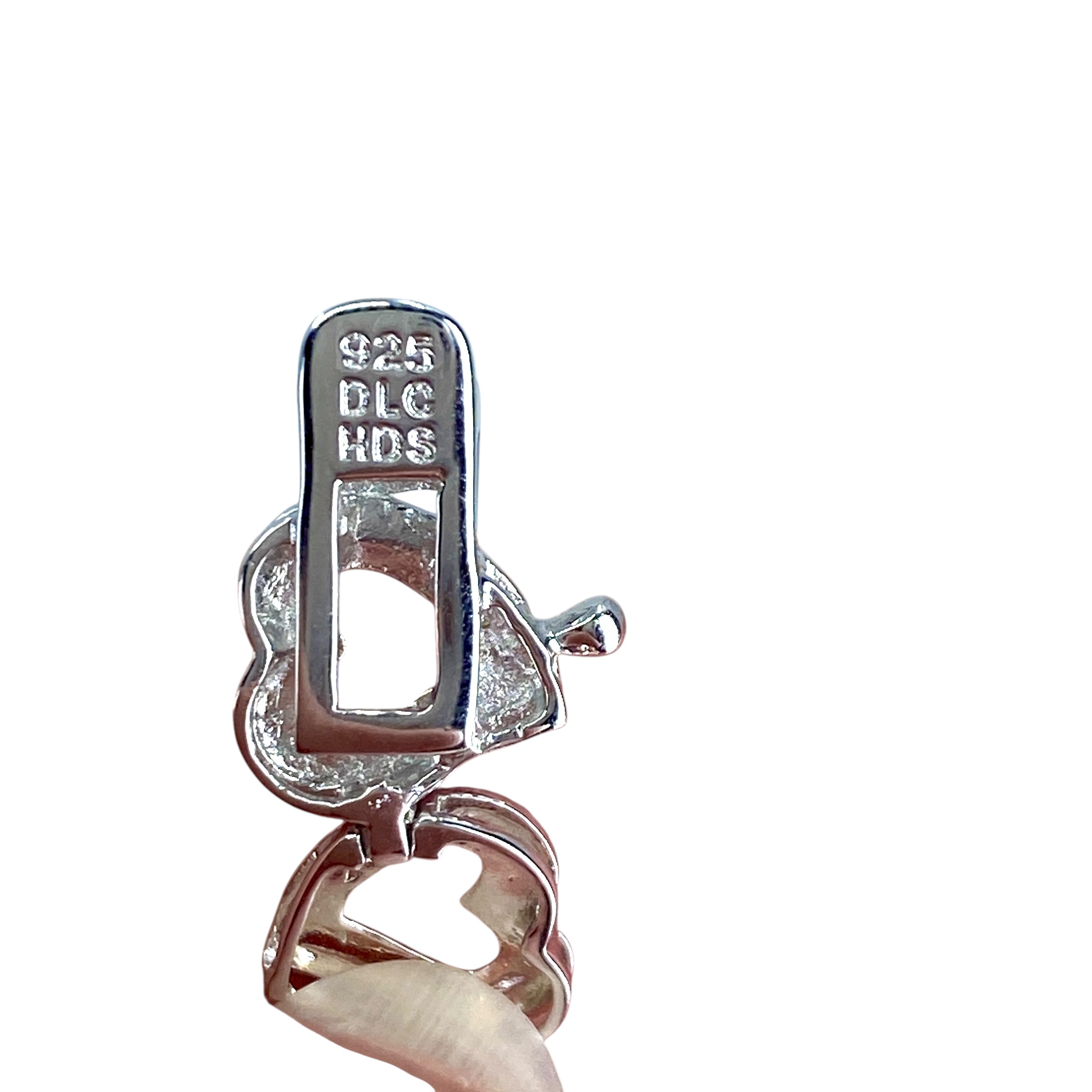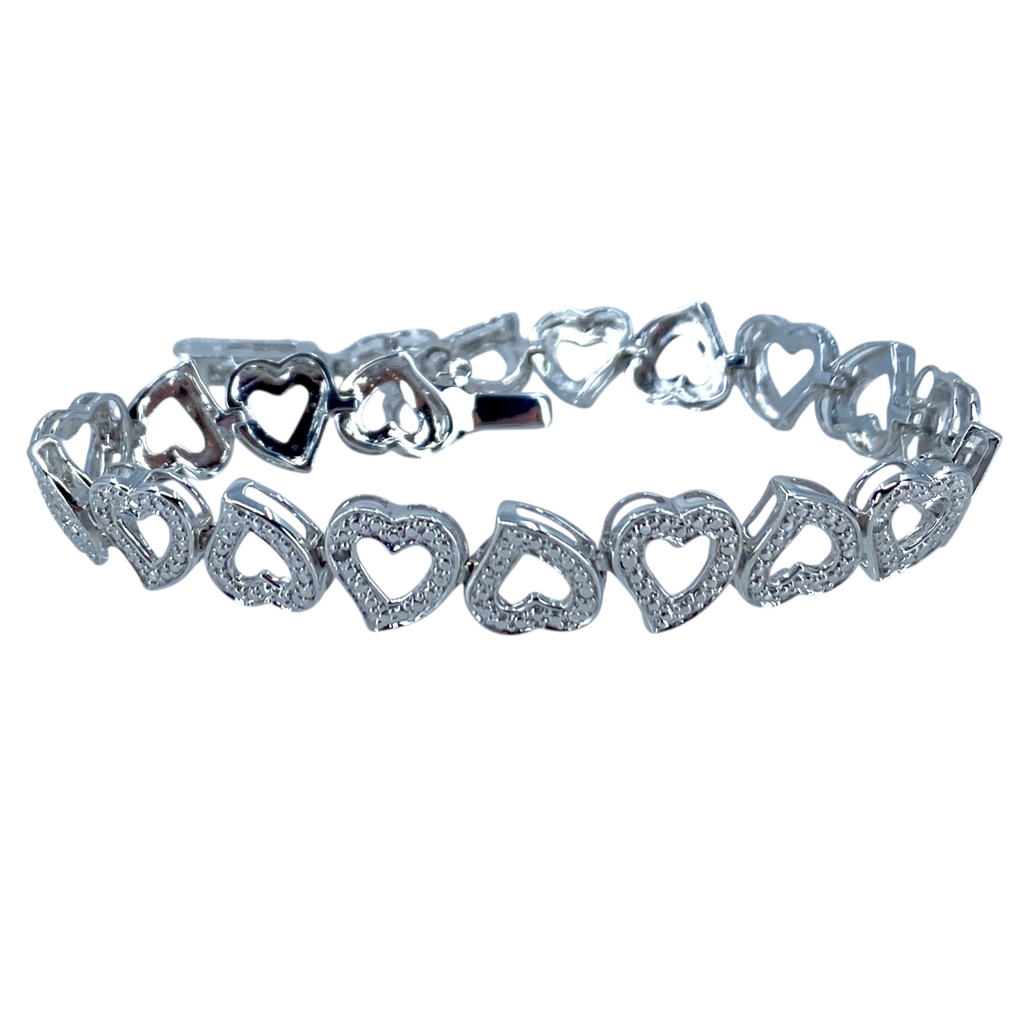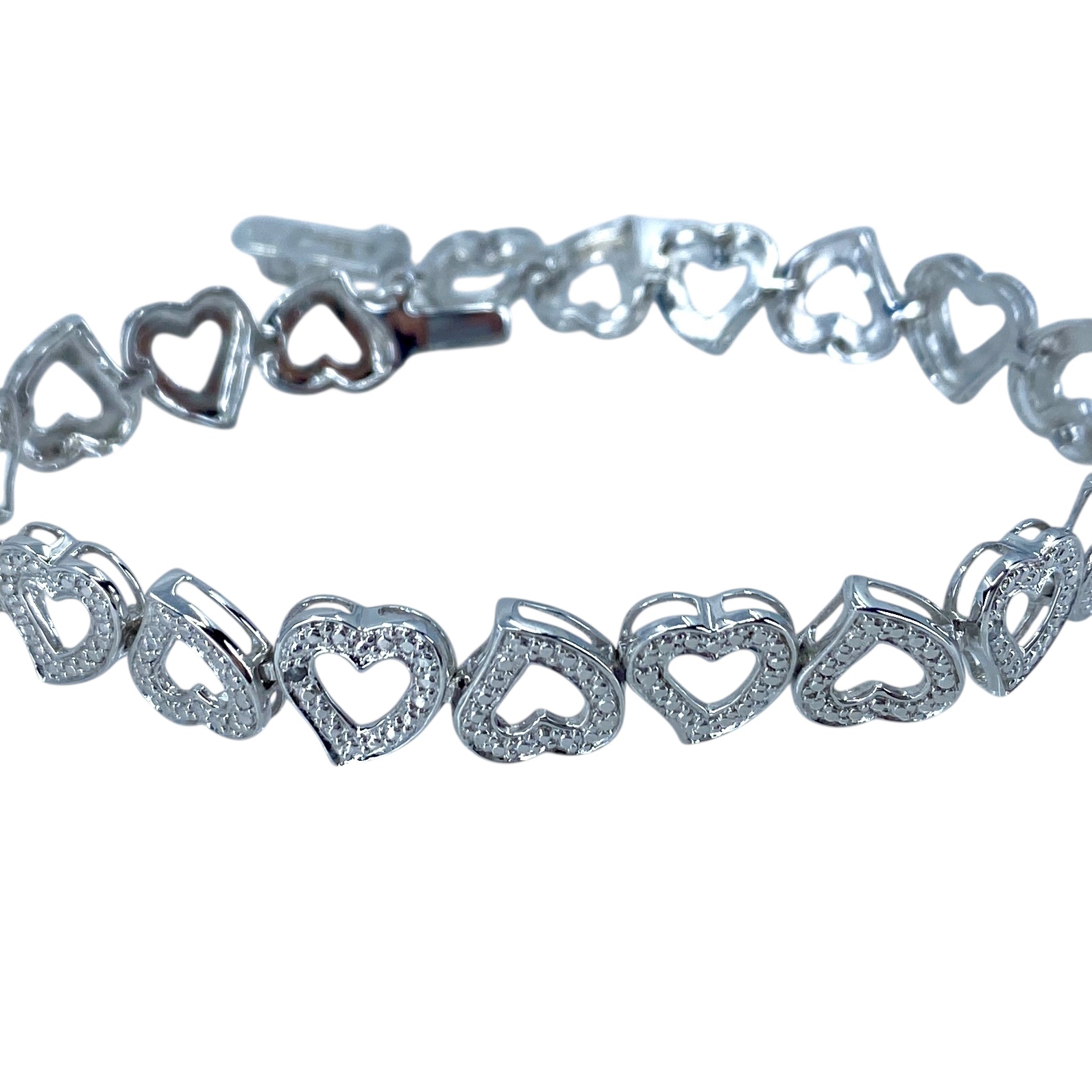 Romantic Diamond Sterling Silver Signed Heart Chain Tennis Bracelet, 7.75in, 12.1g, Engraved “925 DLC NDS”